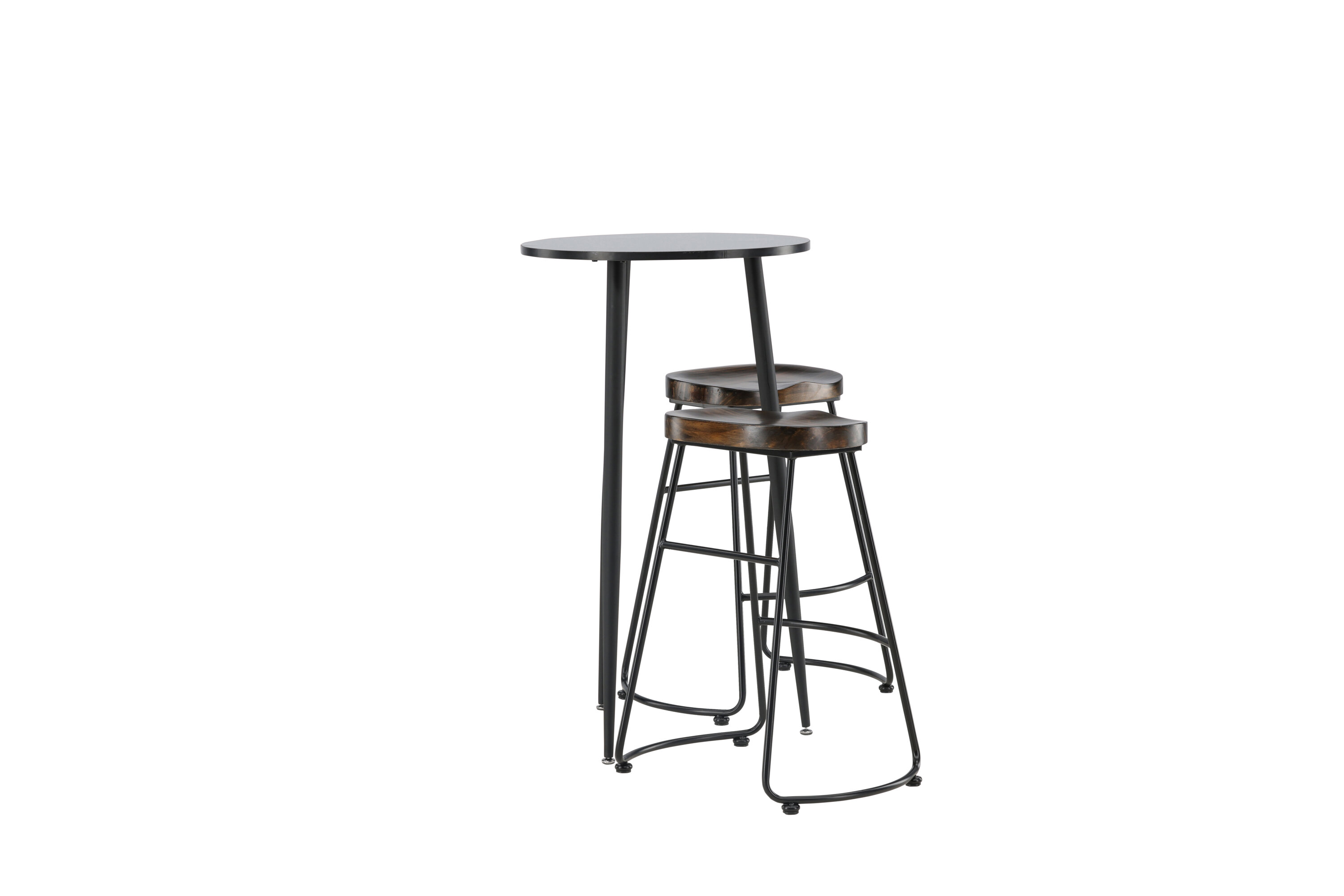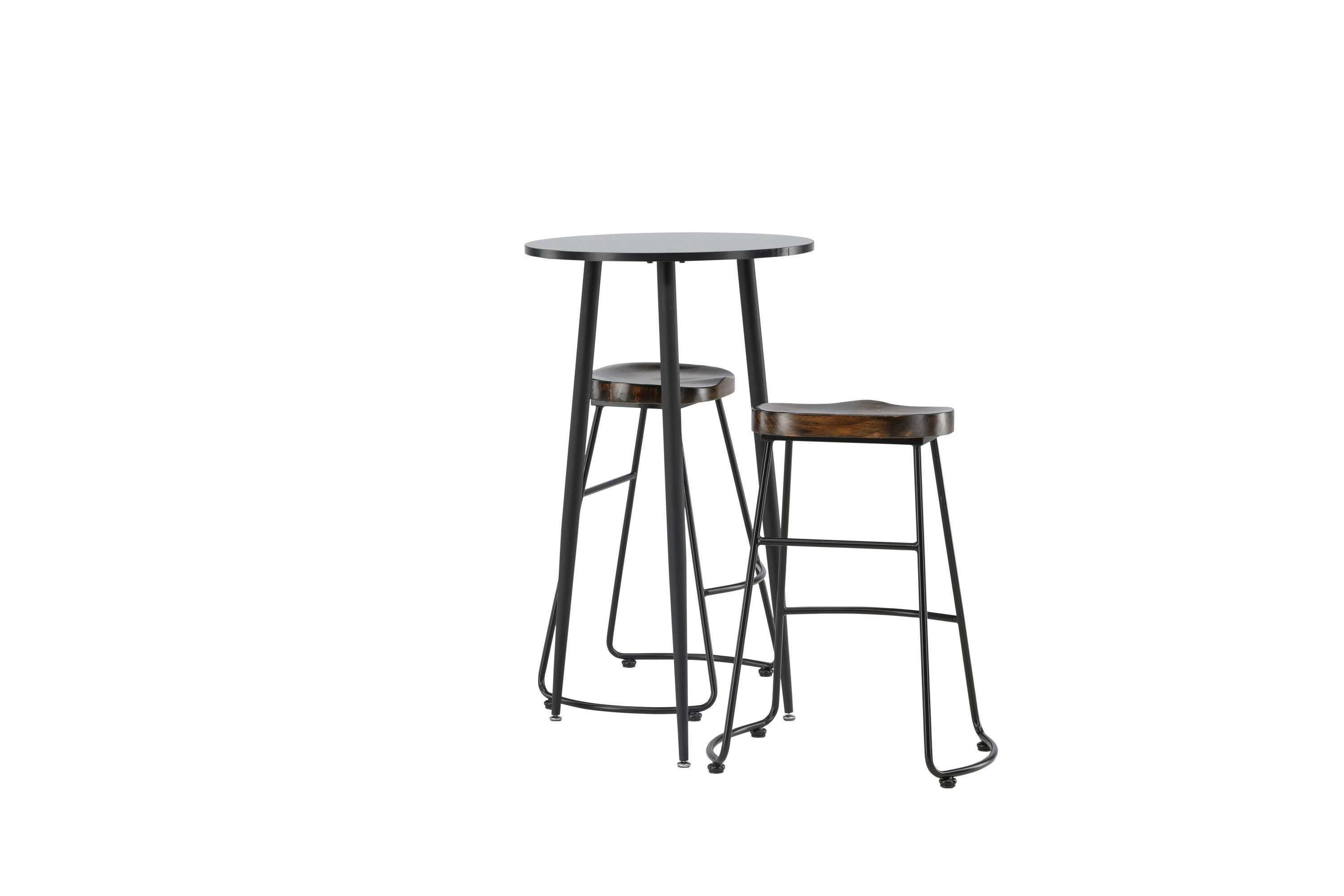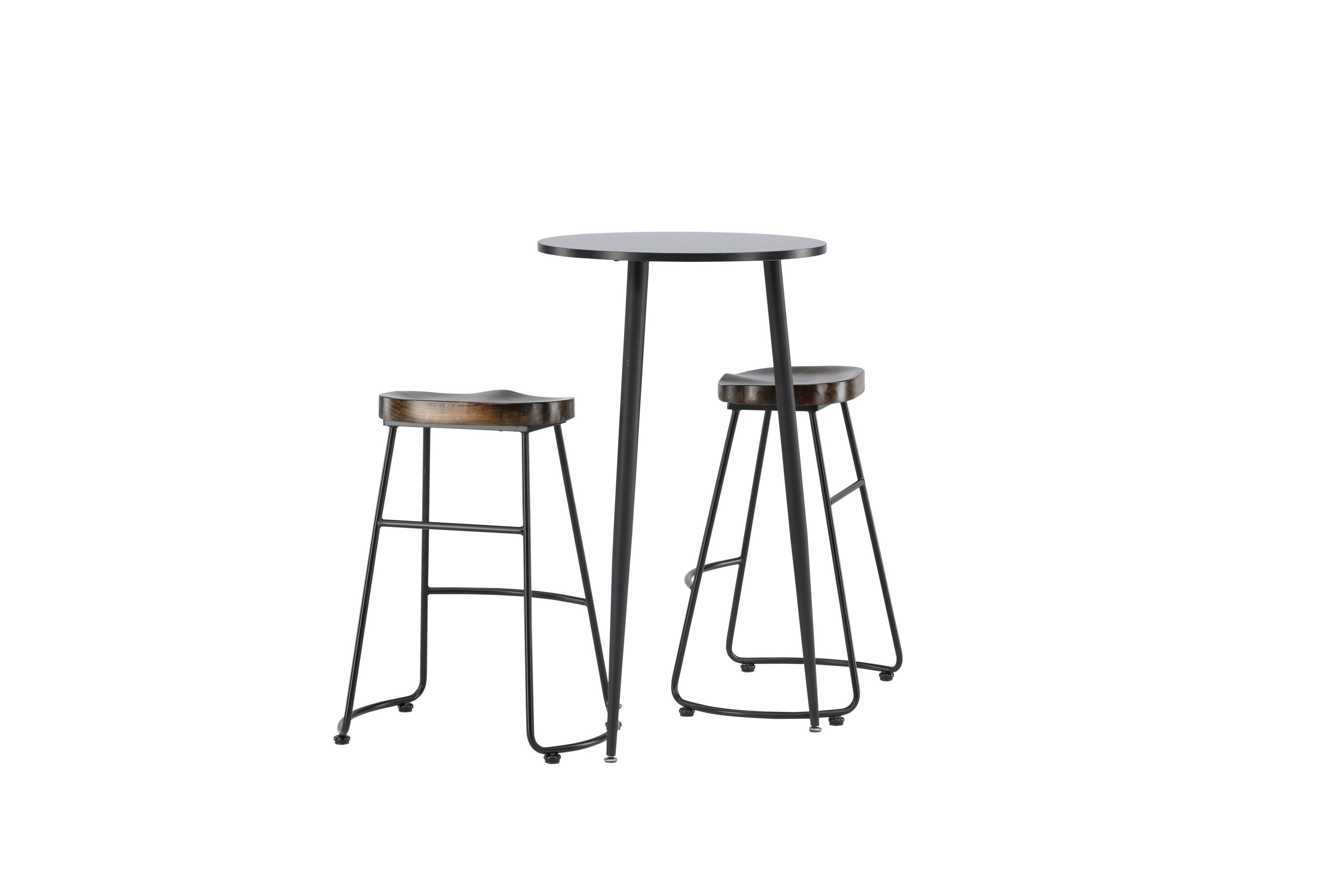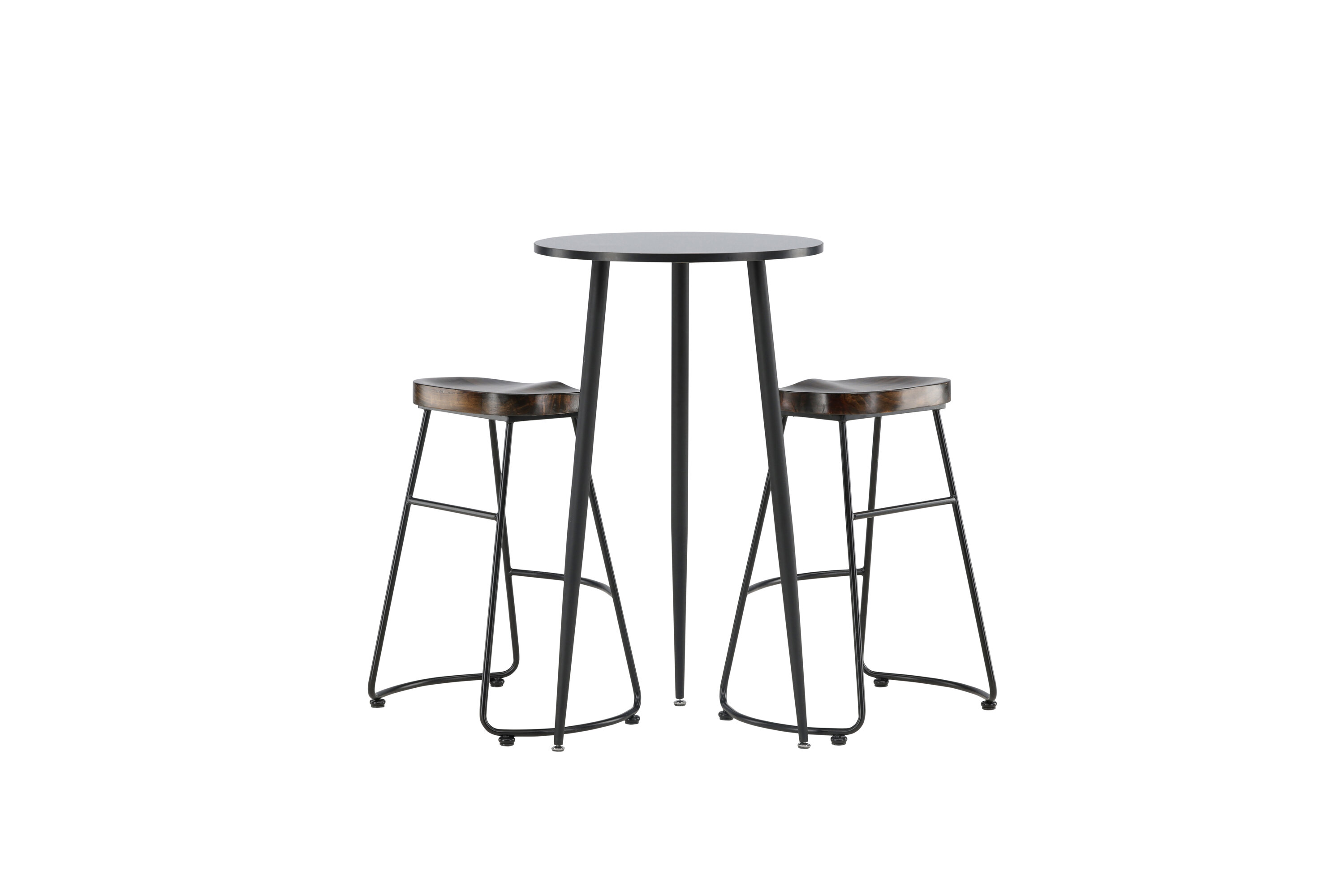 Rustique et élégante ! La magnifique table de bar Plaza a un plateau rond en MDF noir et les pieds de la table sont légèrement évasés en métal noir. Ici en combinaison élégante avec des tabourets de bar de la série Ozark. La chaise a un design classique avec un siège en bois foncé, façonné pour être aussi confortable que possible. La base en acier noir est stable et dispose d'un repose-pieds intégré. Décorez la petite cuisine dans des tons terreux ! Dimensions de la table : 60 cm.