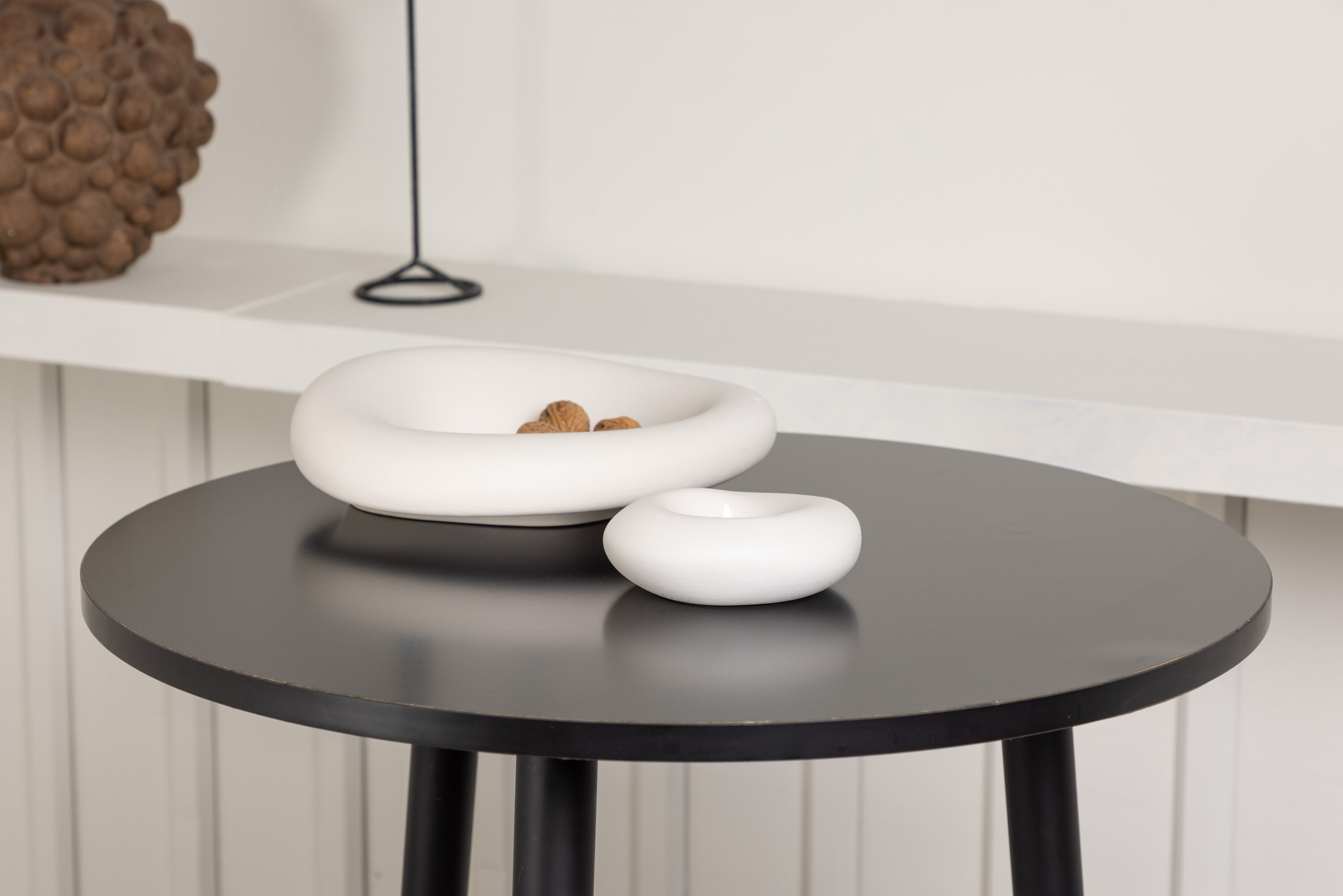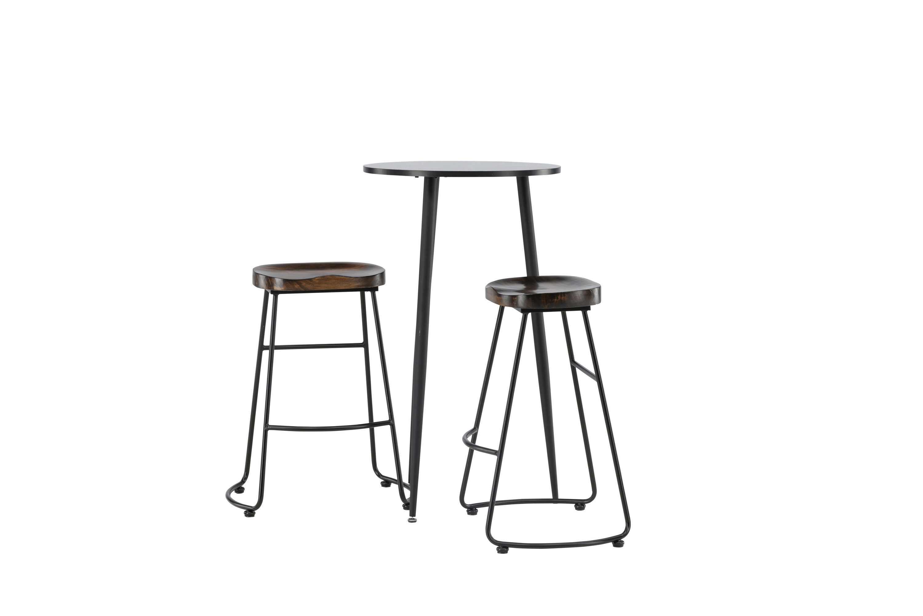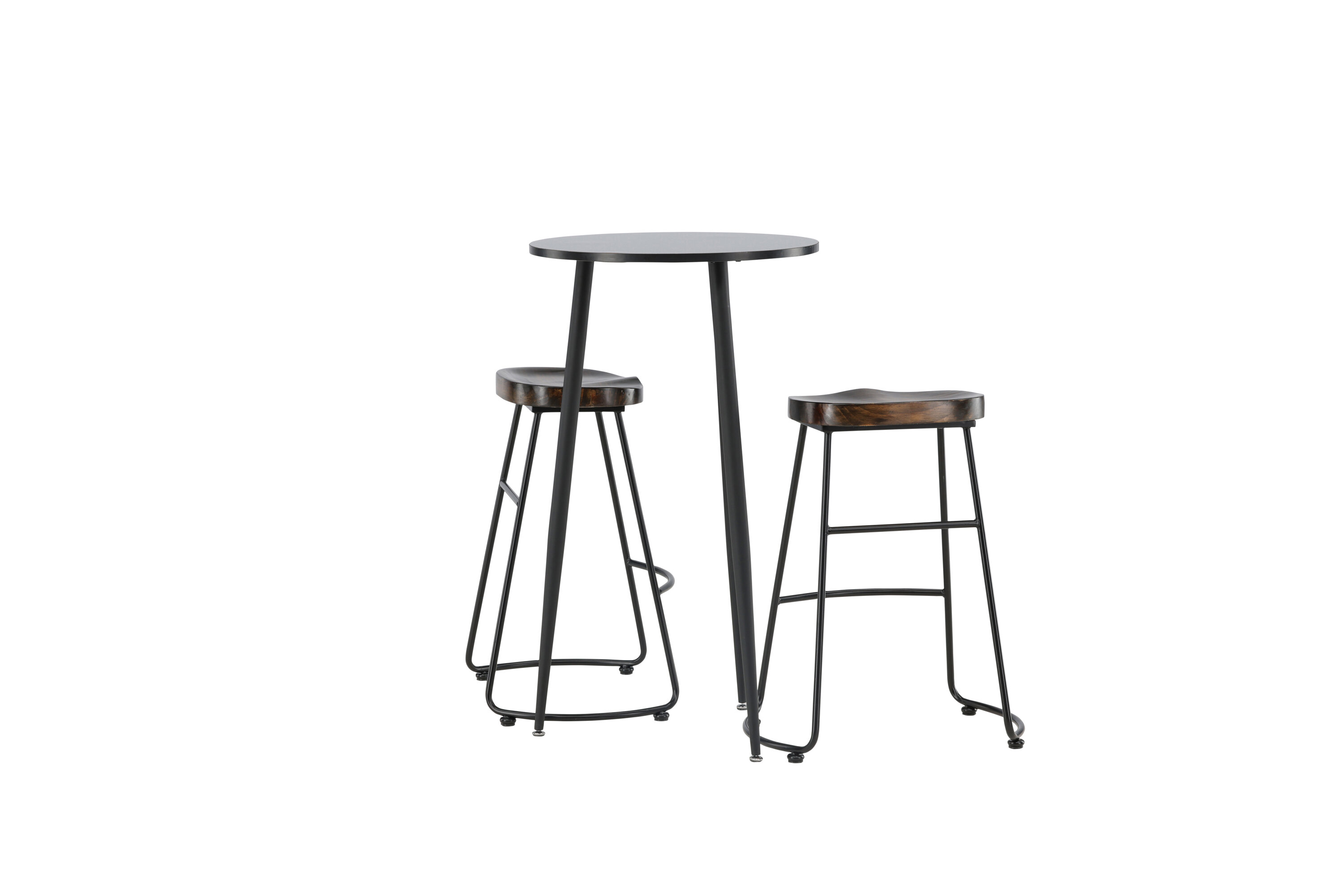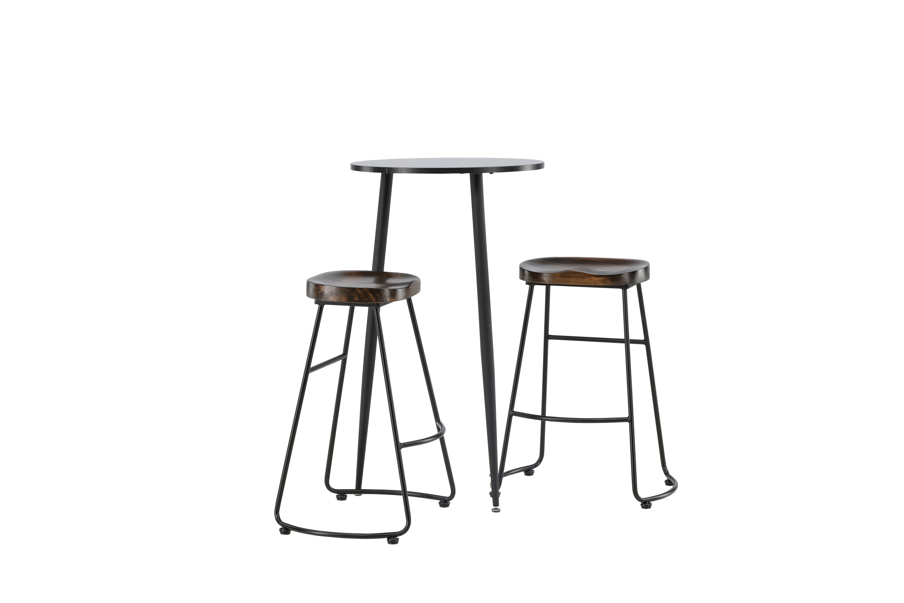 Rustique et élégante ! La magnifique table de bar Plaza a un plateau rond en MDF noir et les pieds de la table sont légèrement évasés en métal noir. Ici en combinaison élégante avec des tabourets de bar de la série Ozark. La chaise a un design classique avec un siège en bois foncé, façonné pour être aussi confortable que possible. La base en acier noir est stable et dispose d'un repose-pieds intégré. Décorez la petite cuisine dans des tons terreux ! Dimensions de la table : 60 cm.