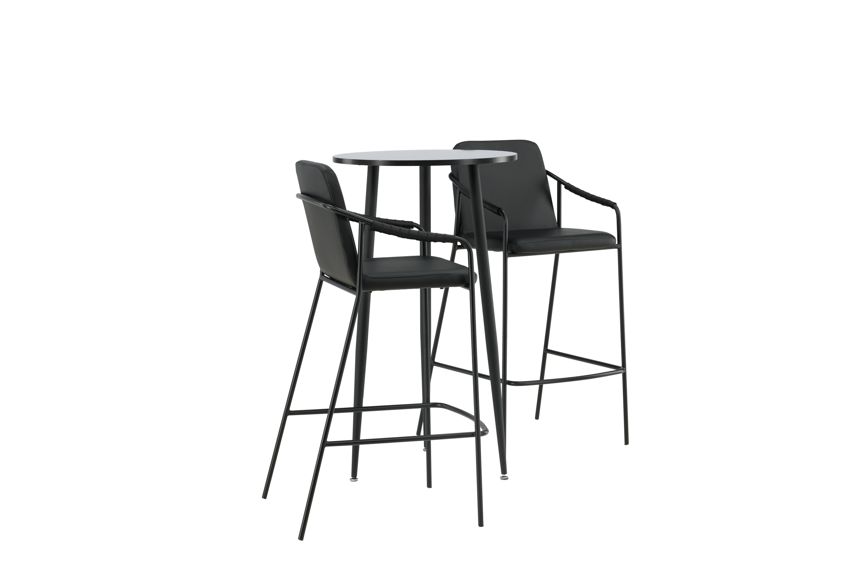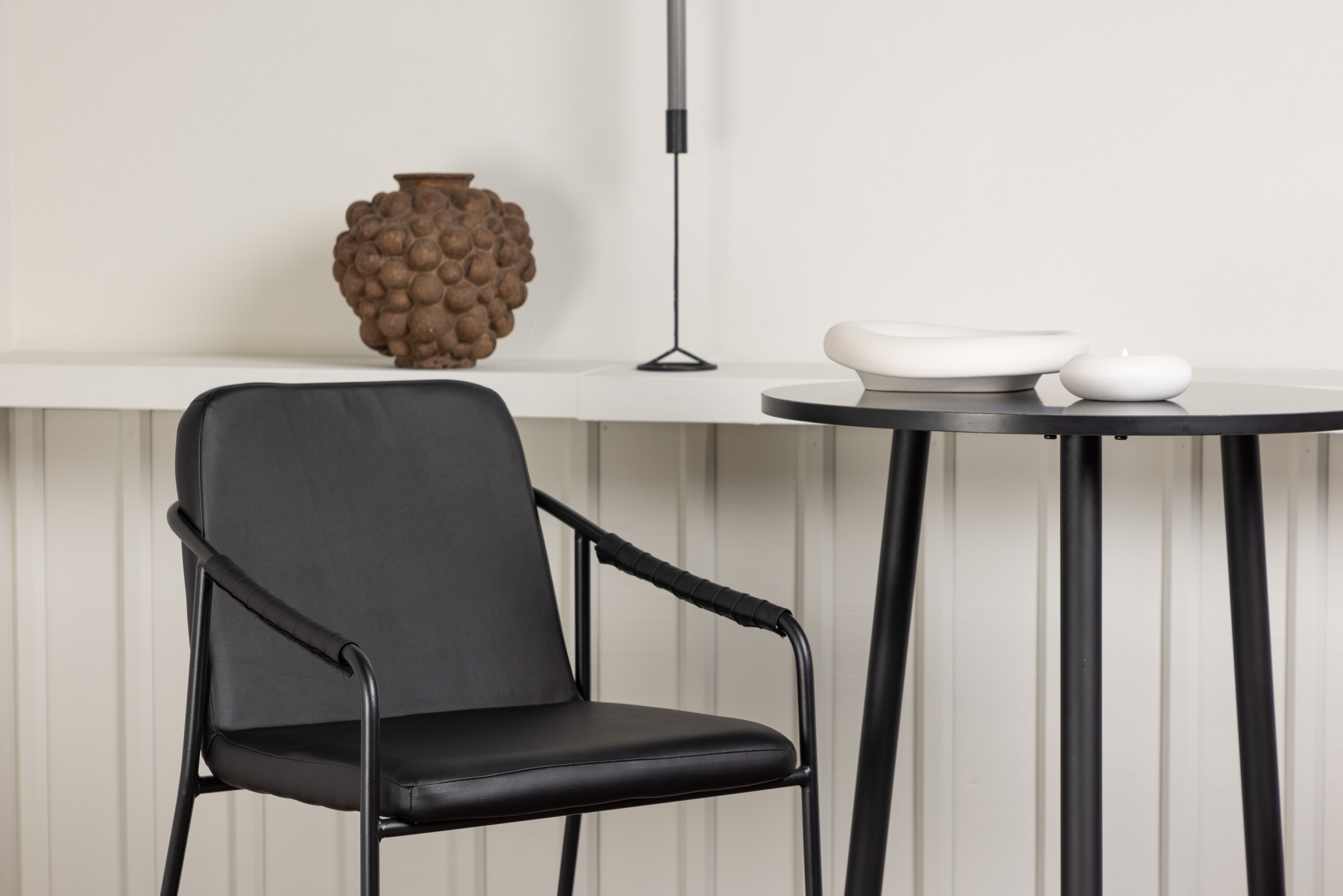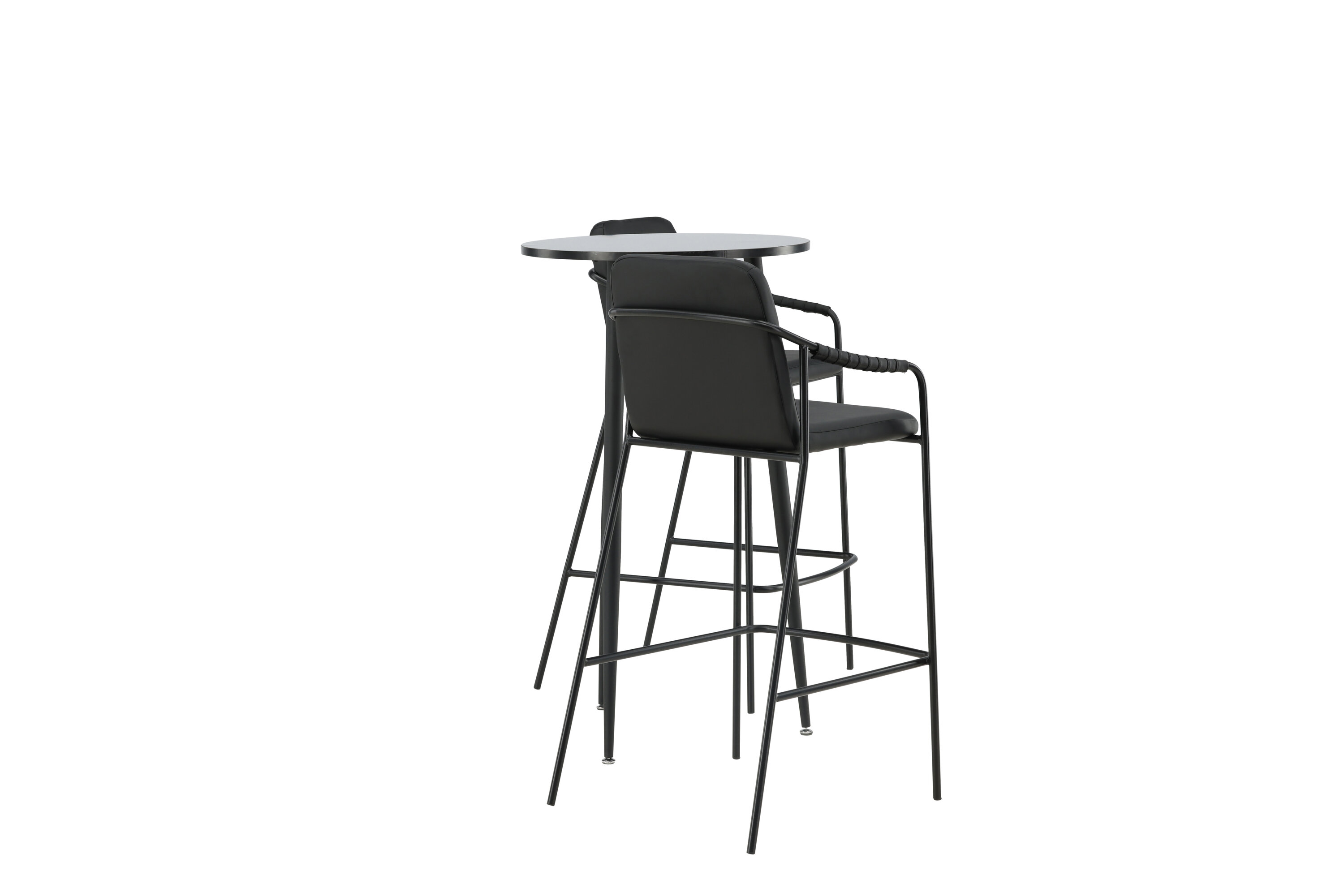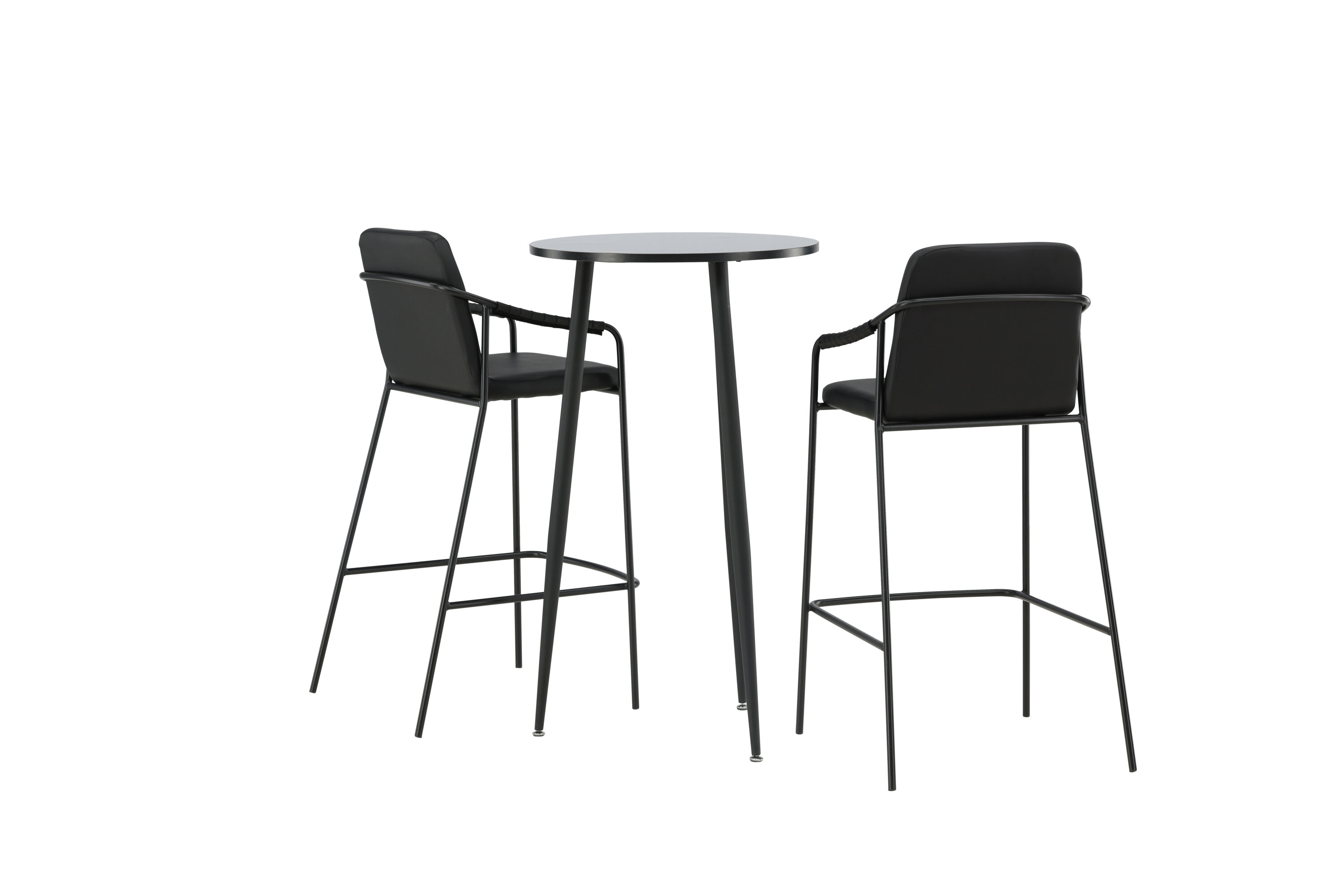 Une combinaison presque imbattable dans la petite cuisine ! La magnifique table de bar Plaza a un plateau rond en MDF noir et les pieds sont légèrement évasés en métal noir. Ici avec des tabourets de bar noirs de la série Tvist. La chaise a un siège rembourré et un design entièrement rembourré en PU noir avec des pieds de chaise minimalistes et des accoudoirs intégrés en acier noir. Tout simplement aussi élégant qu'intelligent ! Diamètre de la table : 60 cm.