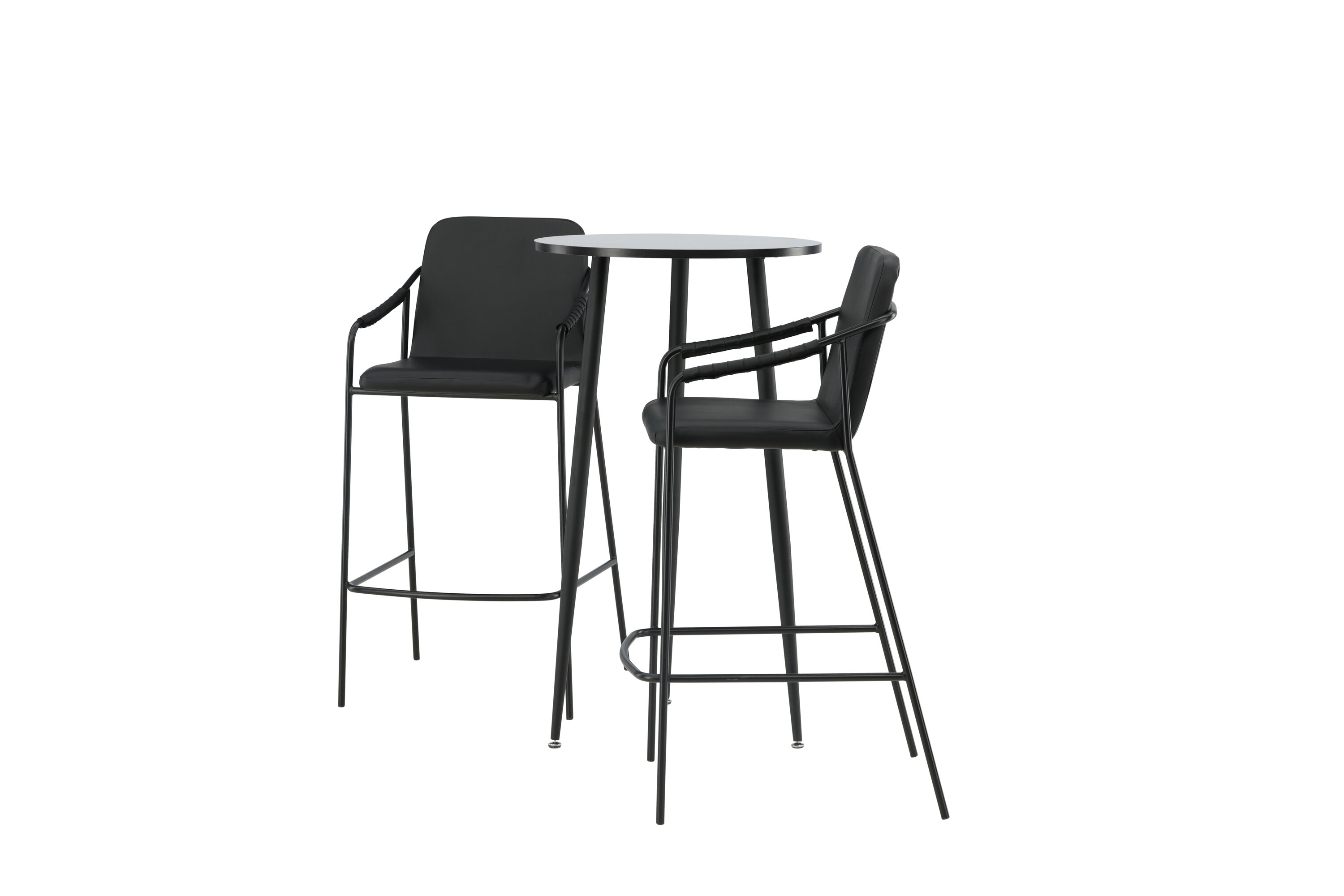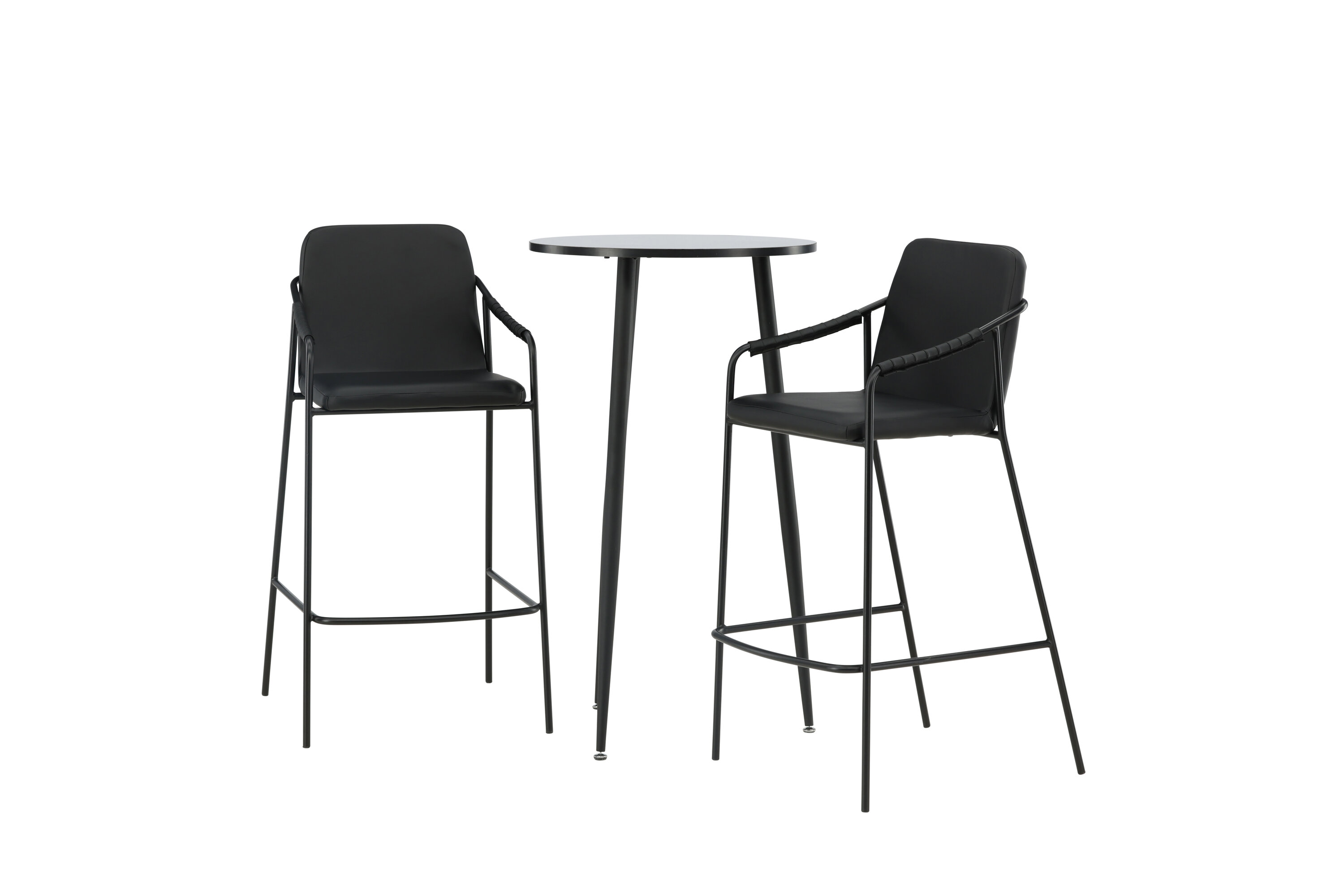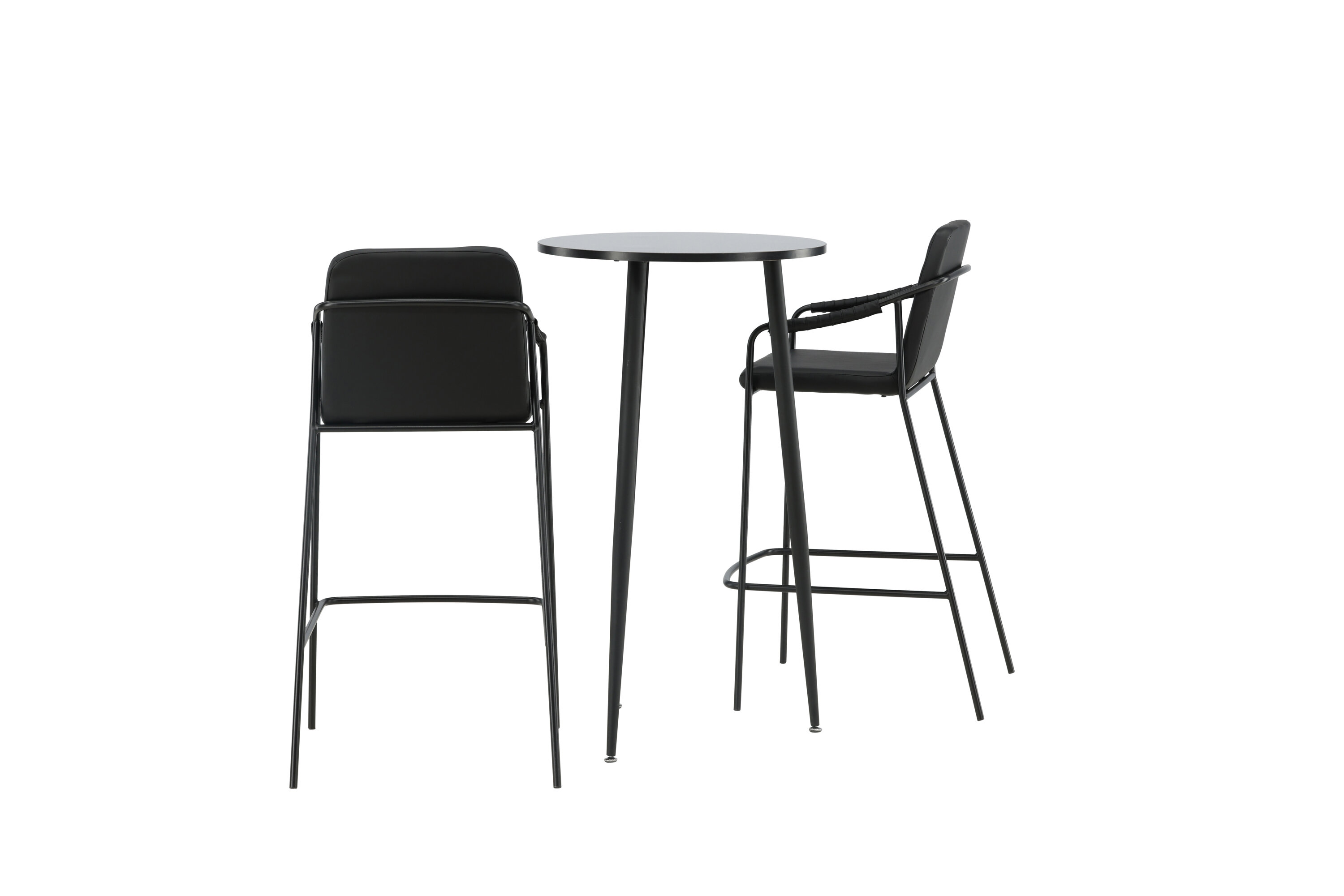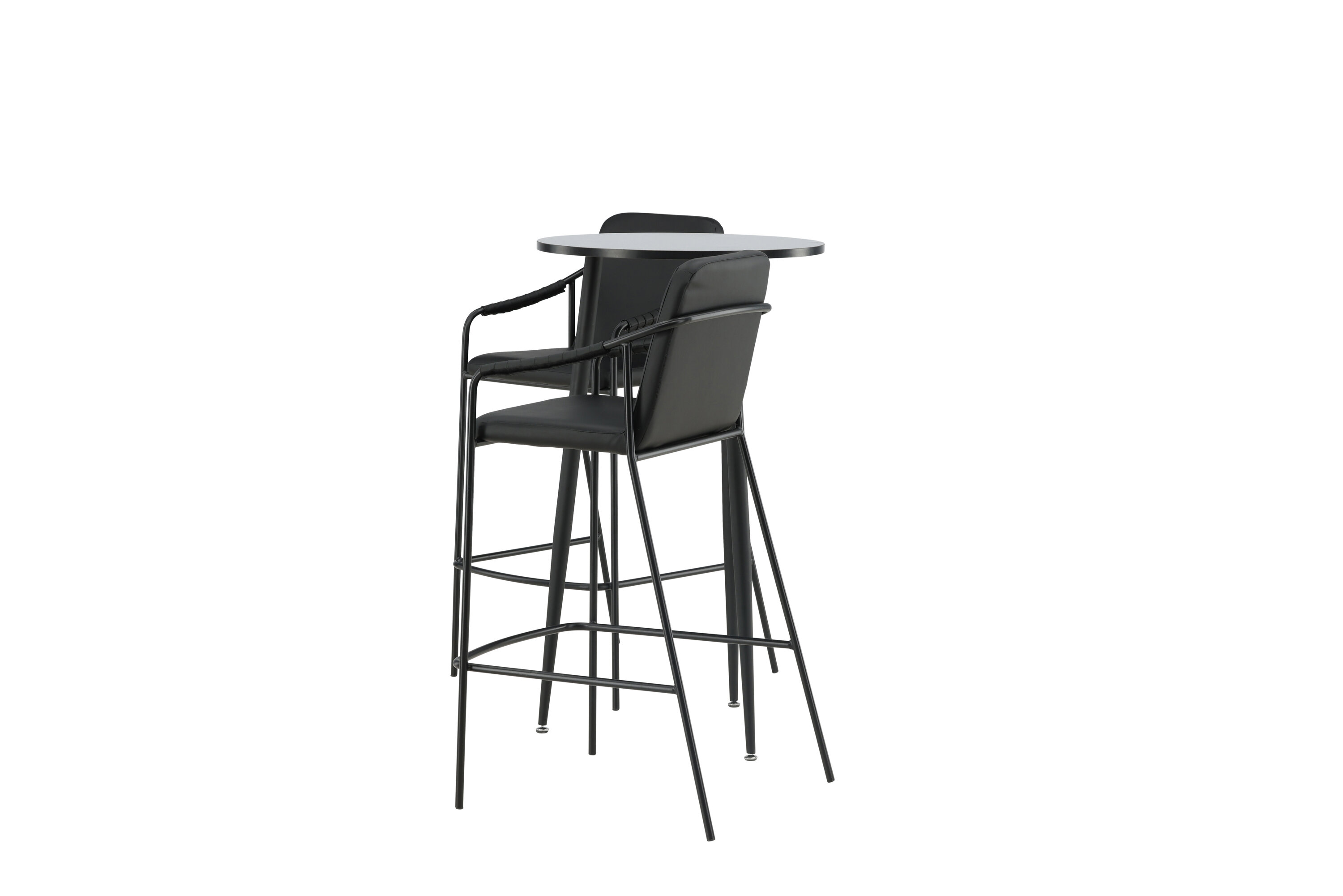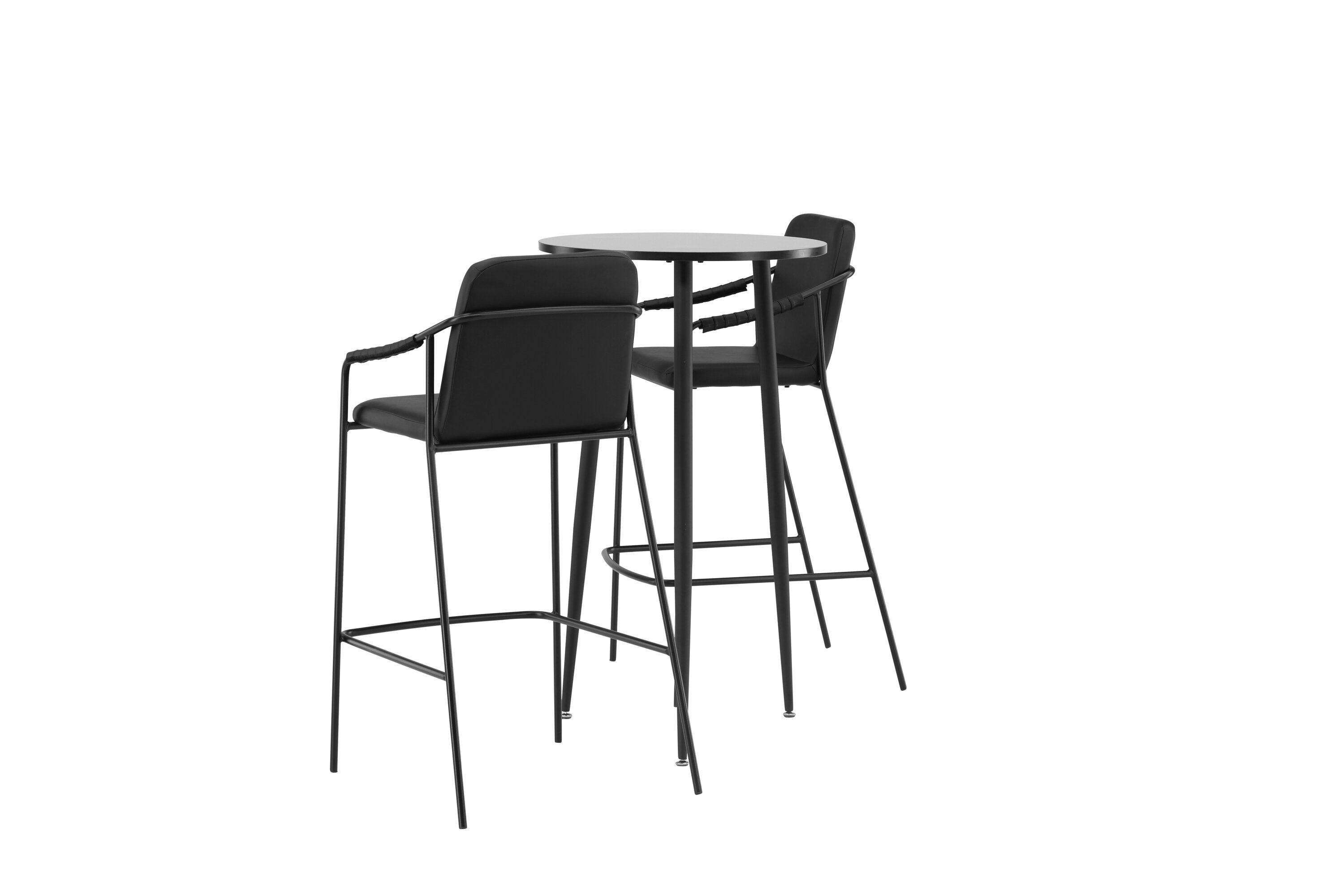Une combinaison presque imbattable dans la petite cuisine ! La magnifique table de bar Plaza a un plateau rond en MDF noir et les pieds sont légèrement évasés en métal noir. Ici avec des tabourets de bar noirs de la série Tvist. La chaise a un siège rembourré et un design entièrement rembourré en PU noir avec des pieds de chaise minimalistes et des accoudoirs intégrés en acier noir. Tout simplement aussi élégant qu'intelligent ! Diamètre de la table : 60 cm.