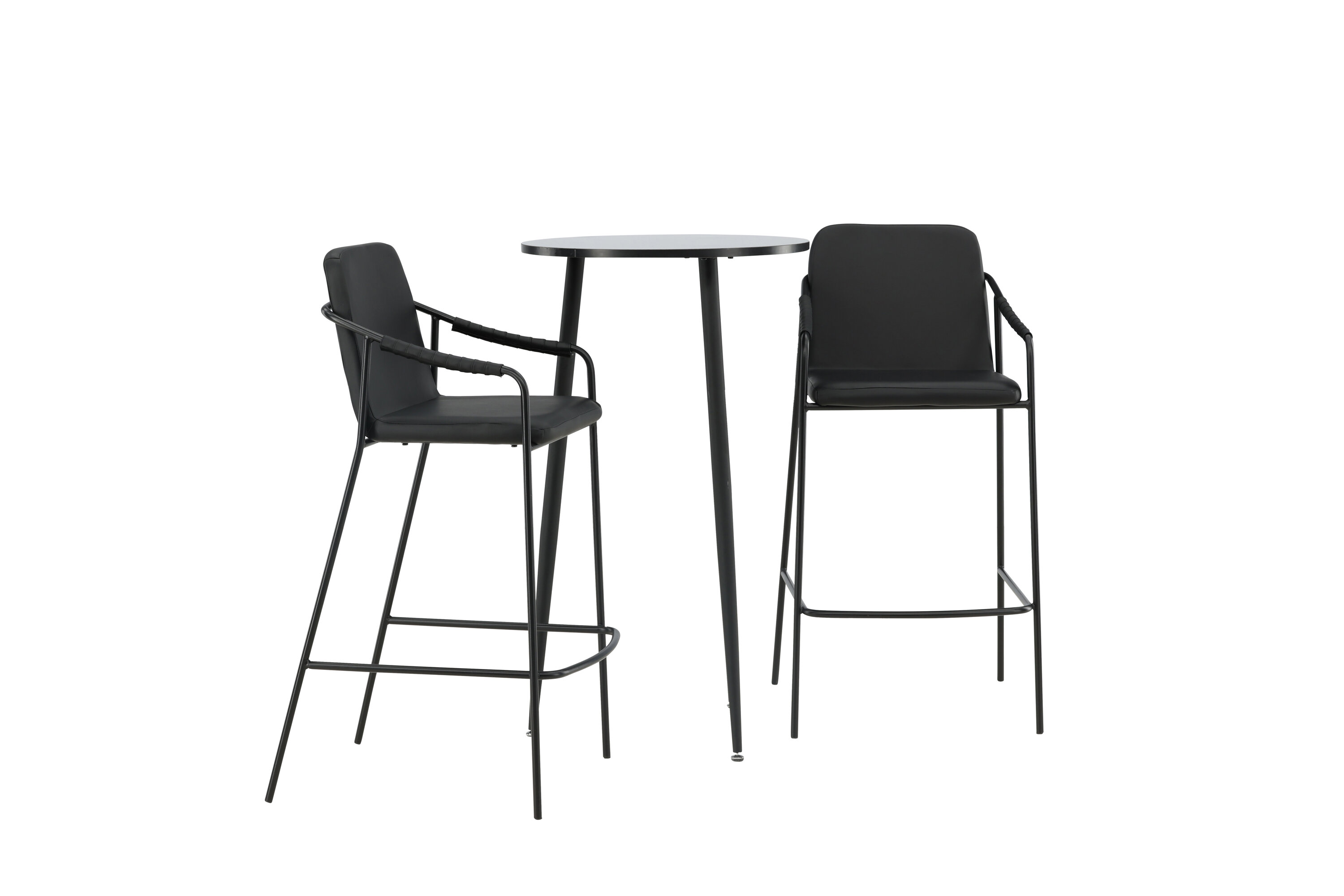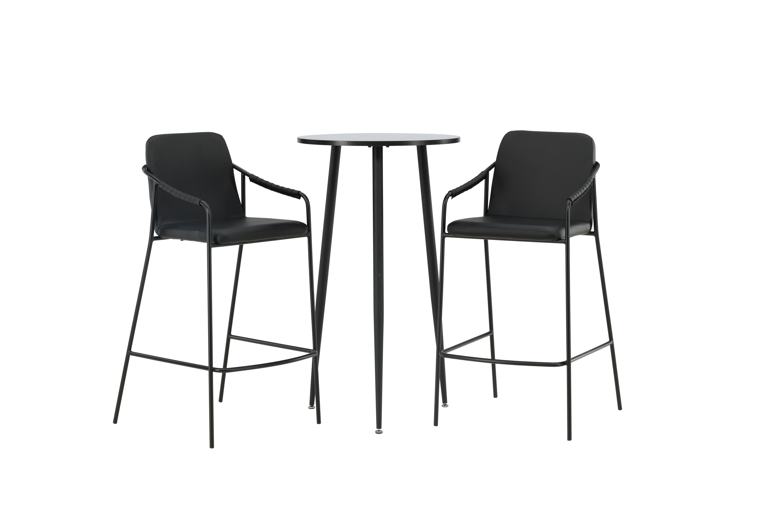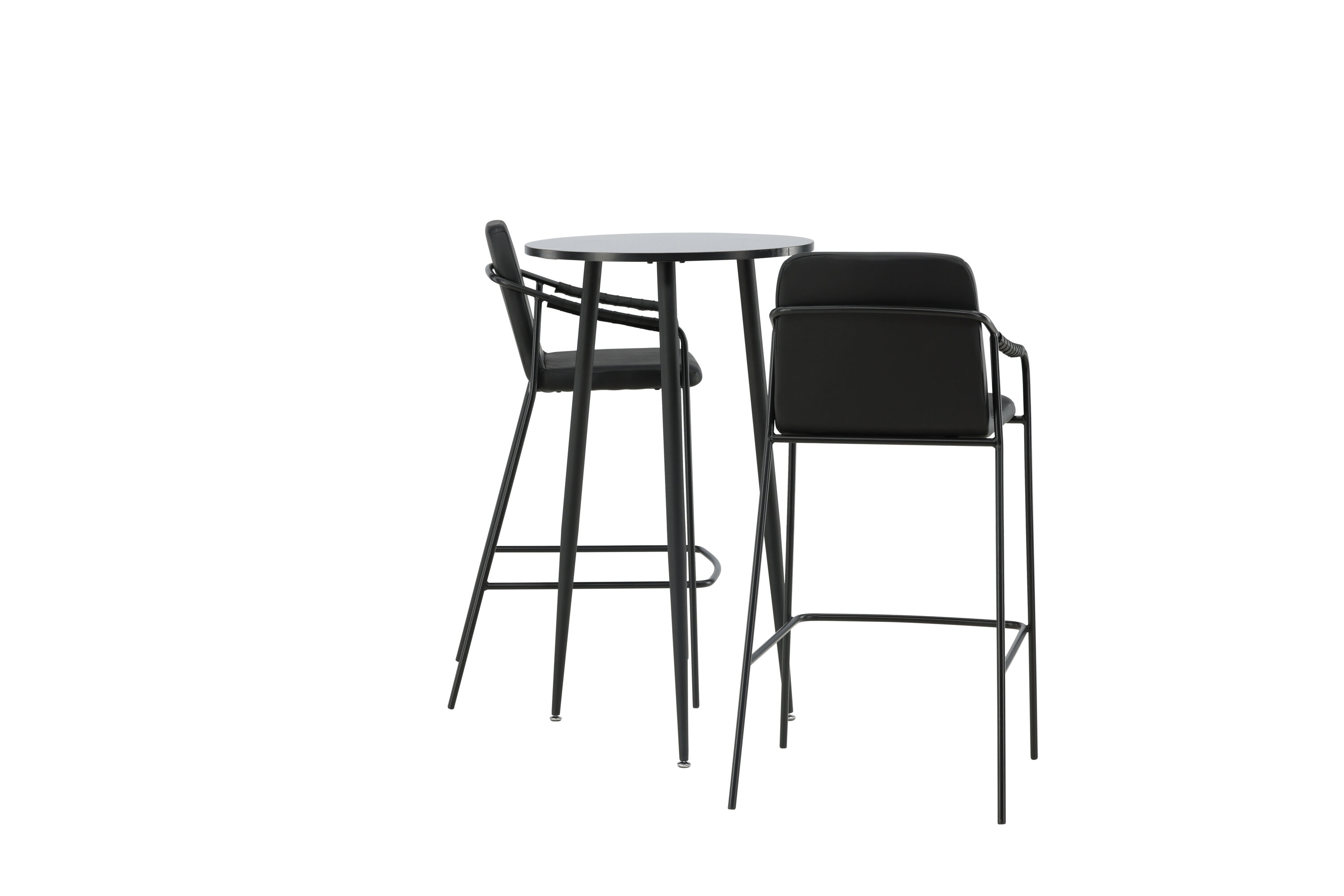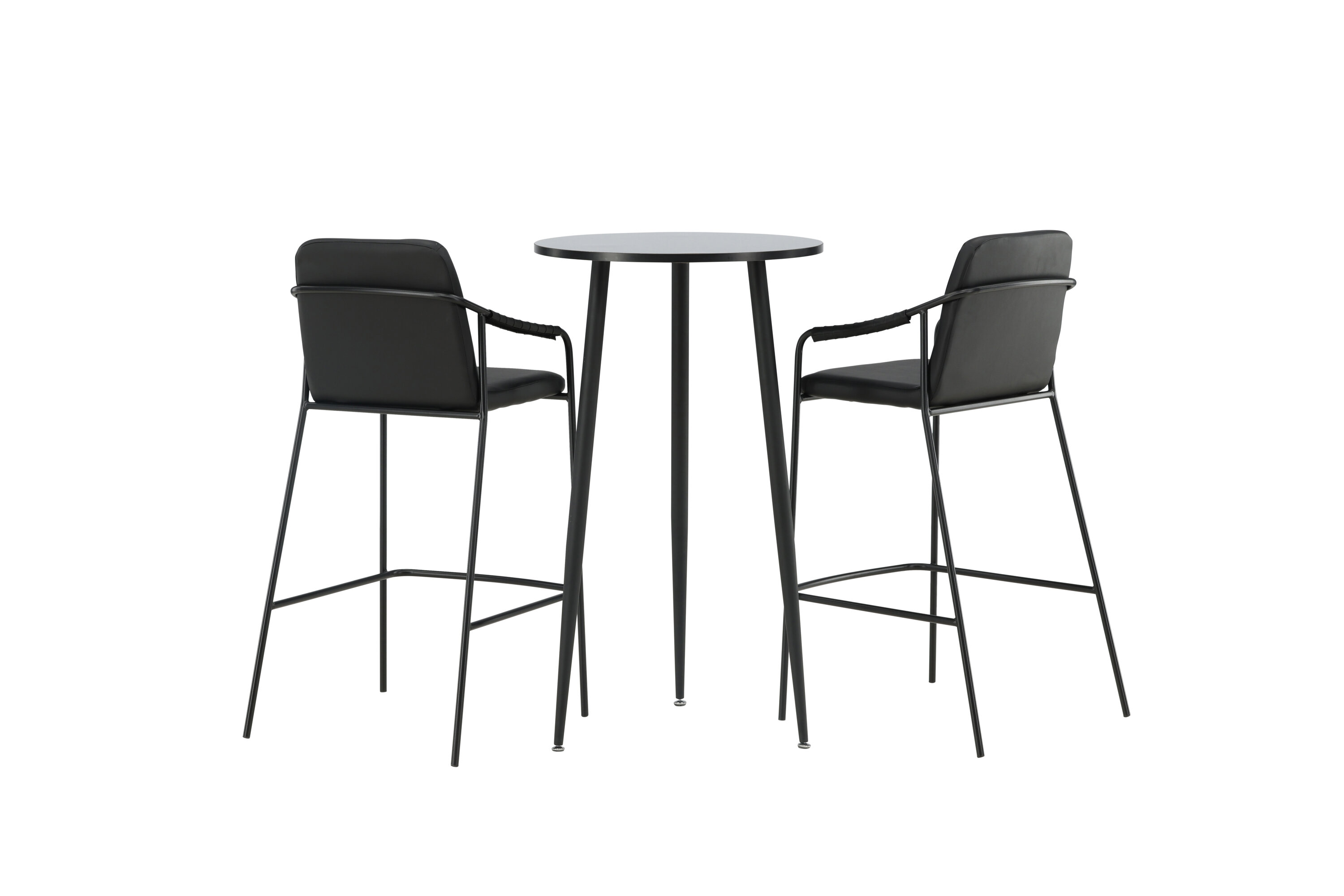 Une combinaison presque imbattable dans la petite cuisine ! La magnifique table de bar Plaza a un plateau rond en MDF noir et les pieds sont légèrement évasés en métal noir. Ici avec des tabourets de bar noirs de la série Tvist. La chaise a un siège rembourré et un design entièrement rembourré en PU noir avec des pieds de chaise minimalistes et des accoudoirs intégrés en acier noir. Tout simplement aussi élégant qu'intelligent ! Diamètre de la table : 60 cm.
