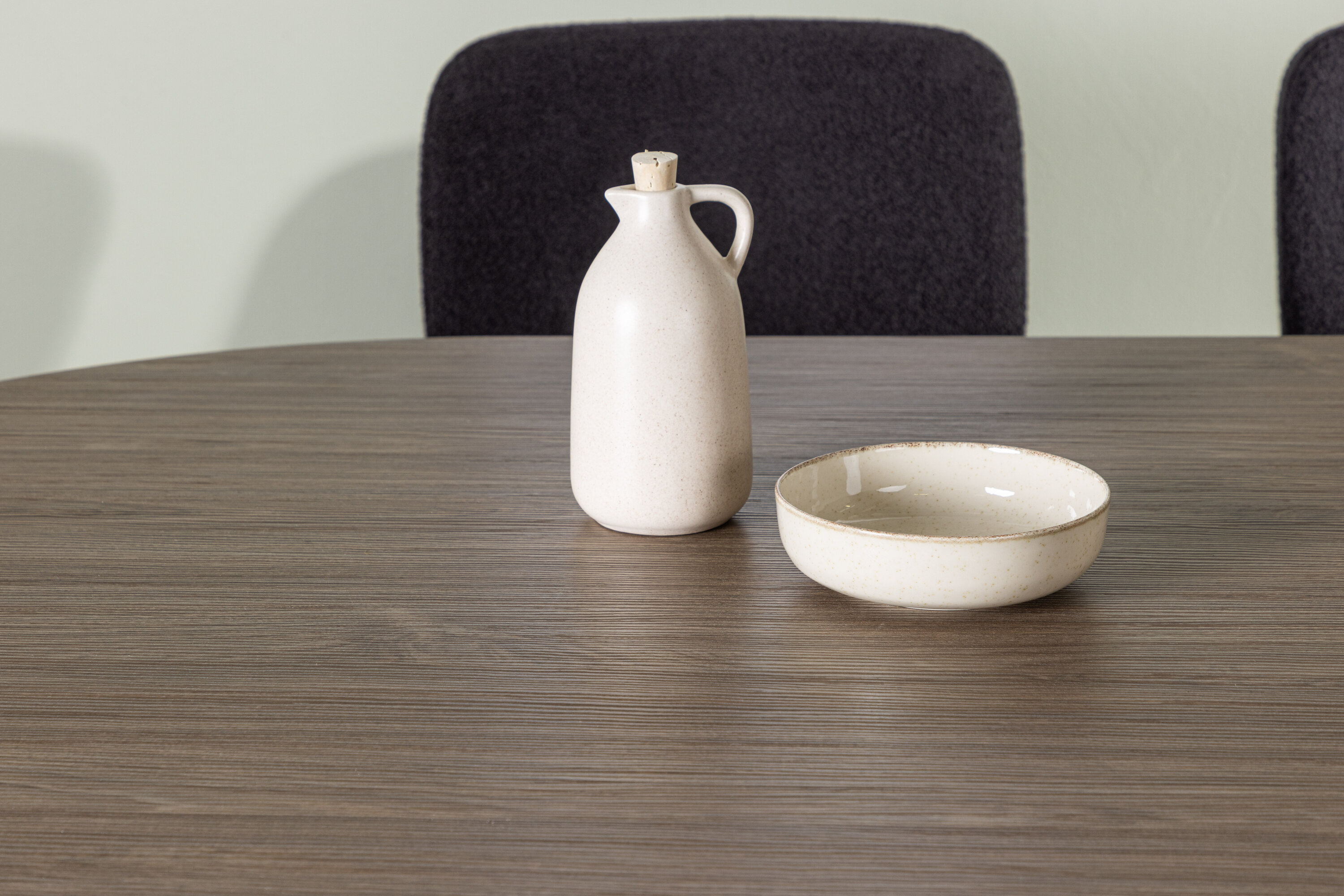 Avec notre table à manger ovale Andy, vous obtenez la combinaison parfaite de style et de fonctionnalité. La table ovale est conçue avec un design mince et classique qui rehaussera le décor de votre maison. Avec un haut fin en MDF dans une couleur brun foncé chaud et quatre jambes classiques en forme de cylindre, Andy dégage un sentiment de simplicité raffinée. Dimensions de la table : 180x75cm.