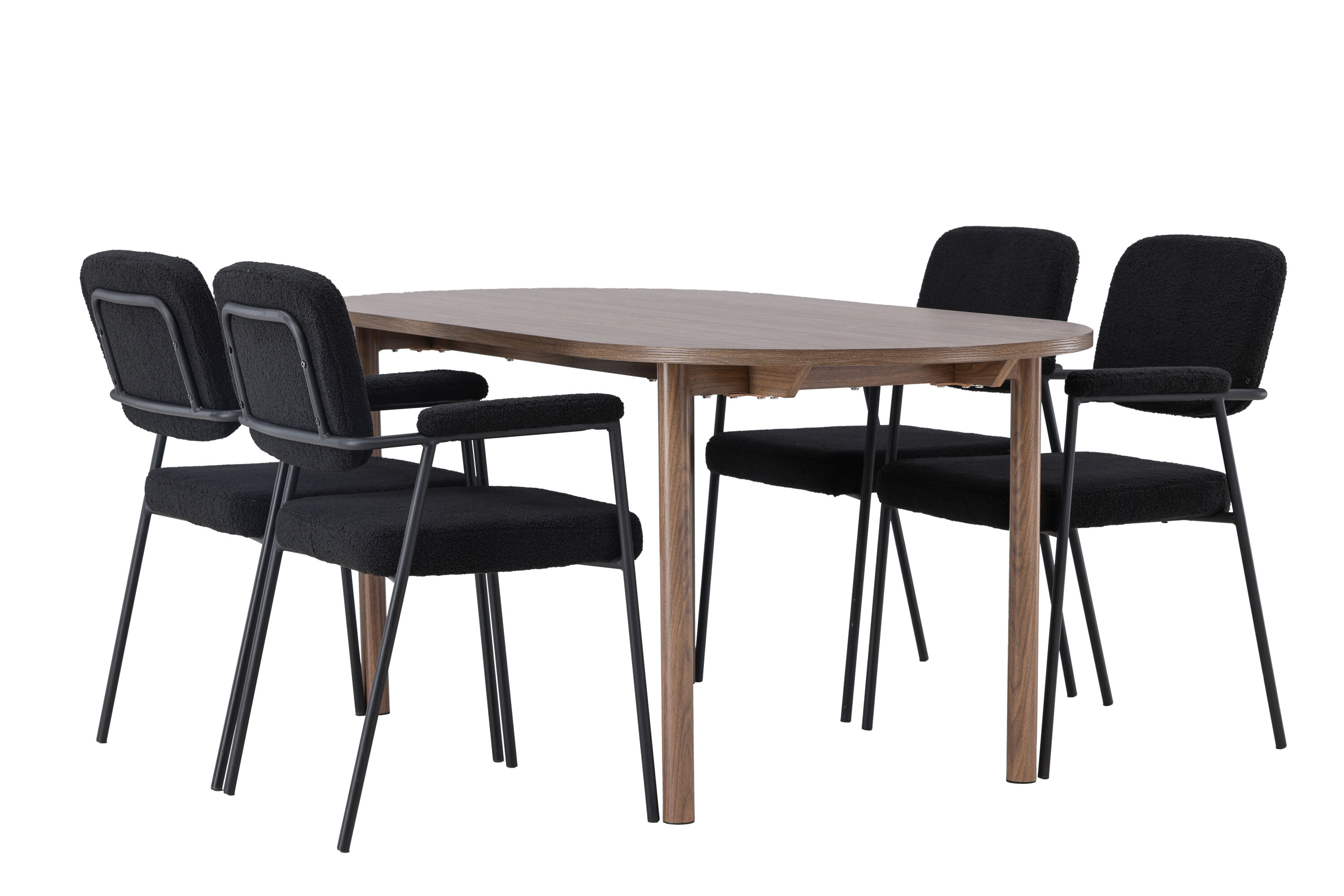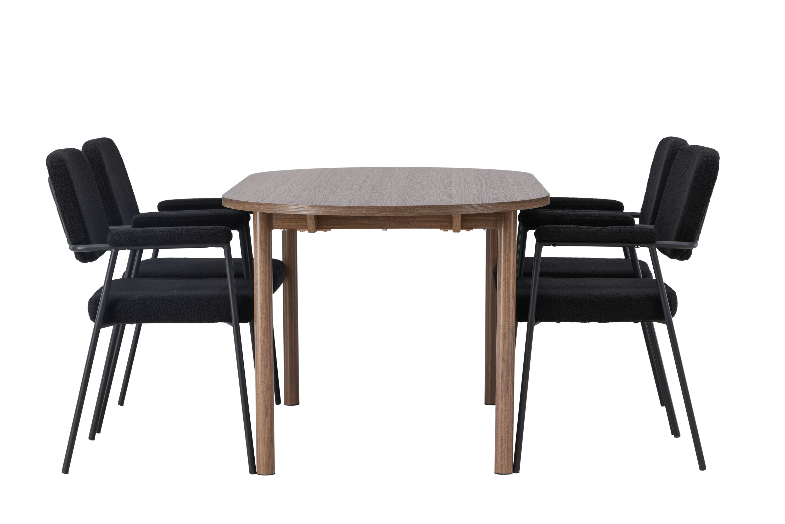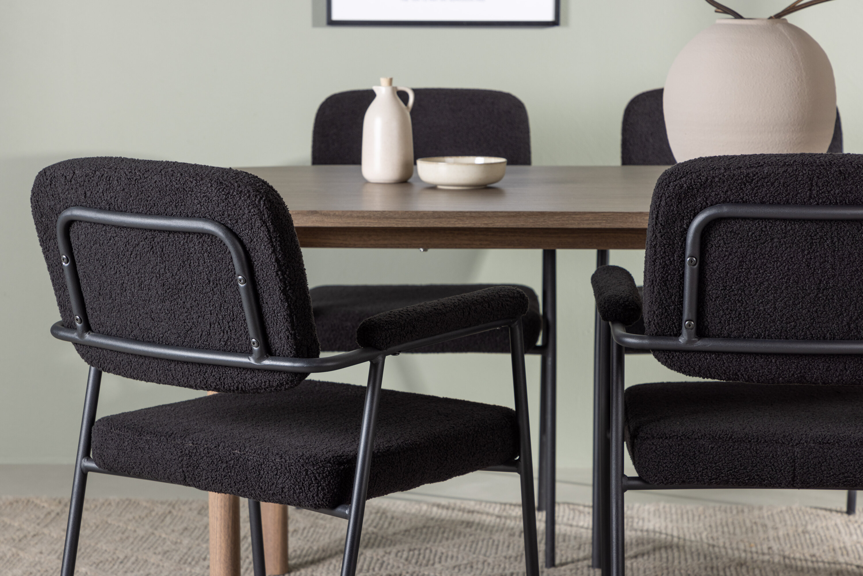 En plus de la table à manger ronde, nous proposons nos chaises de salle à manger noires de la série Yesterday. Le siège entièrement rembourré en tissu bouclé noir offre non seulement un look élégant et moderne, mais également un confort exceptionnel. Les pieds minces en métal noir de la chaise ajoutent une touche subtile et élégante. De plus, ils sont équipés d'accoudoirs intégrés pour plus de commodité et de détente.