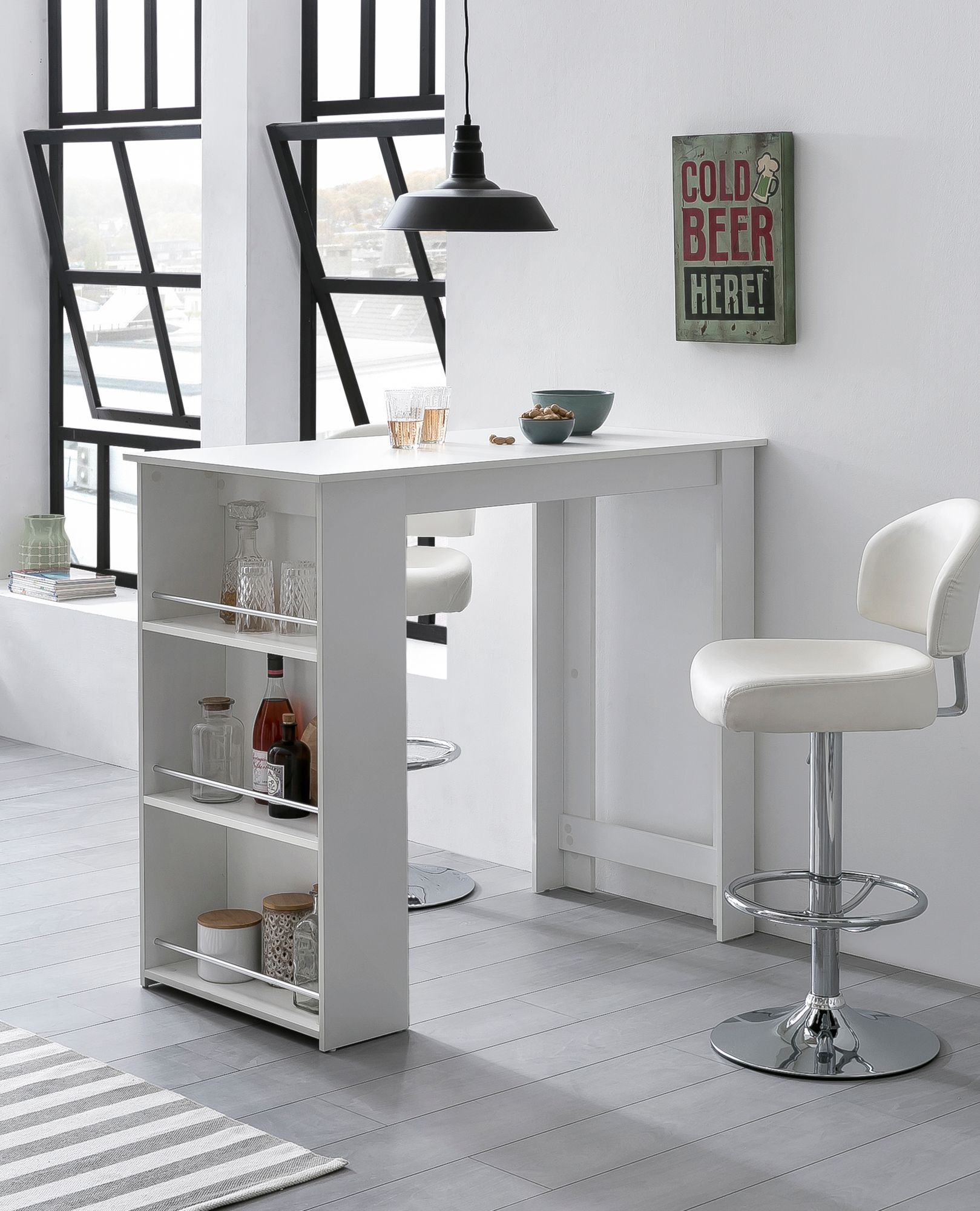 Table de bar bois mélaminé blanc | Couleur blanc | Dimensions 120x107,5x60 cm