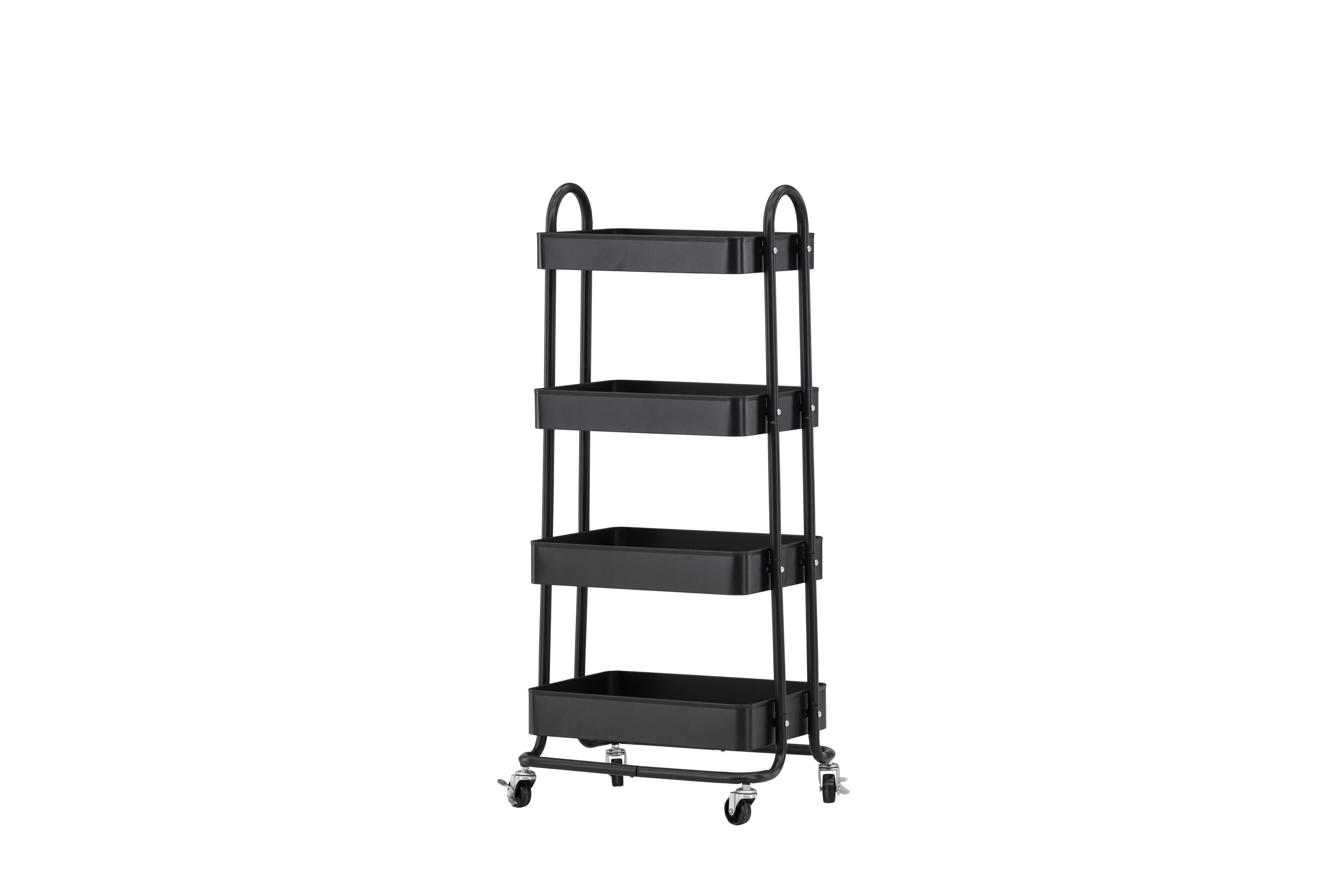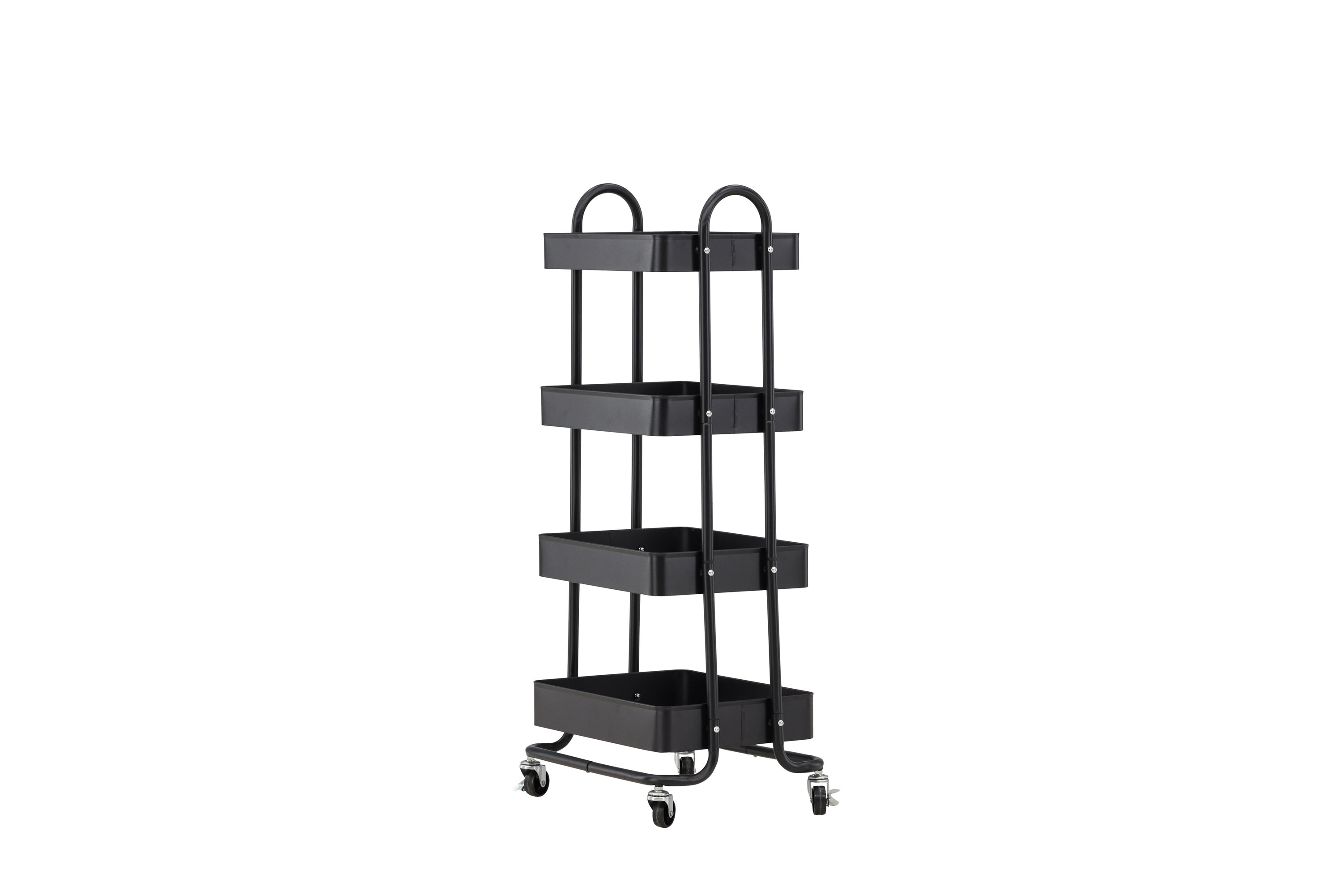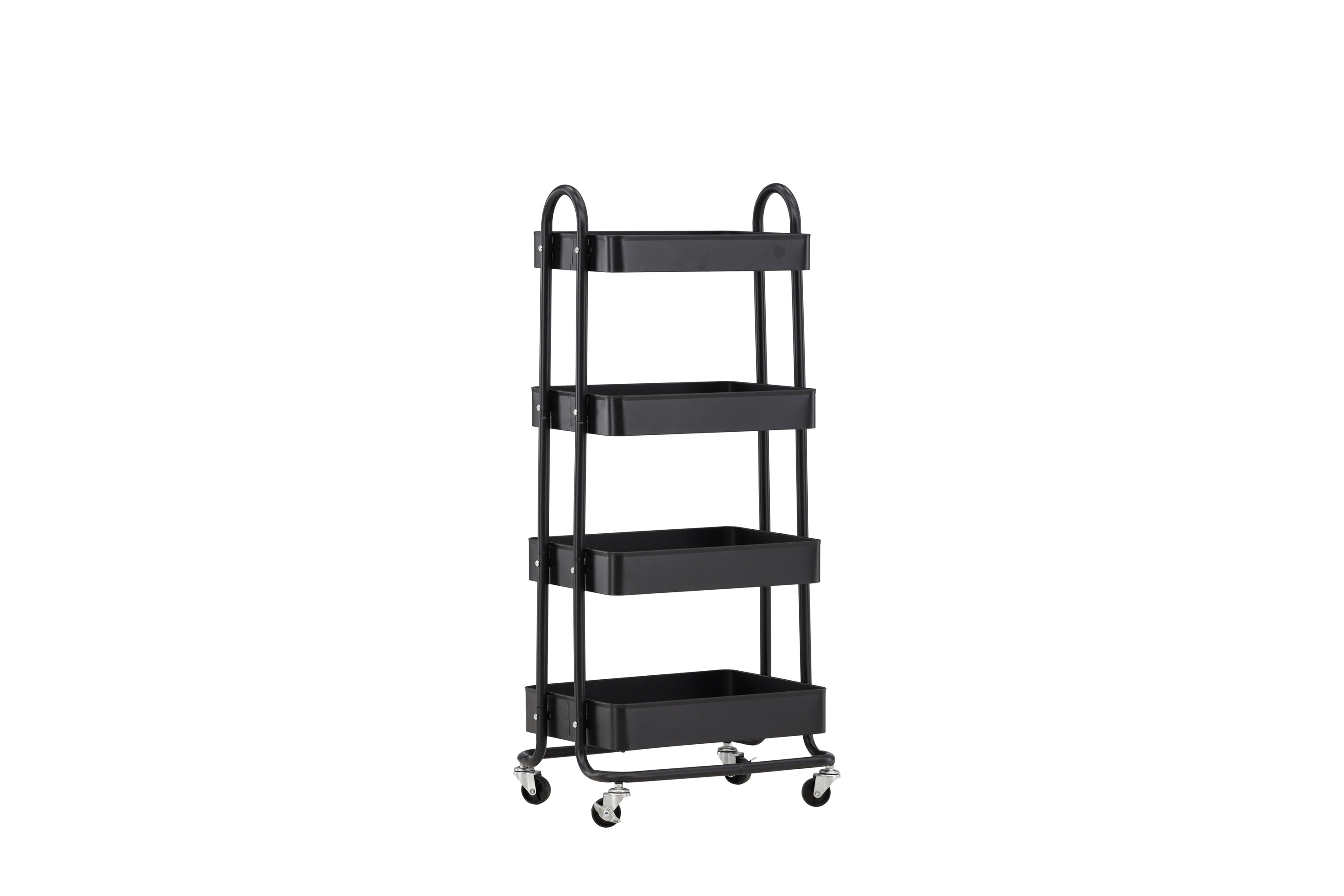 De functionaliteit van Manaus heeft verschillende voordelen. De plank is gemaakt van zwart gepoedercoat metaal, vormt gemakkelijk een aanvulling op andere decoraties en is na verloop van tijd duurzaam. Met vier gladde wielen aan de onderkant kun je hem ook gemakkelijk verplaatsen. Plaats hem in de badkamer en vul hem met handdoeken en hygiëneproducten, of in de kast voor wat extra kledingopslag.