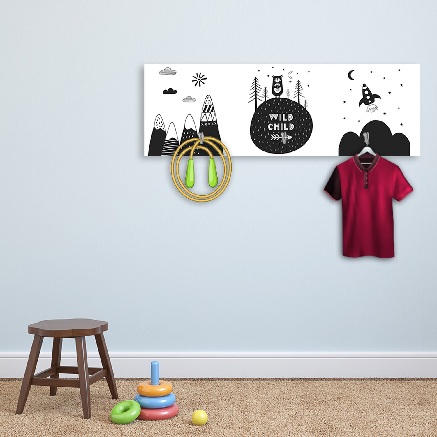 - Kapstok met decor voor kinderkamer, voorzien van drie haken.