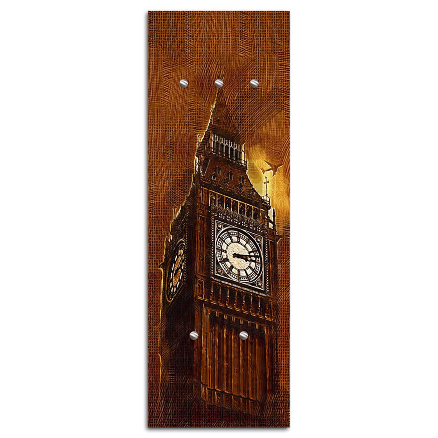 Productinformatie "Kapstok van hardboard en satijnpapier met big ben-design"