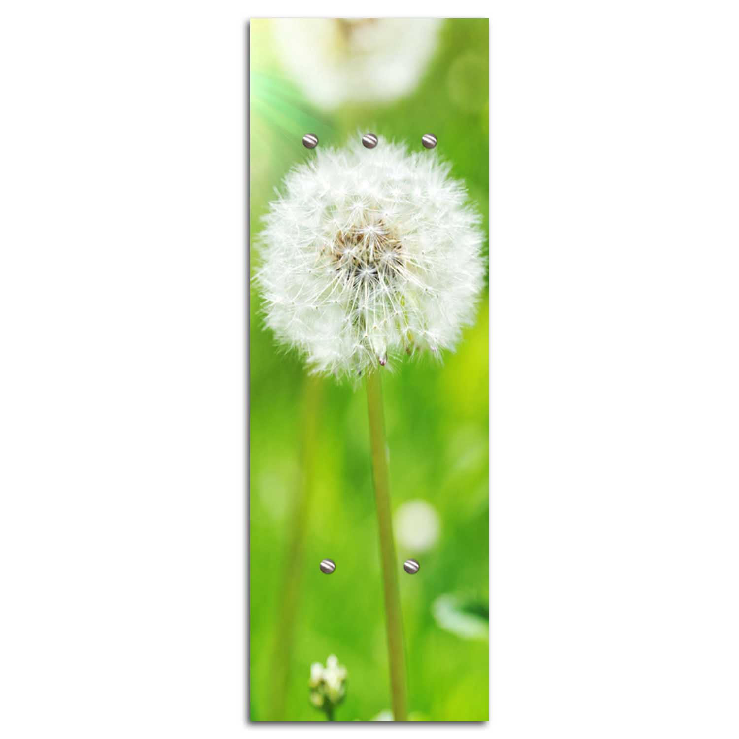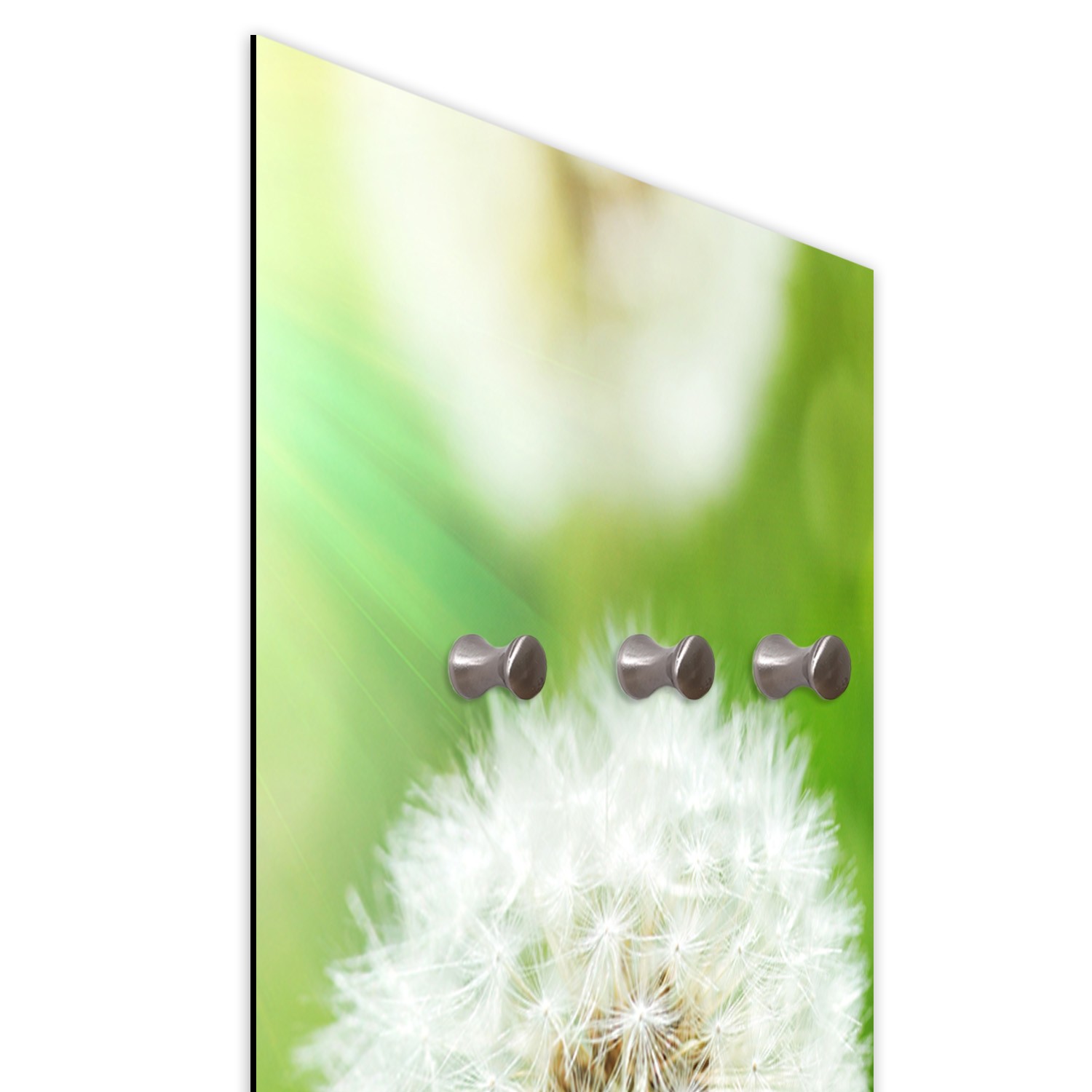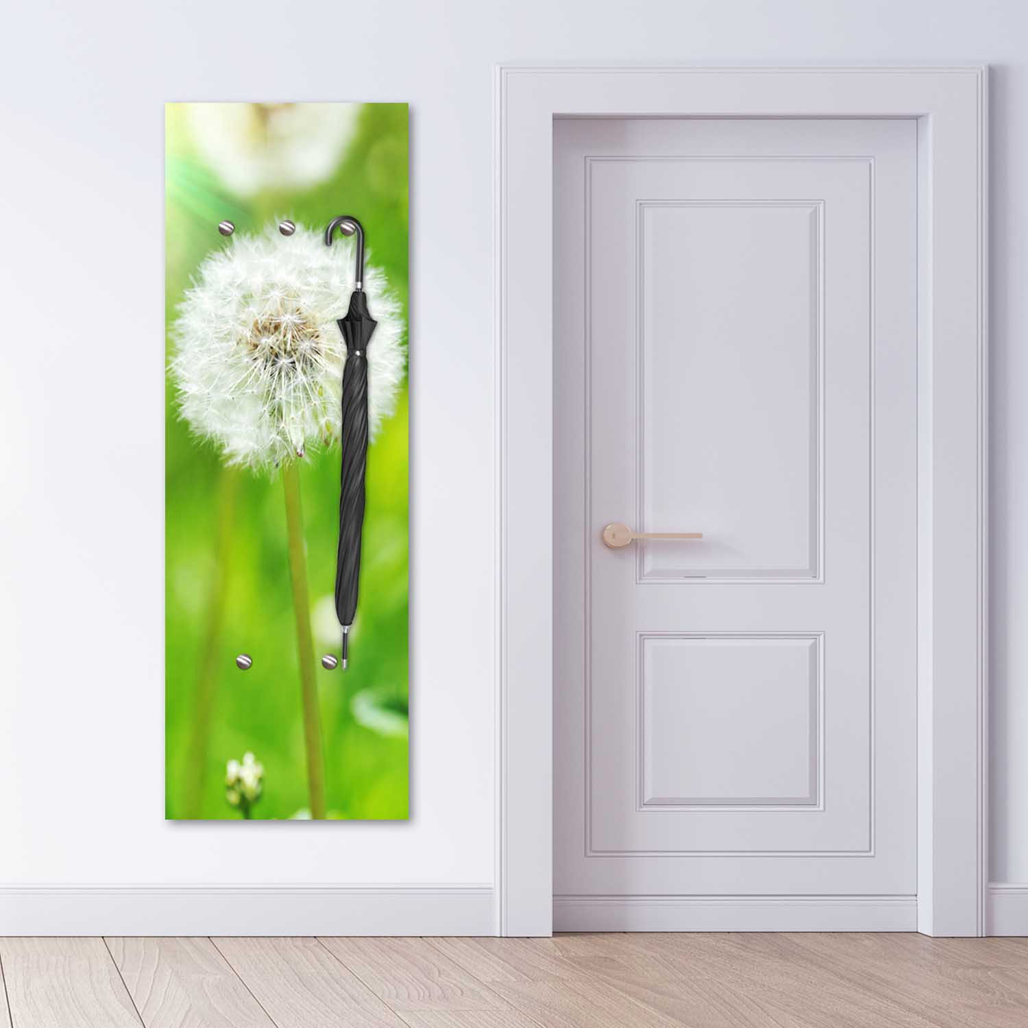 Productinformatie "Kapstok van hardboard en satijnpapier met een tekening van een paardenbloem op de voorgrond"