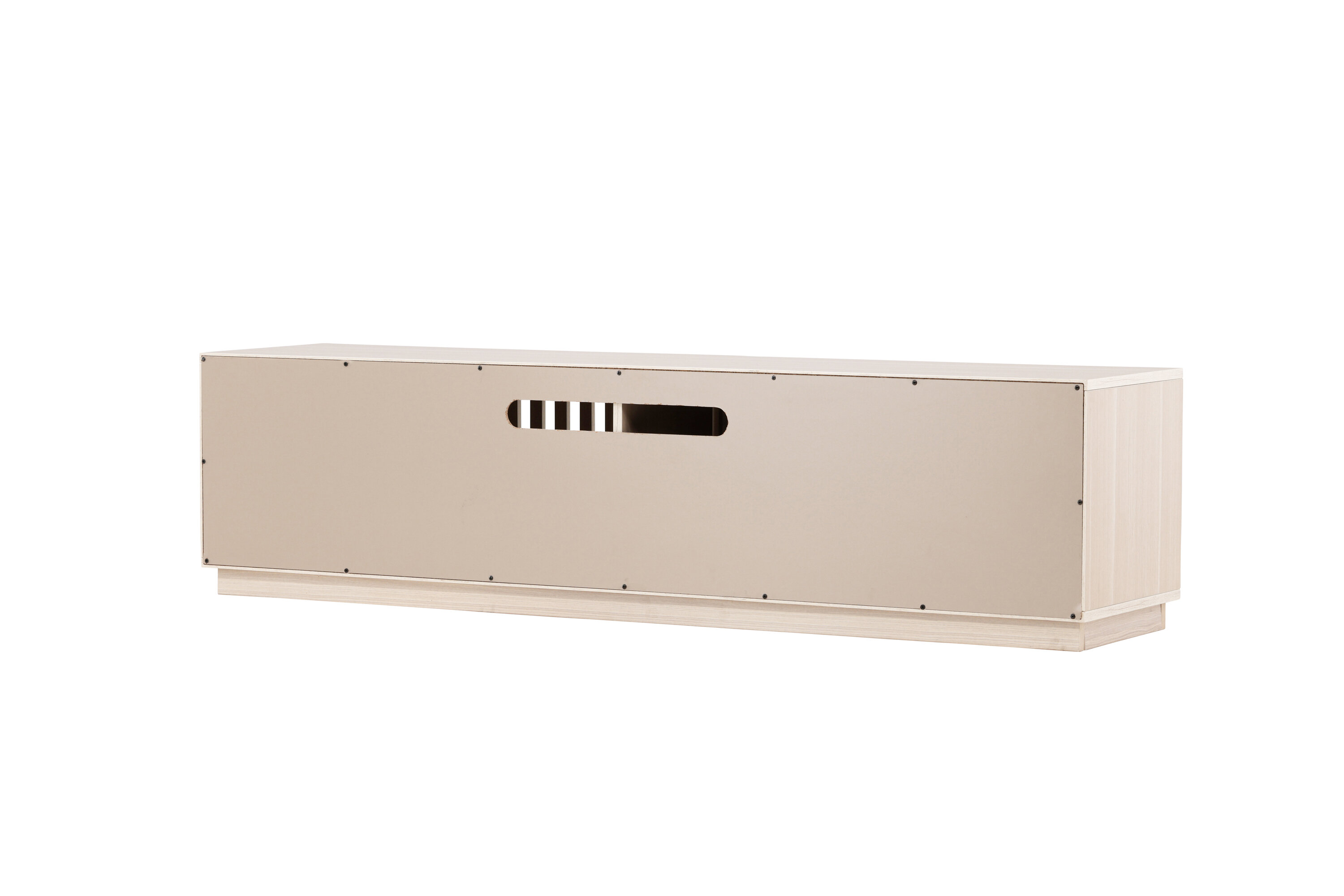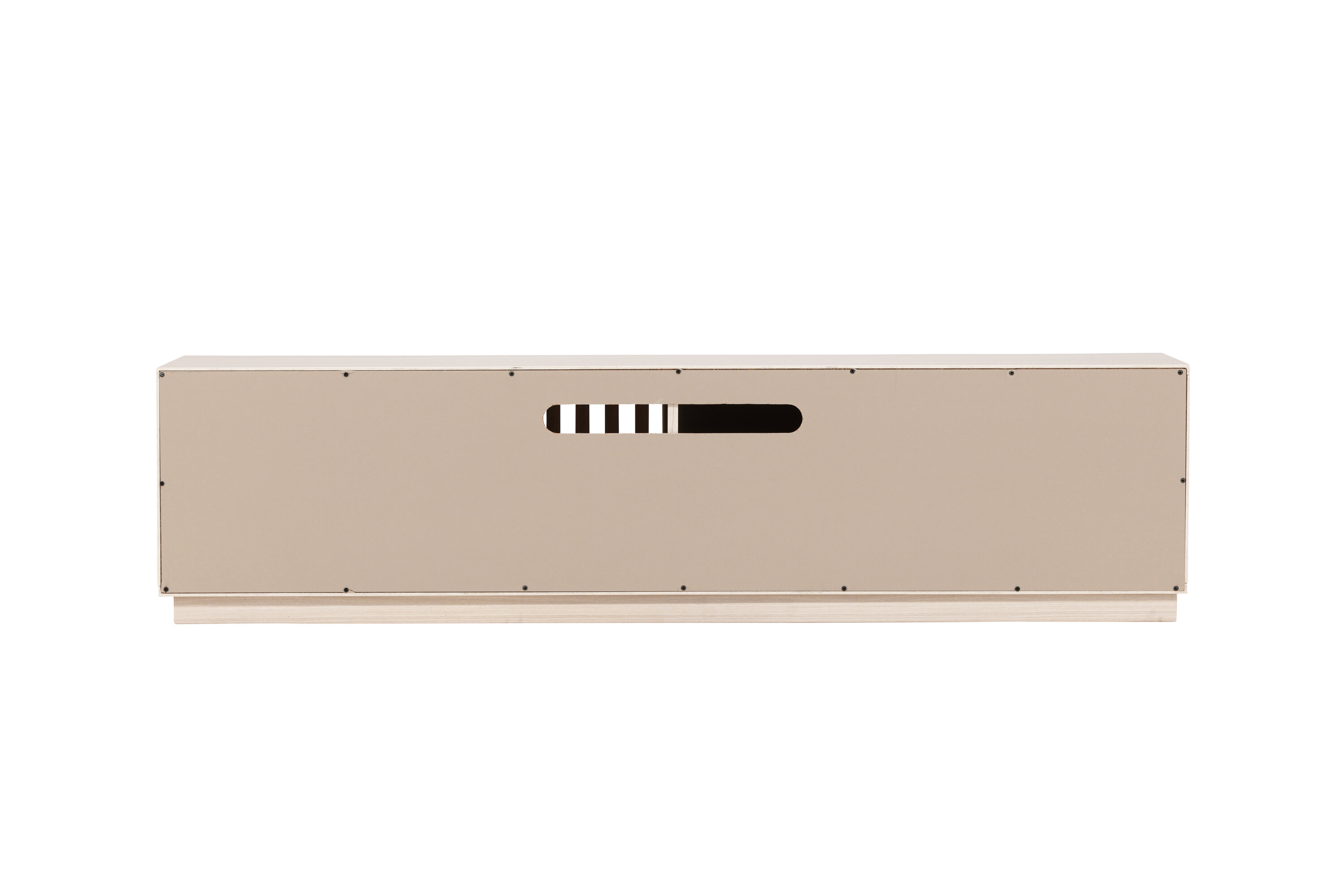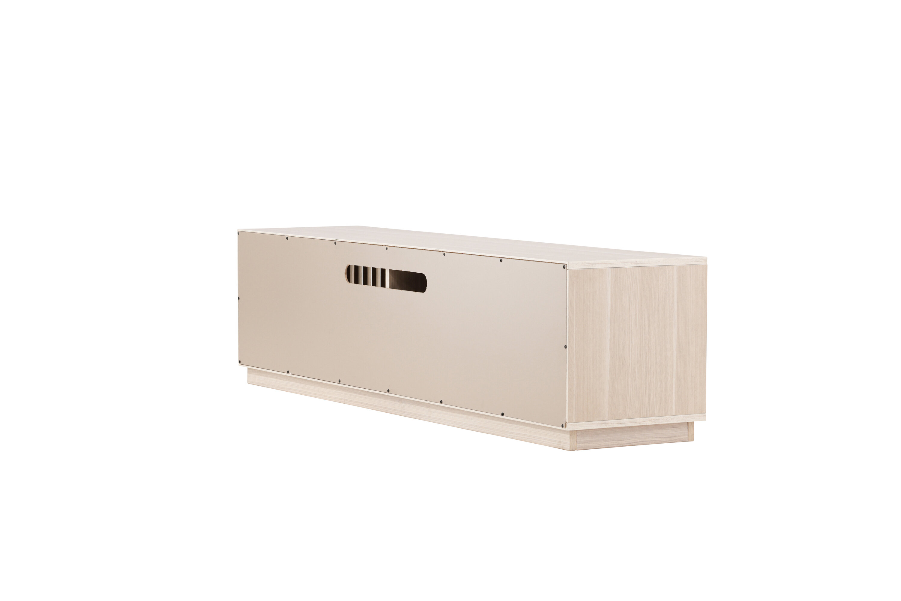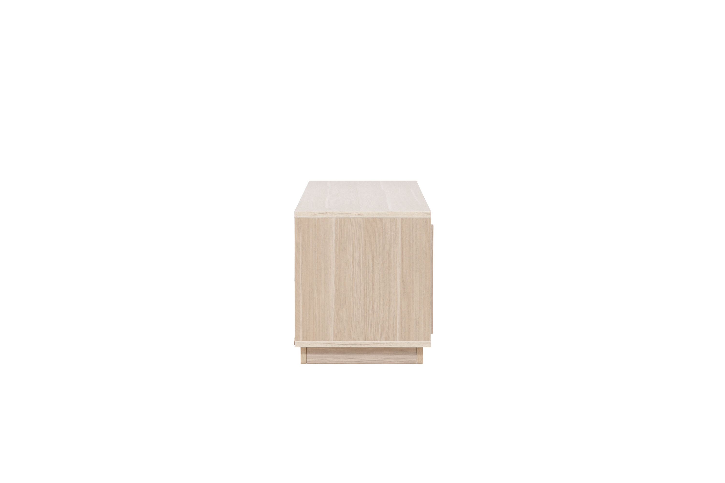 Maar het is belangrijk om toe te voegen dat Lugo niet alleen een lust voor het oog is - het praktische ontwerp is ook een meesterwerk. De slimme schuifdeur, die een royale plank verbergt, biedt uitstekende opbergruimte voor al je tv-hoekaccessoires. De ene deur is solide, terwijl de andere is versierd met een elegant geribbeld rooster, wat een modern vleugje Scandinavische stijl toevoegt.