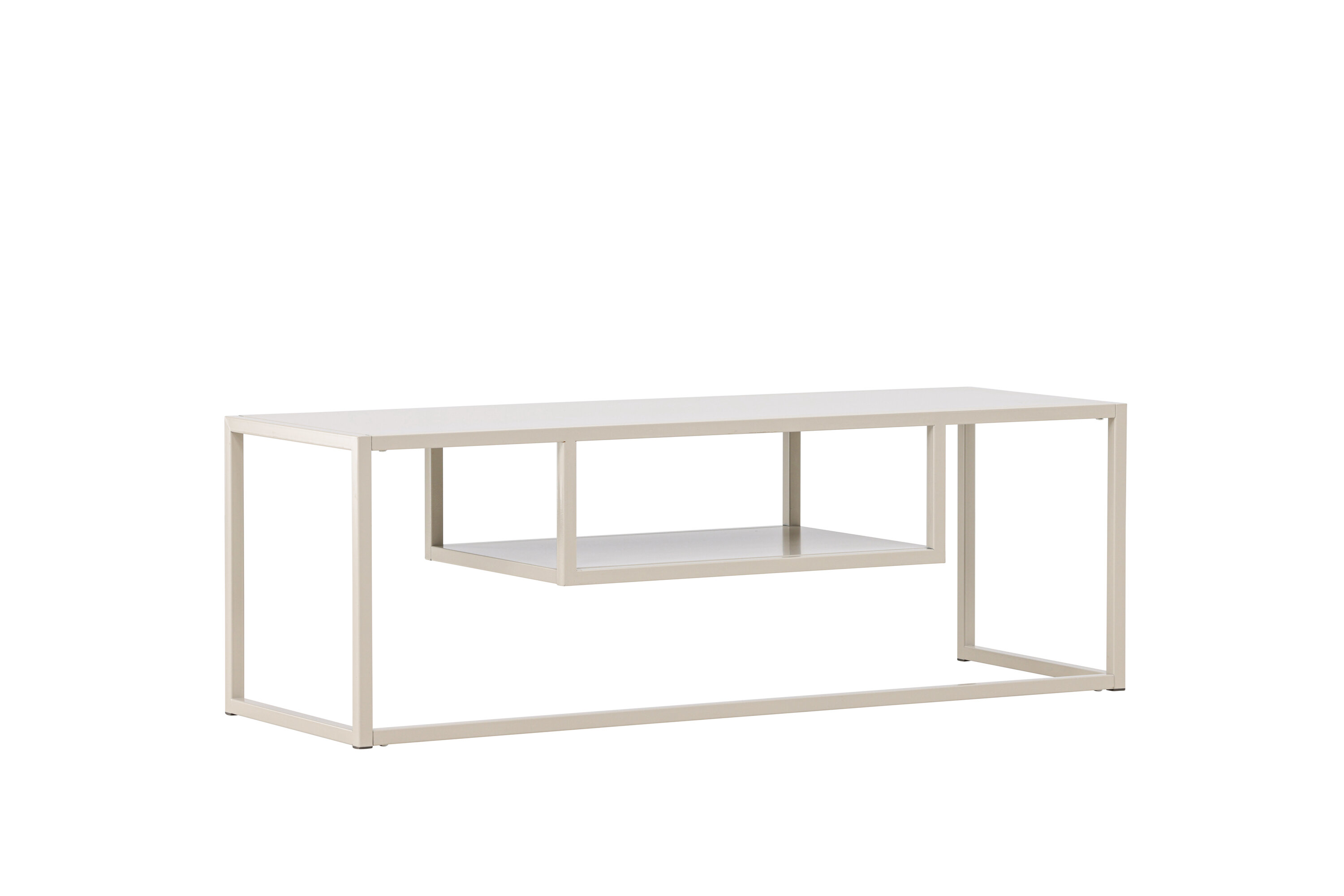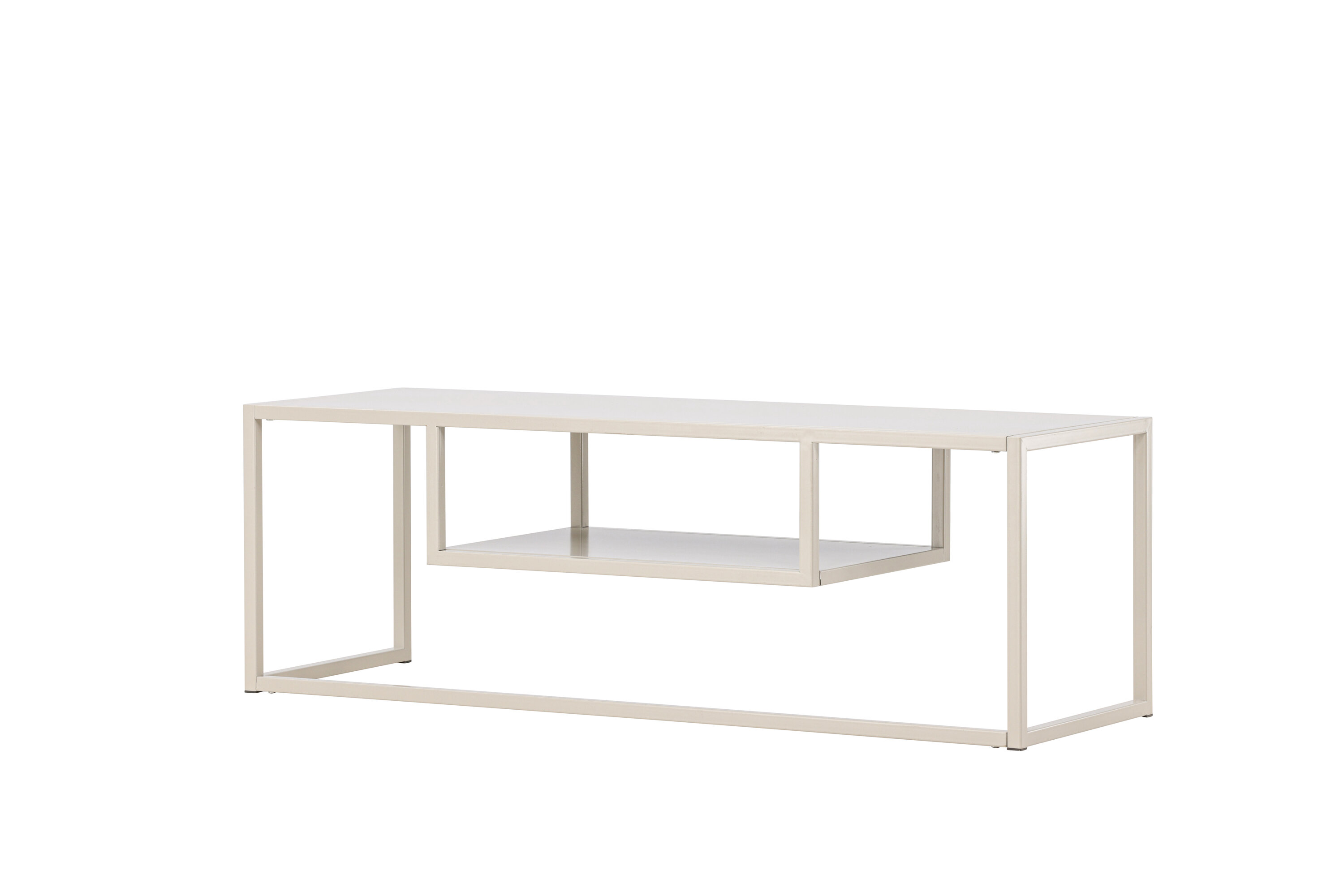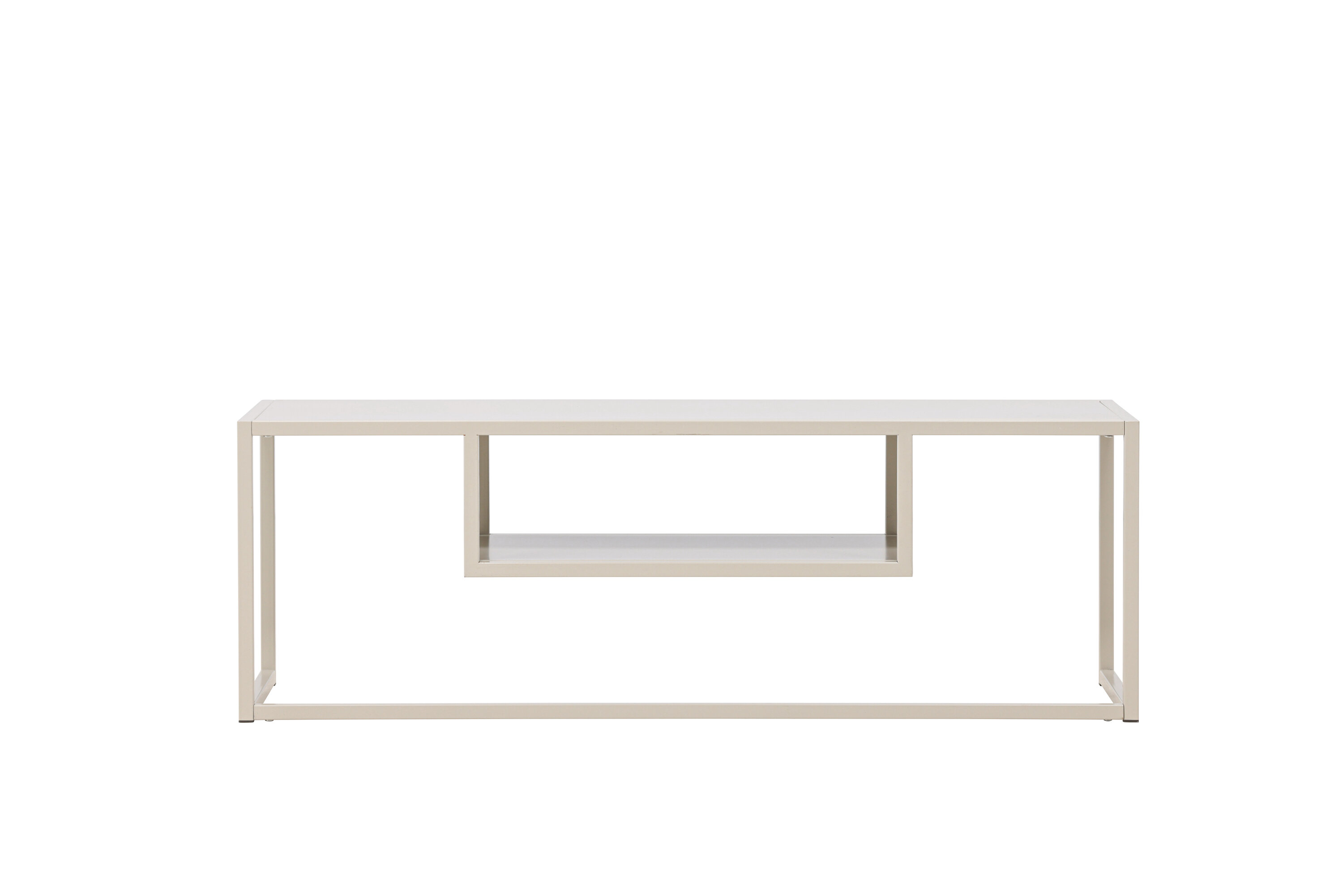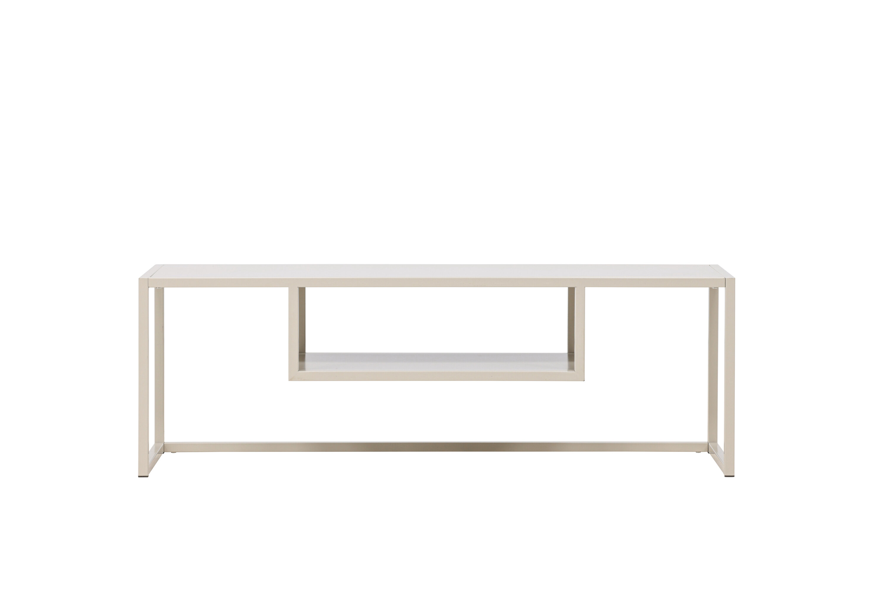 Met een rechthoekig tafelblad en een slank onderstel van duurzaam beige staal combineert Riverside minimalistisch design met slimme functionaliteit. Voel hoe je tv bijna in de lucht zweeft en een gevoel van luchtigheid en ruimte in de kamer creëert.
