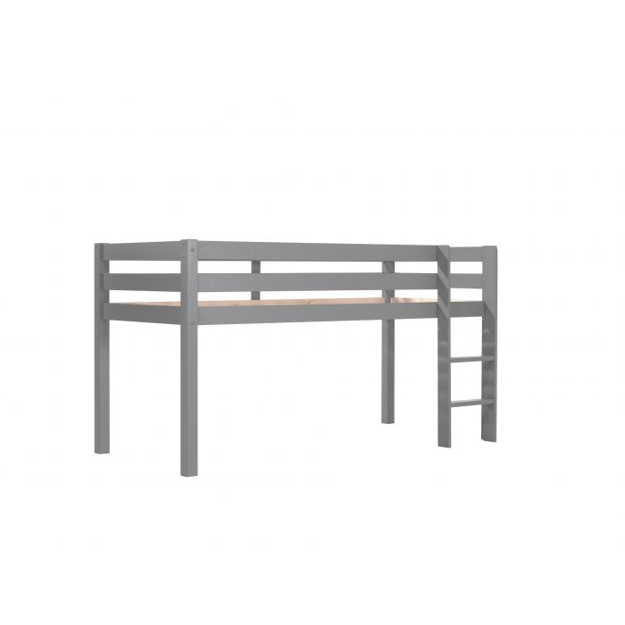 Deze PINO hoogslaper is vervaardigd van massief grenen en is grijs gelakt. De ladder kan zowel links als rechts gemonteerd worden. De lattenbodem is inbegrepen. De allround valbeveiliging, brede treden en goede stabiliteit maken dit bed heel veilig. De ruimte onder het bed kan gebruikt worden om te spelen of als opbergruimte. In het PINO gamma zijn verschillende mogelijkheden beschikbaar om dit bed aan te vullen met een bureau, bibliotheek, commodes, hangplankje of leuke textielset. Bij deze combinatie is een speelgordijn Pink Flower inbegrepen.