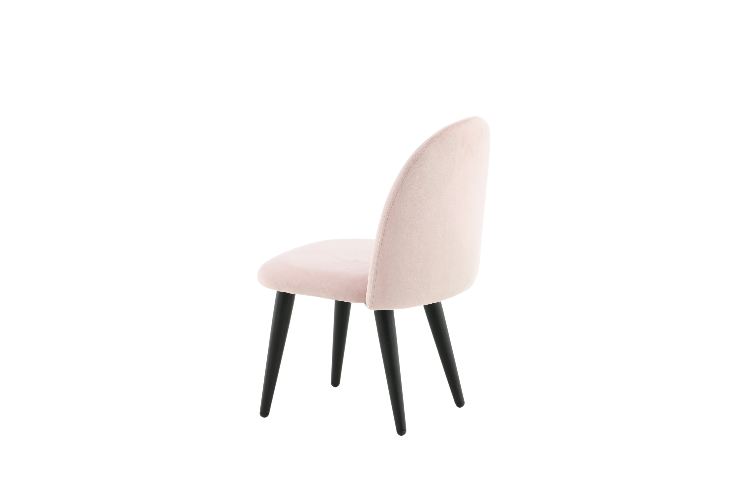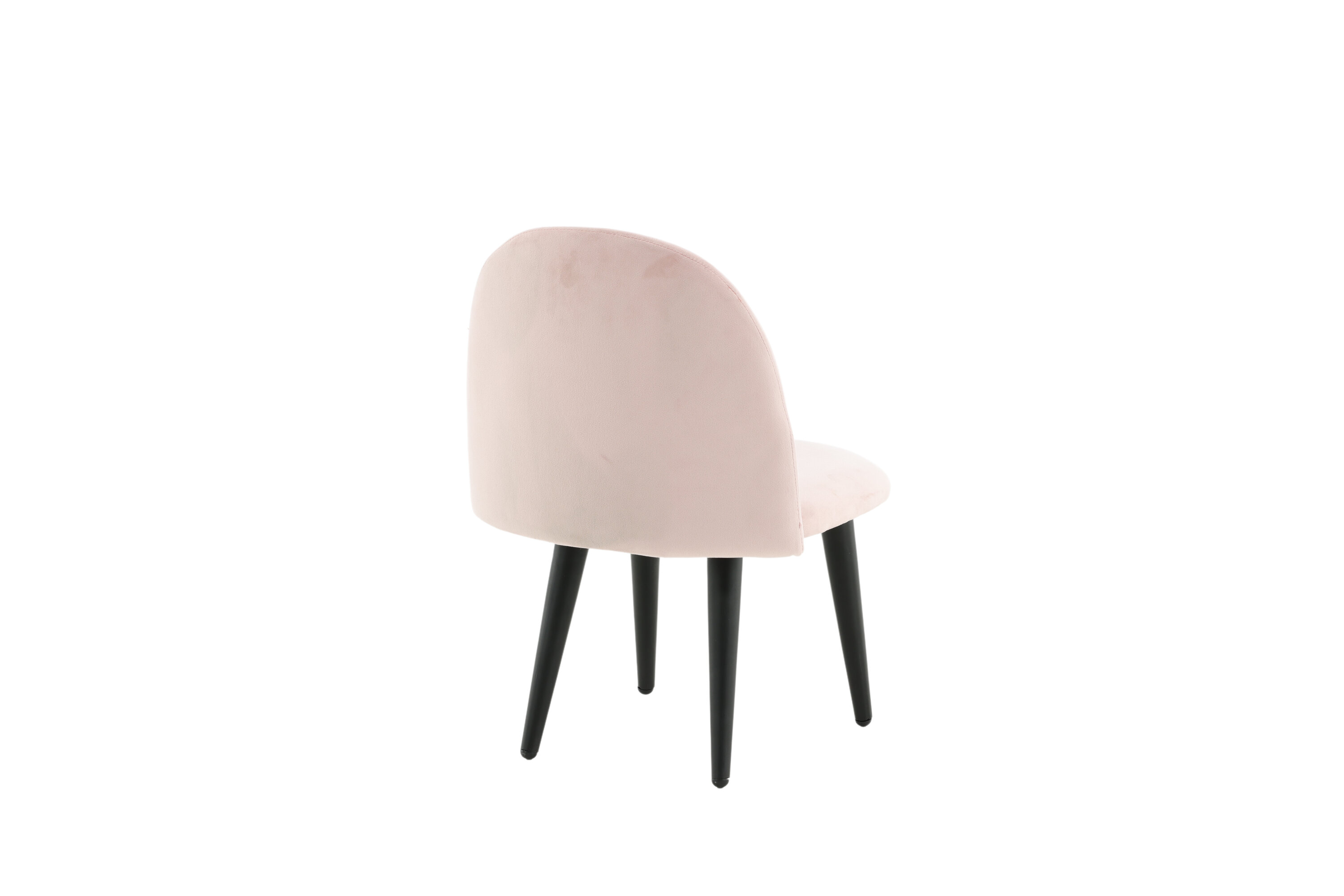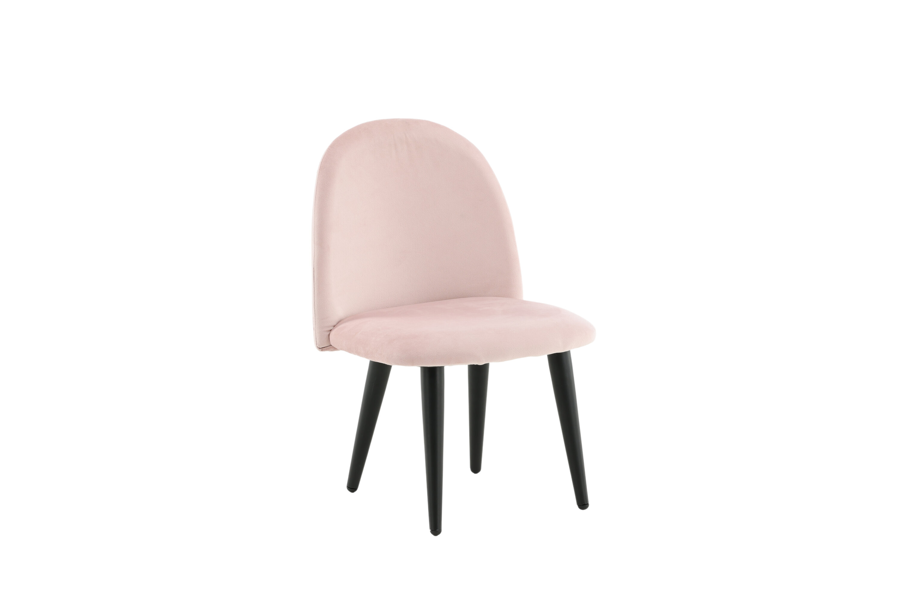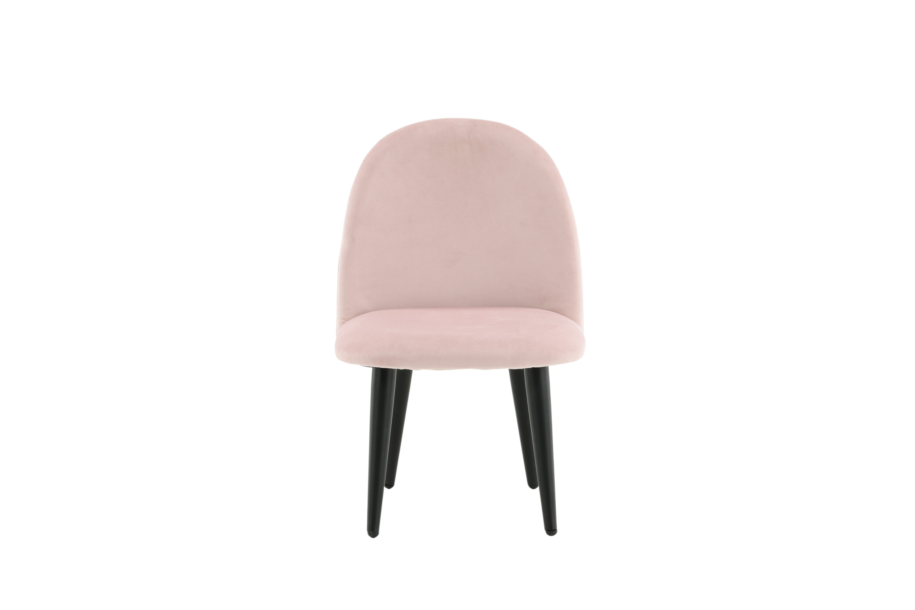 Eetkamerstoel voor kinderen in een volledig gekleed ontwerp met poten in wit gepoedercoat metaal en met een licht afgeronde rugleuning en zitting in gestoffeerde roze fluwelen stof. Lichtere montage is vereist.