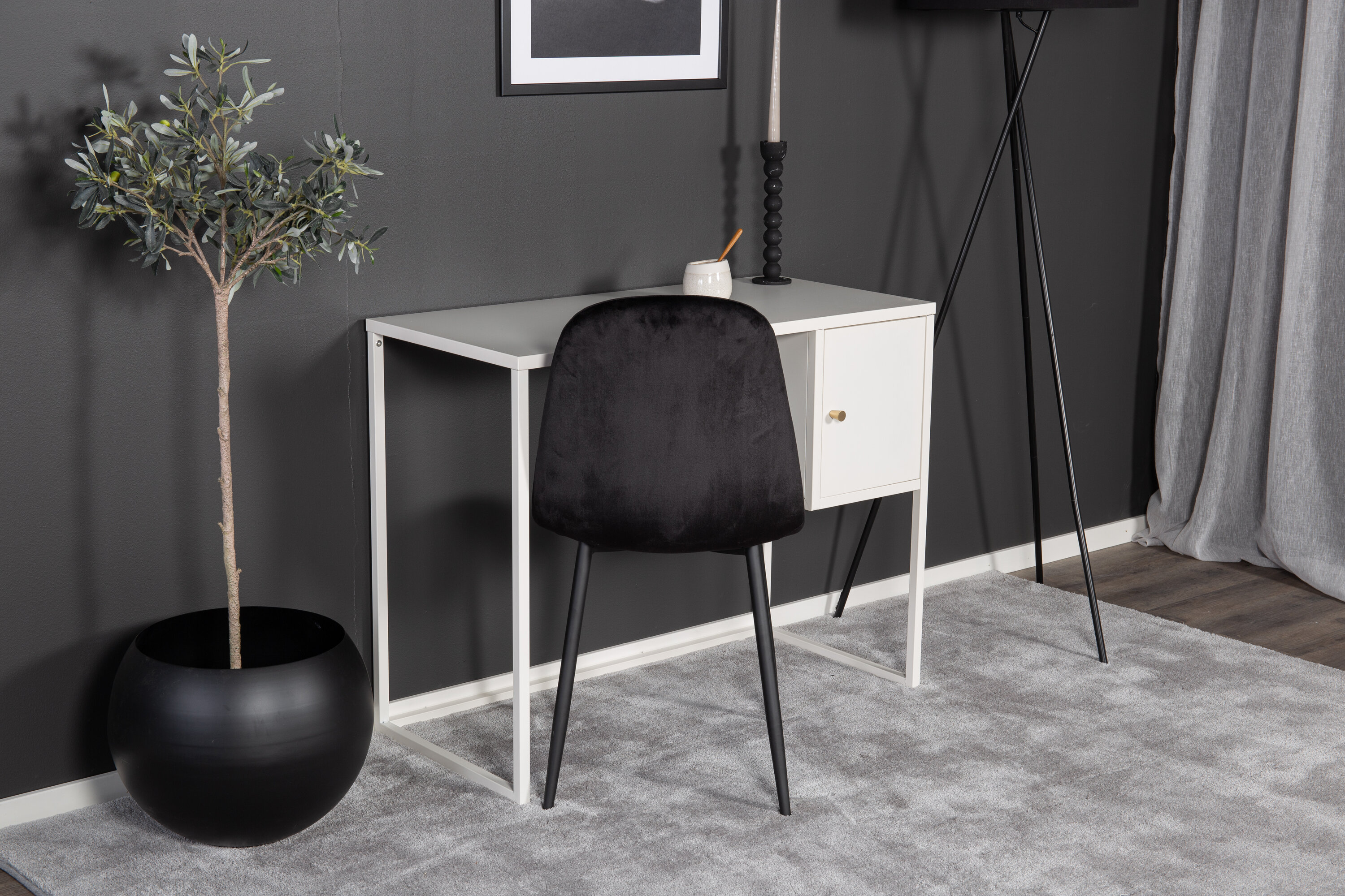Baktal, een mooi bureau in modern industrieel design met geïntegreerd frame en een vierkante kleinere kast. Een kleinere deur met verborgen opbergruimte en een reliëfoppervlak in de rechterhoek van wit gepoedercoat staal. De deur heeft een koperkleurige knop. Afmetingen: Lengte: 95 cm, breedte: 45 cm, hoogte: 50 cm. Lichtere montage is vereist.
