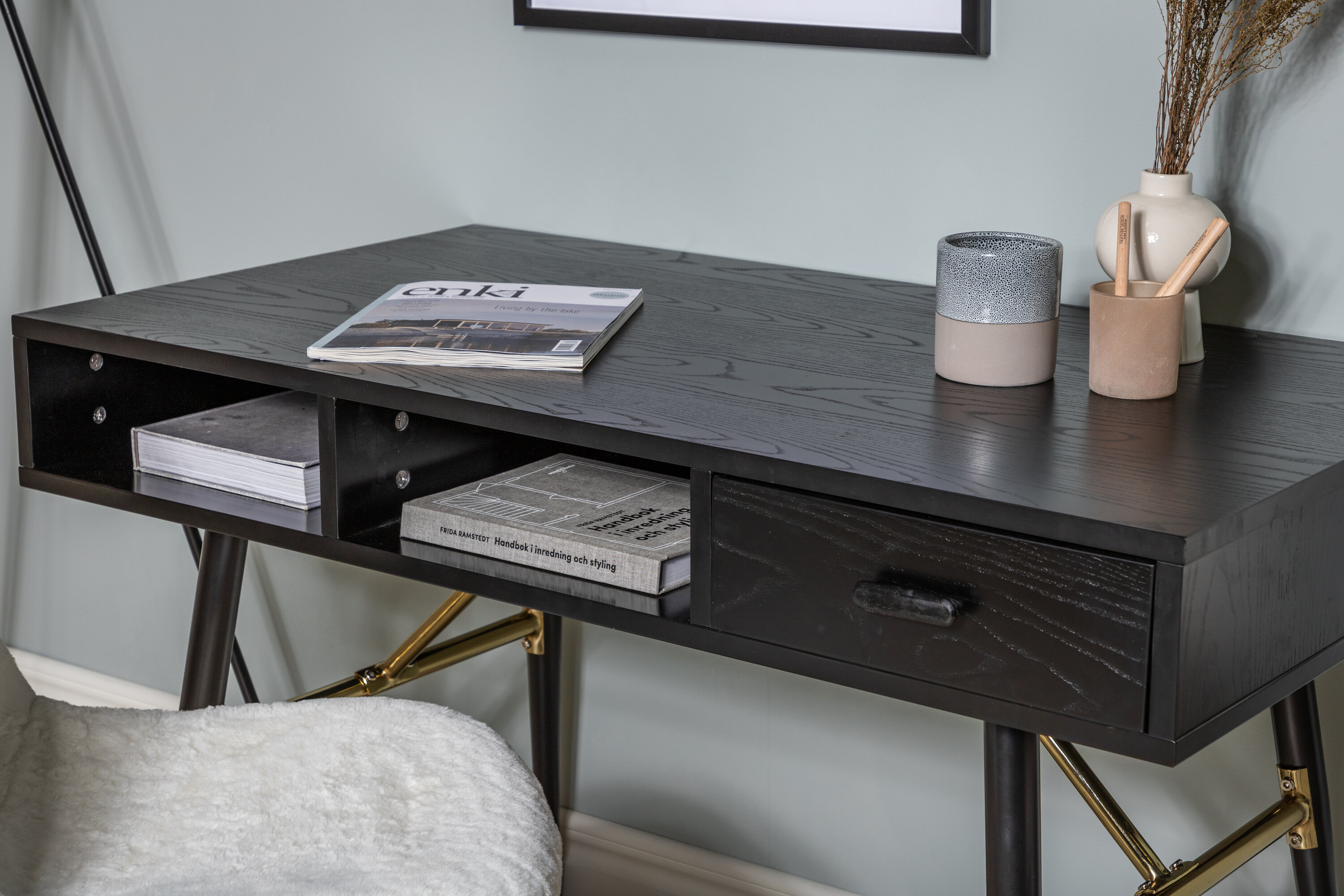 Gouden bureau - Zwart fineer - Zwarte poten - Messing details