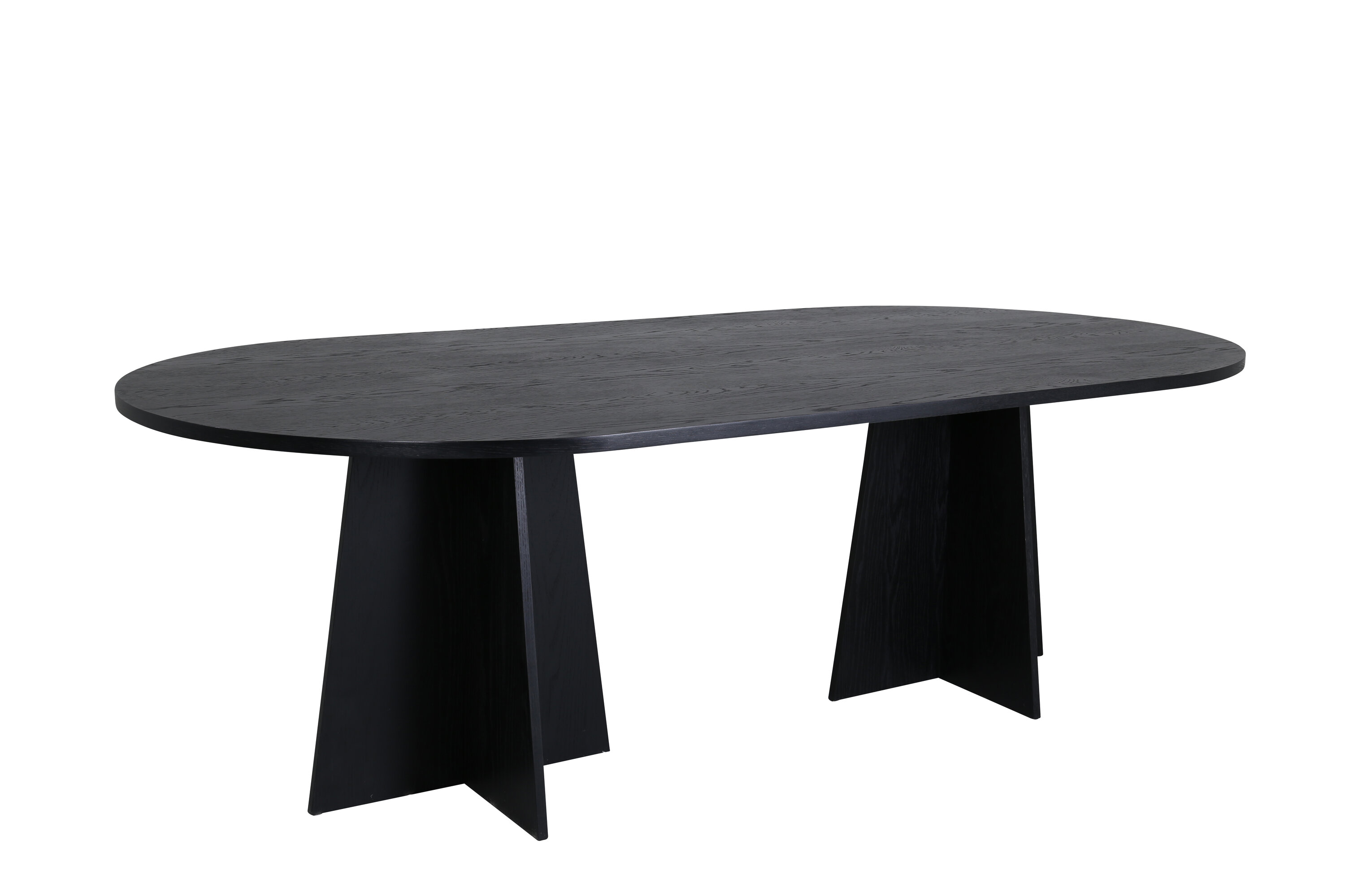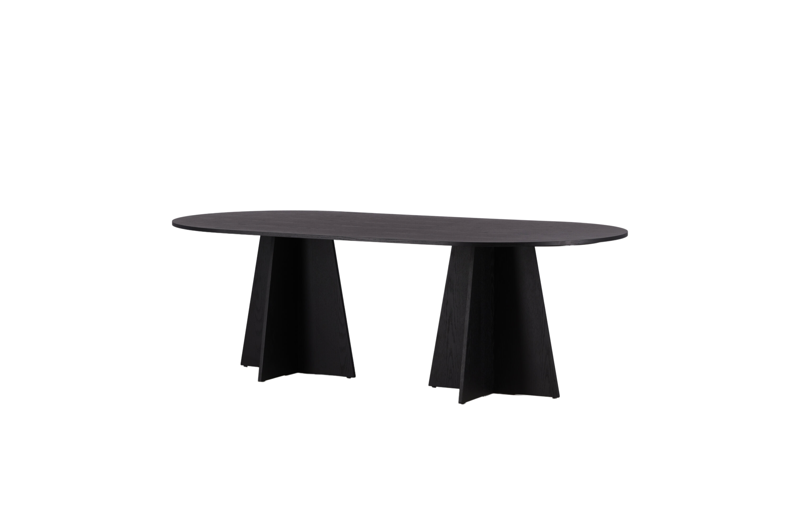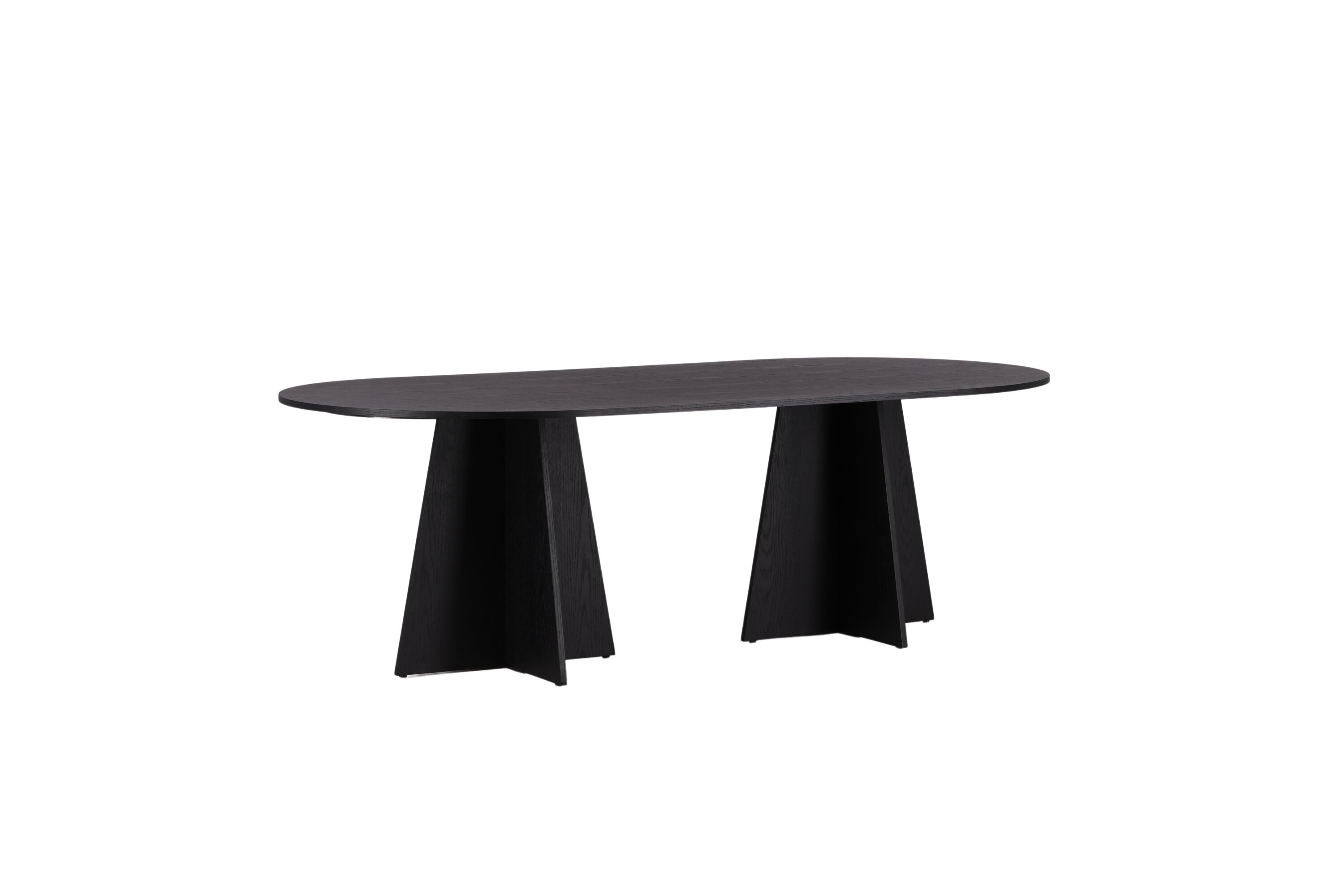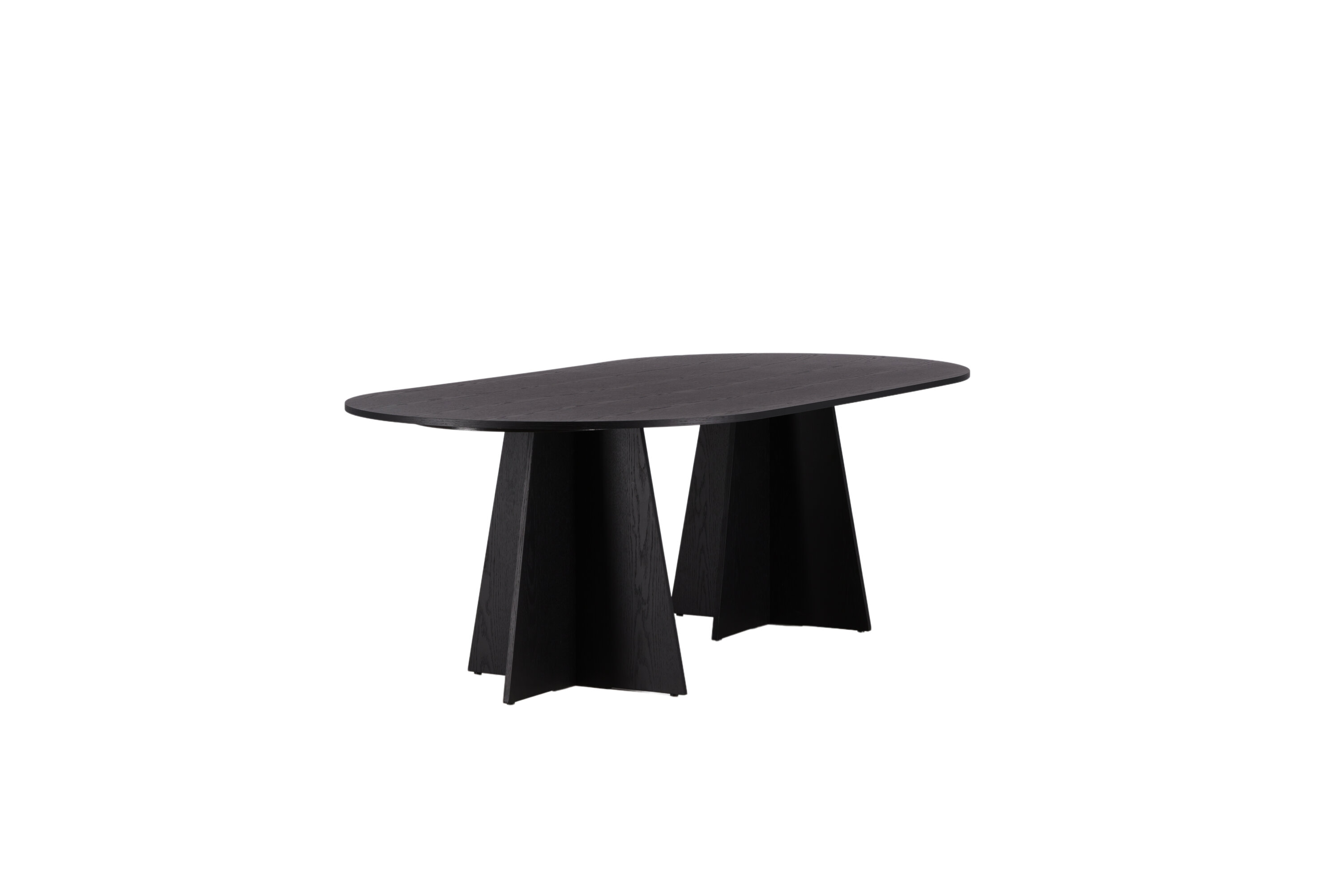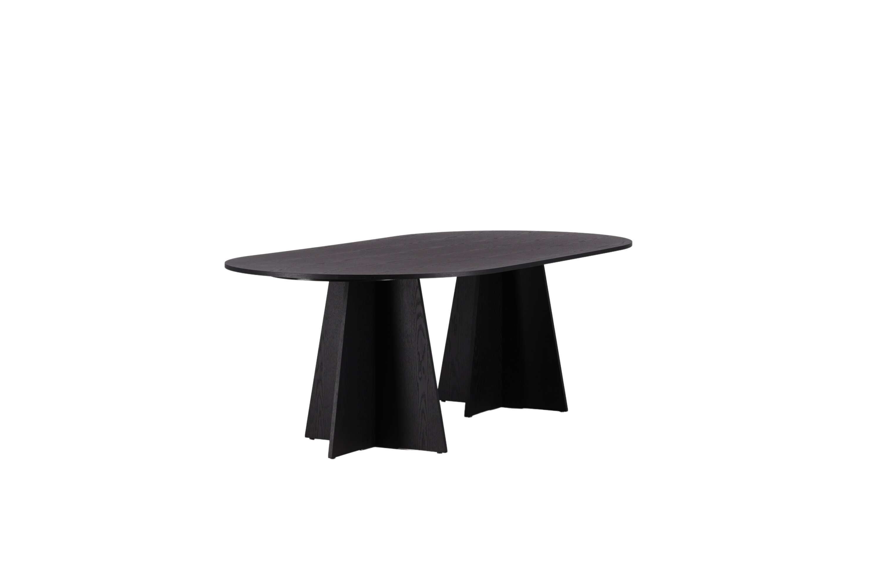 Richt de woning in met een eettafel die indruk maakt! Bootcut heeft een uniek design met een ovaal tafelblad in zwart MDF met fineer en een eigenaardig frame met twee kegelvormige poten in open design. Het dunne tafelblad zorgt voor een minimalistische indruk en vormt een smaakvol contrast met het robuustere frame. Combineer met een paar comfortabele eetkamerstoelen en je krijgt een complete voedselgroep die na verloop van tijd blijft staan!