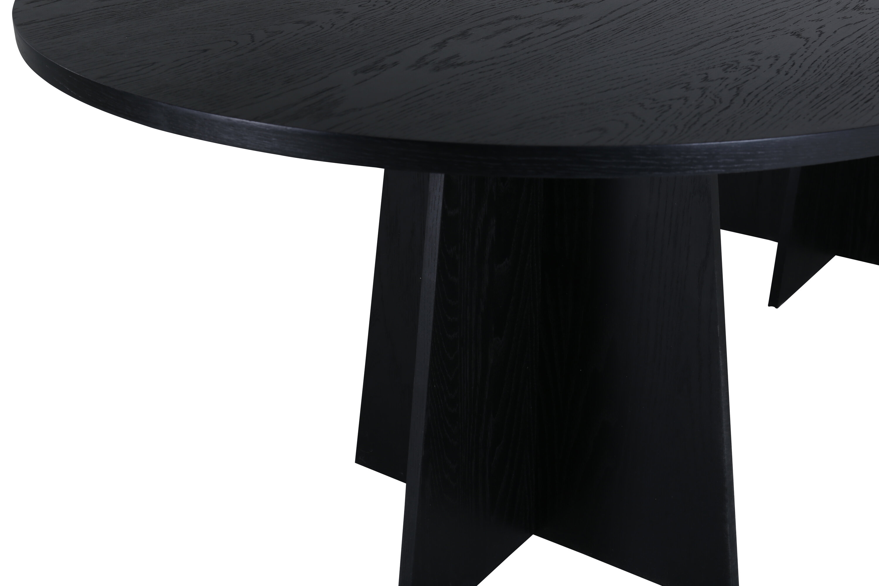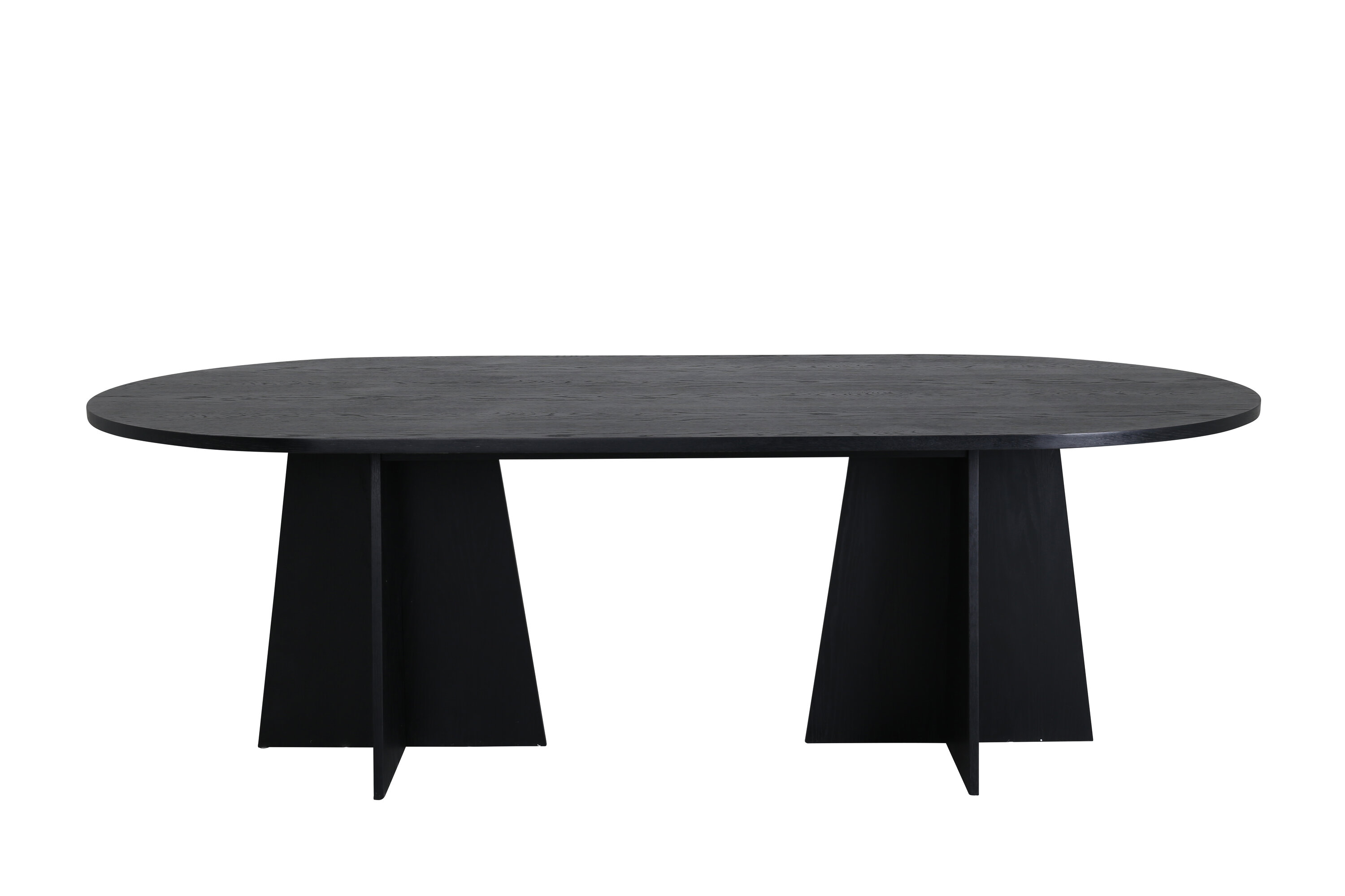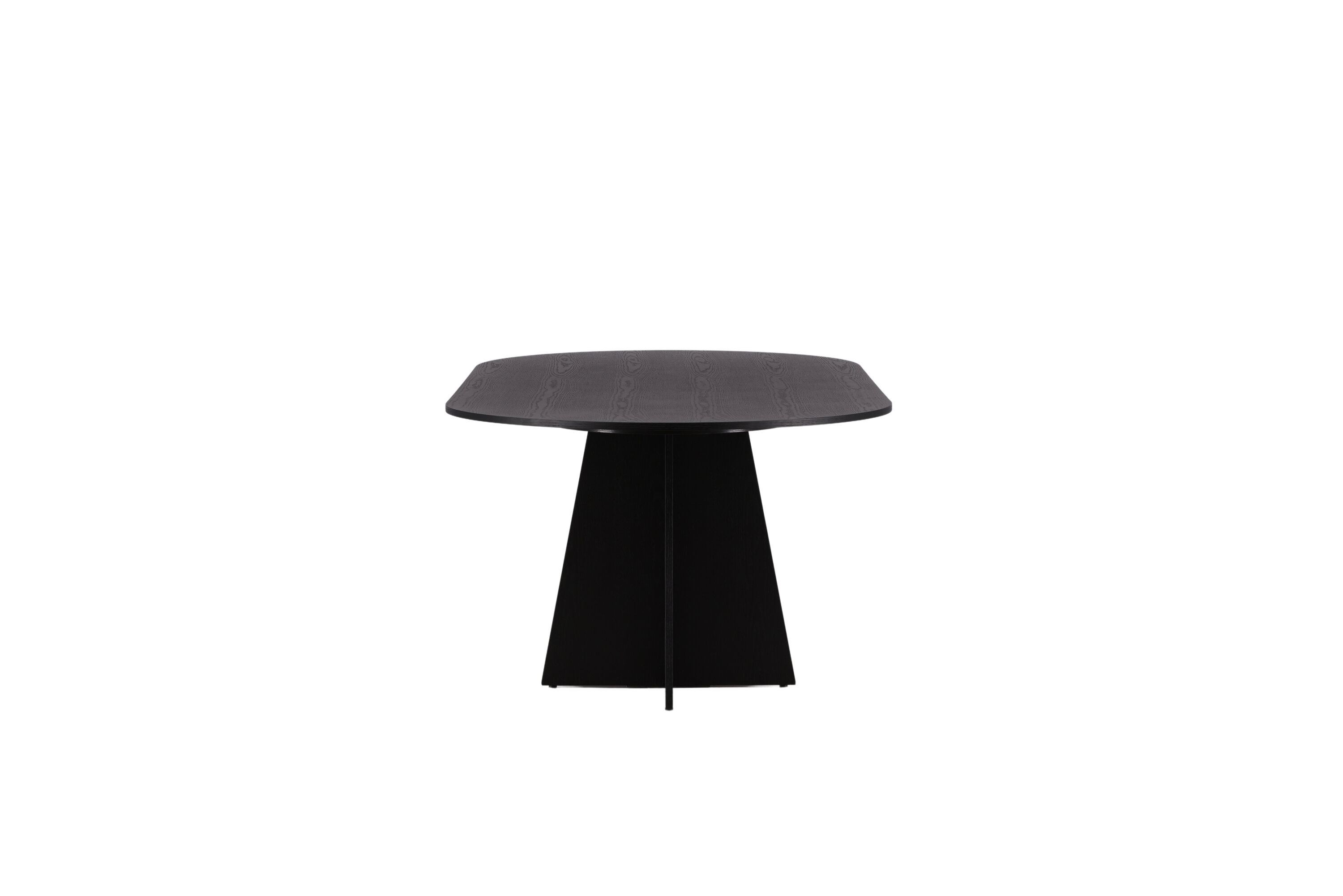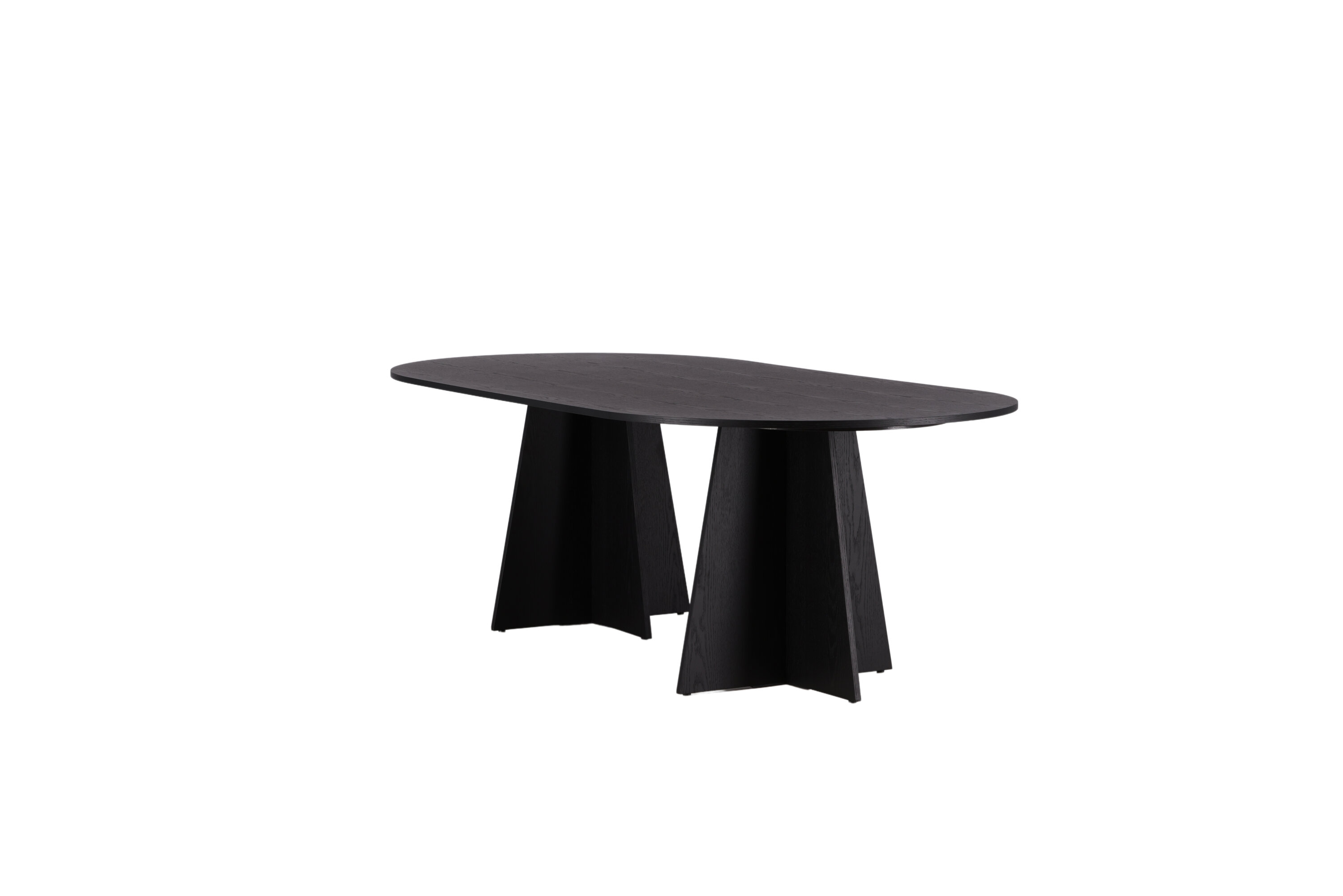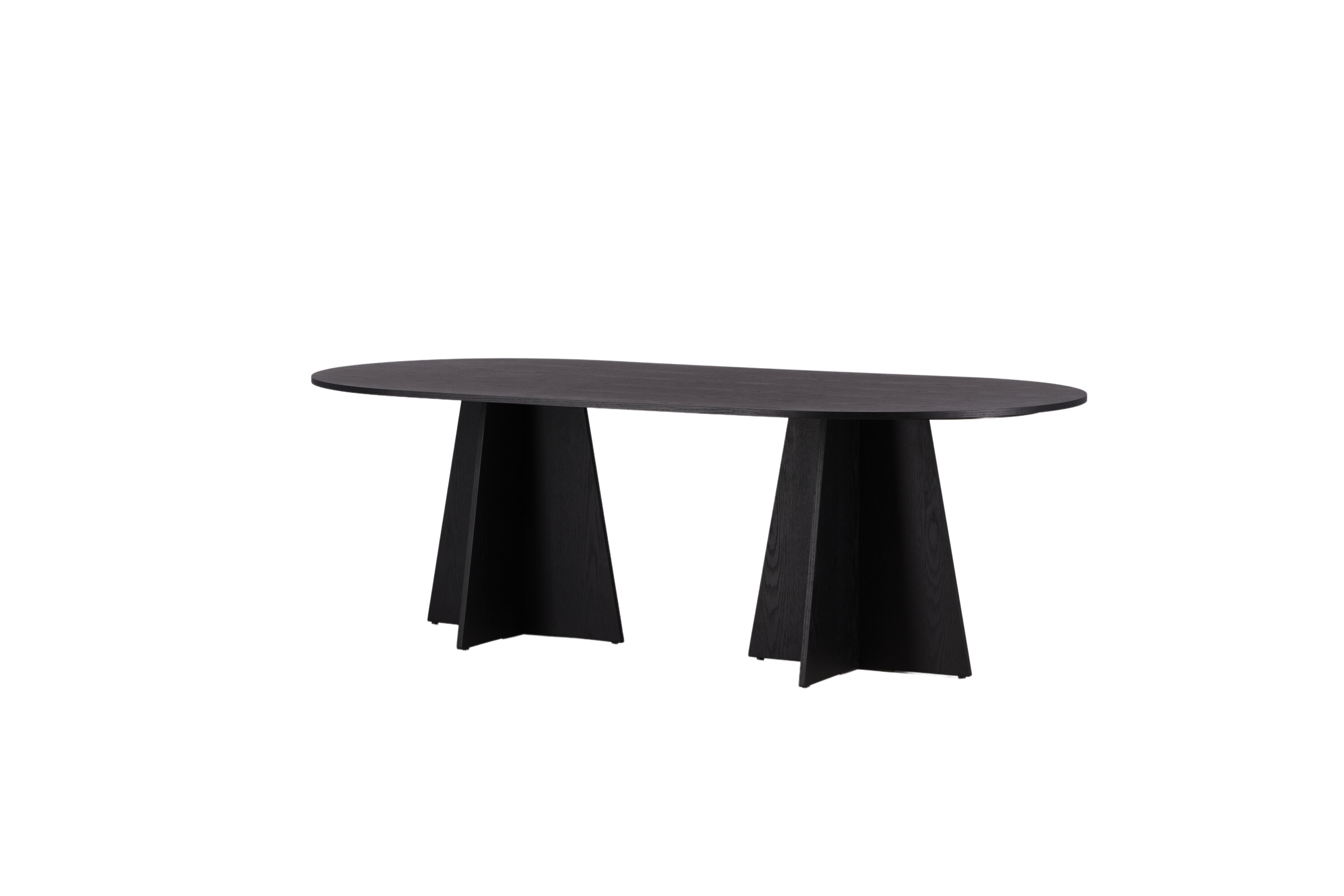 Richt de woning in met een eettafel die indruk maakt! Bootcut heeft een uniek design met een ovaal tafelblad in zwart MDF met fineer en een eigenaardig frame met twee kegelvormige poten in open design. Het dunne tafelblad zorgt voor een minimalistische indruk en vormt een smaakvol contrast met het robuustere frame. Combineer met een paar comfortabele eetkamerstoelen en je krijgt een complete voedselgroep die na verloop van tijd blijft staan!