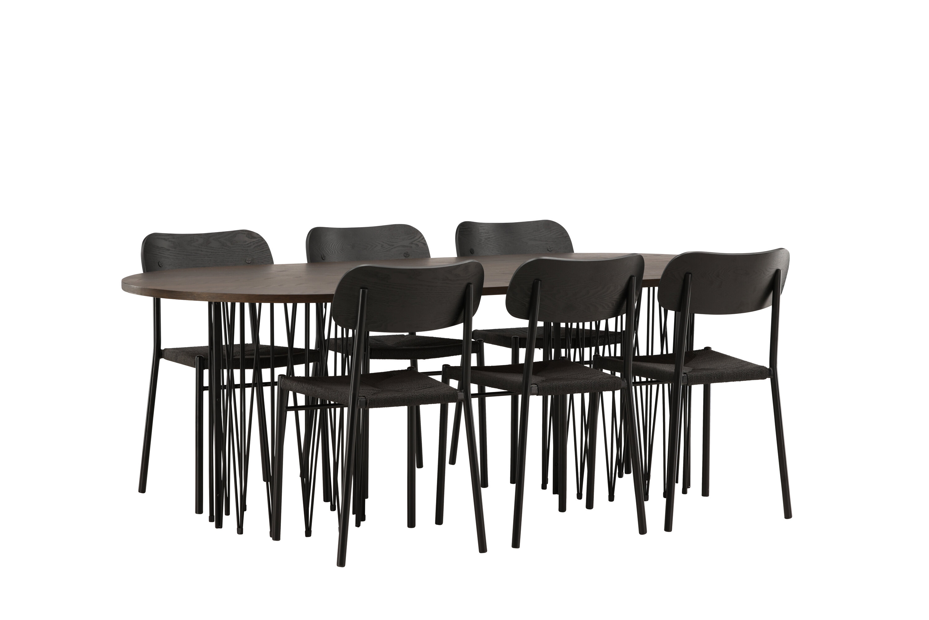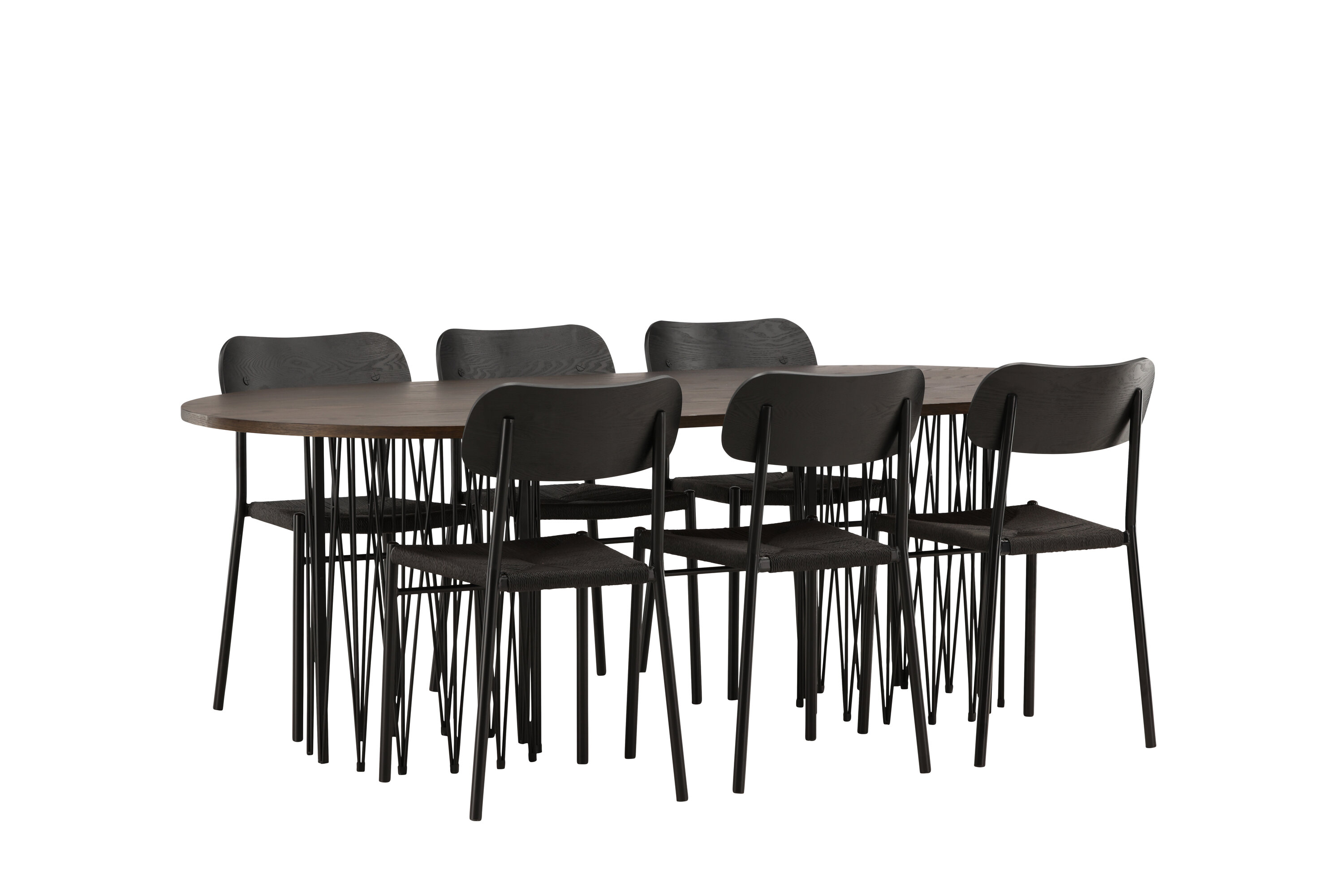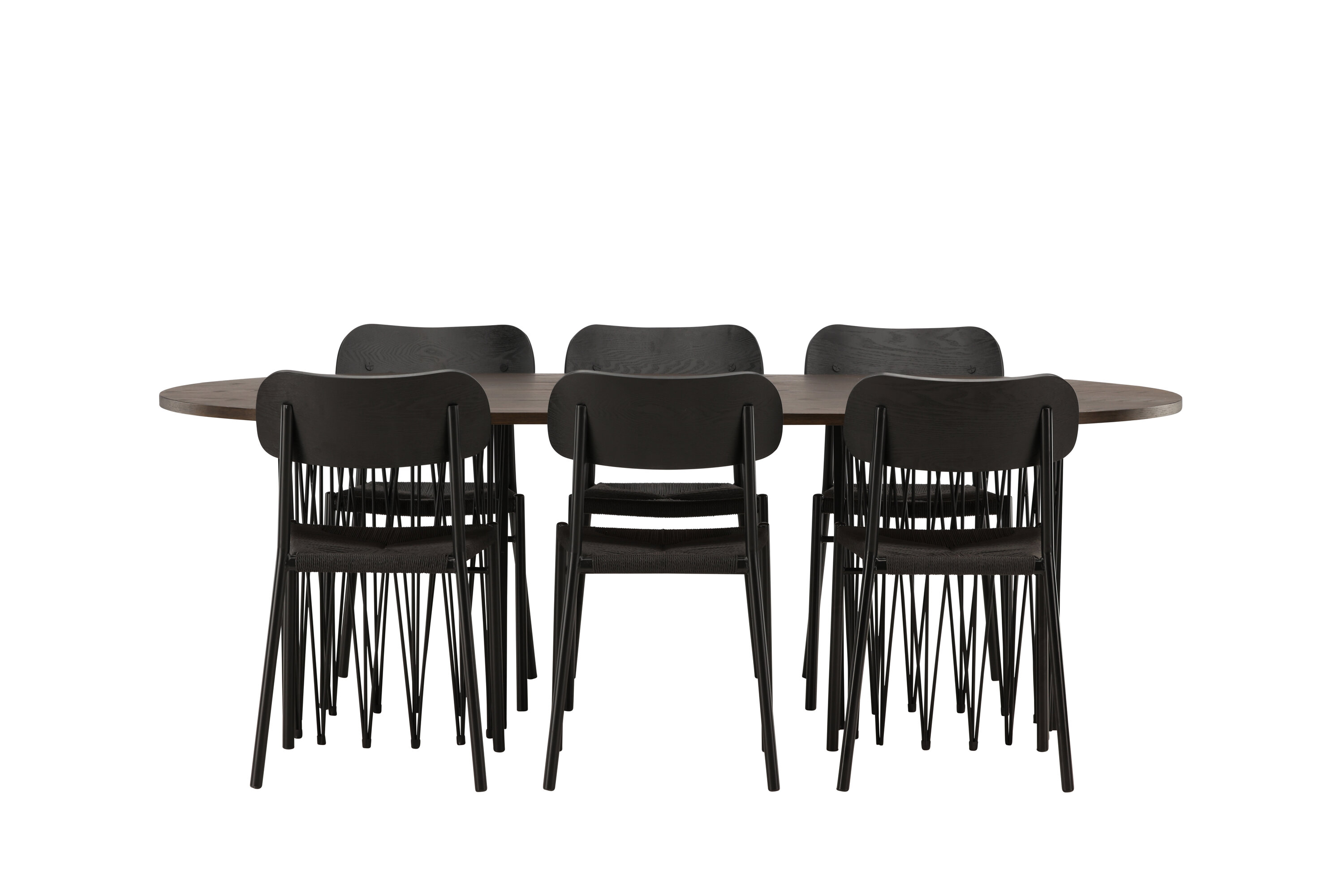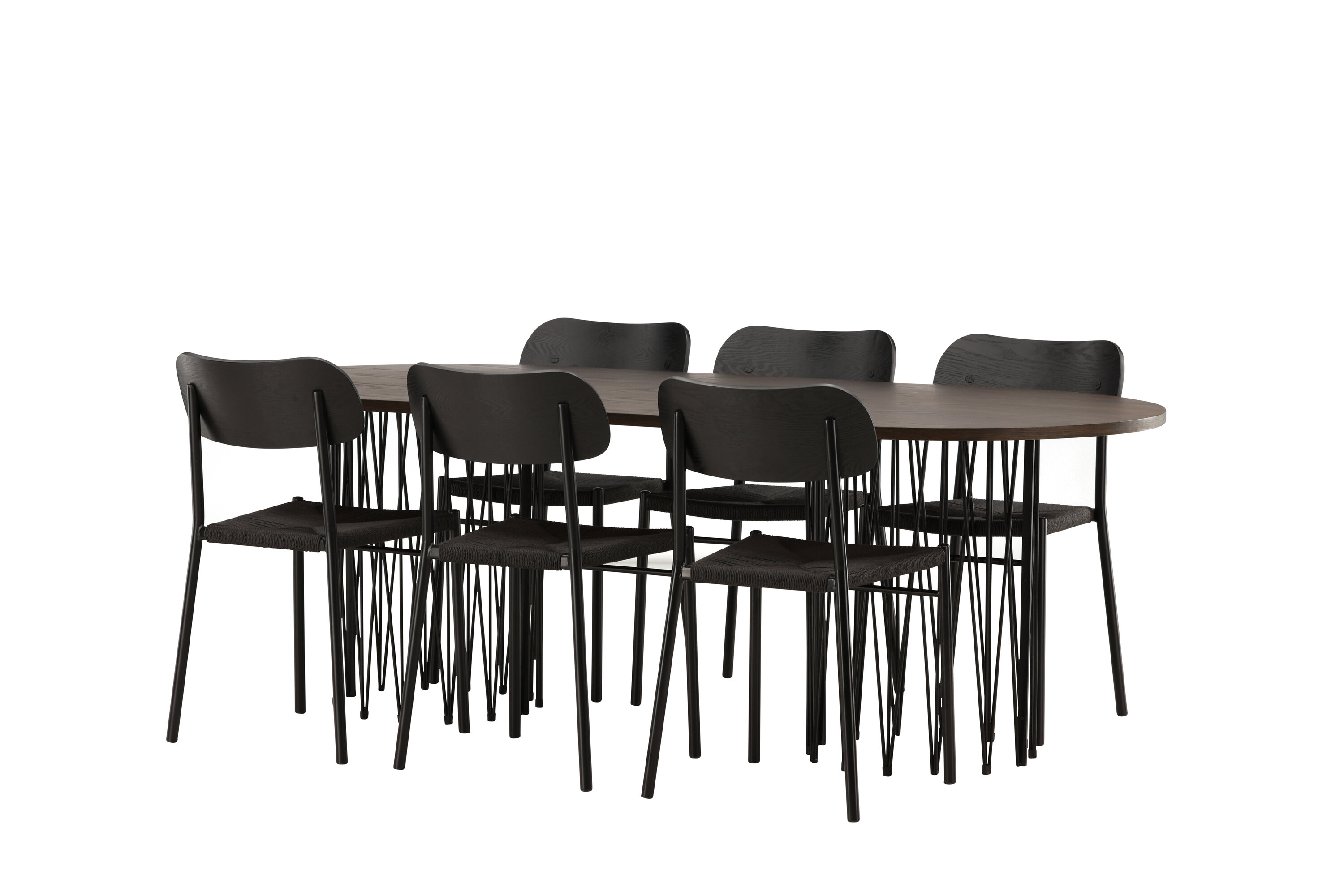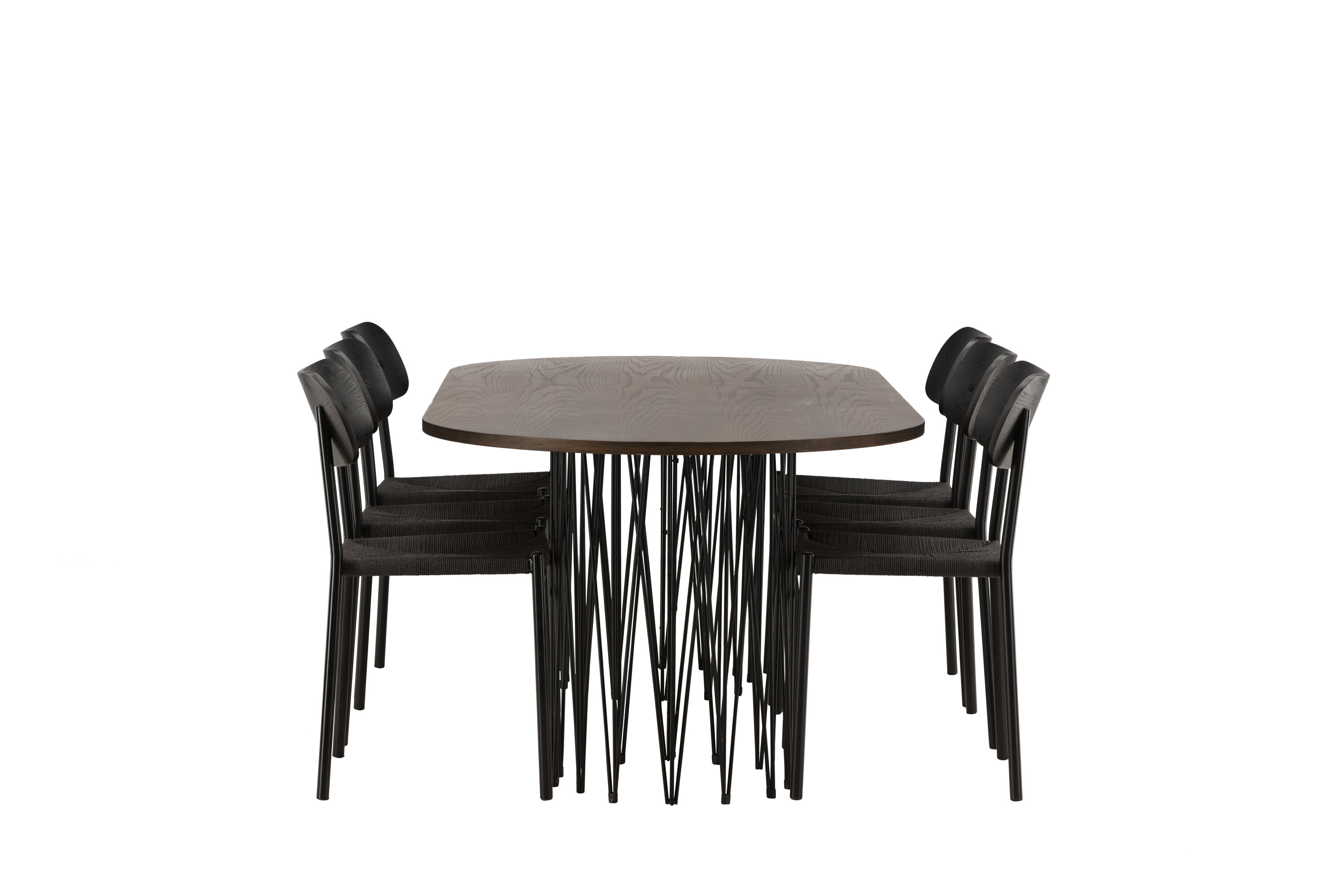 Modern, stijlvol en duurzaam - de Stone eettafel maakt indruk met zijn modebewuste ontwerp. Het behoort tot de Furniture Fashion collectie en heeft een prachtig bruin gekleurd tafelblad in MDF met fineer en twee decoratieve cilindervormige lijsten in zwart metaal. Hier in perfecte combinatie met onze populaire eetkamerstoelen Polly. De rugleuning van de stoel is in zwart MDF met fineer, de zitting in trendy zwarte natuurvezel stof en de poten zijn in zwart gepoedercoat metaal. Zit comfortabel en trendbestendig in de toekomst!