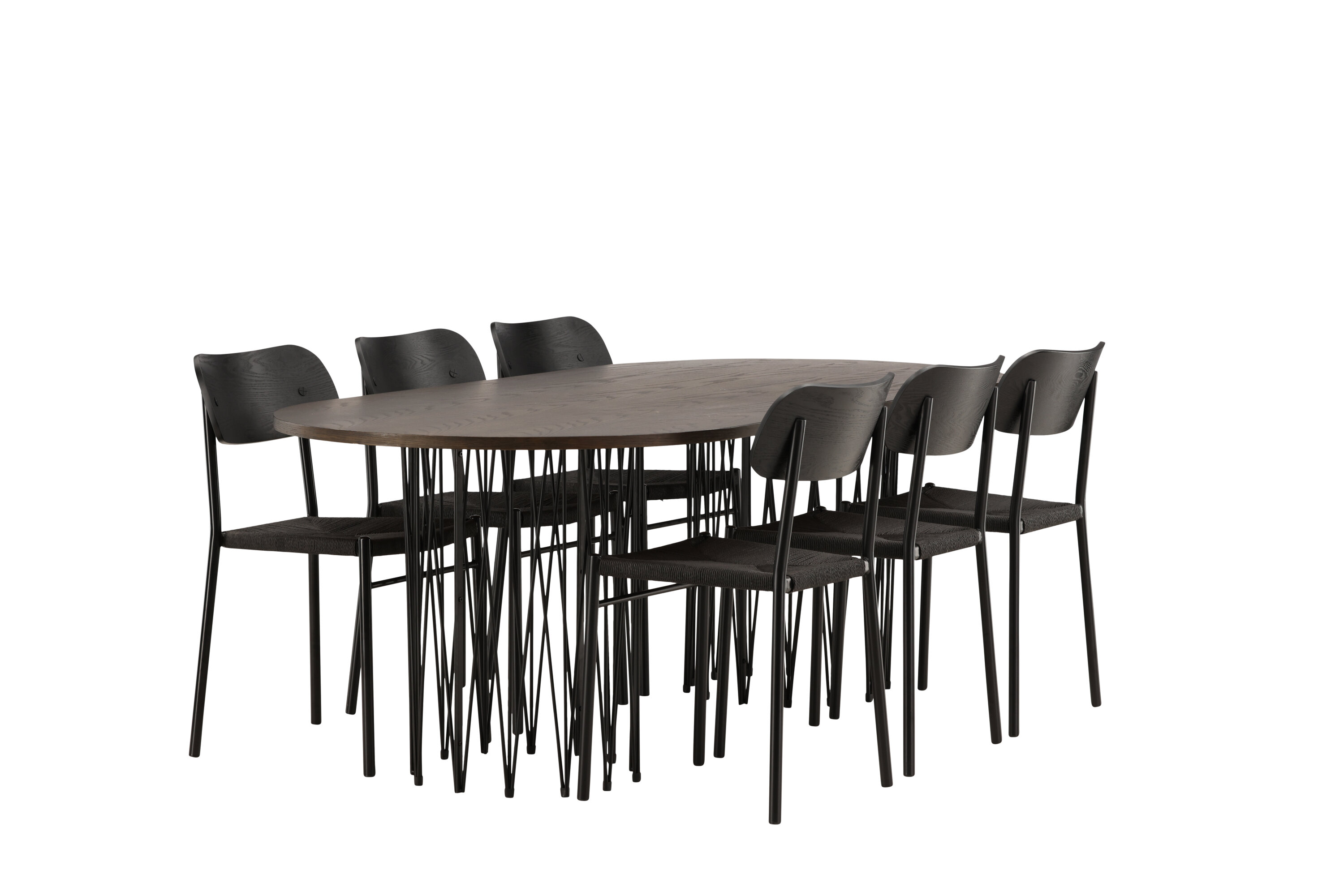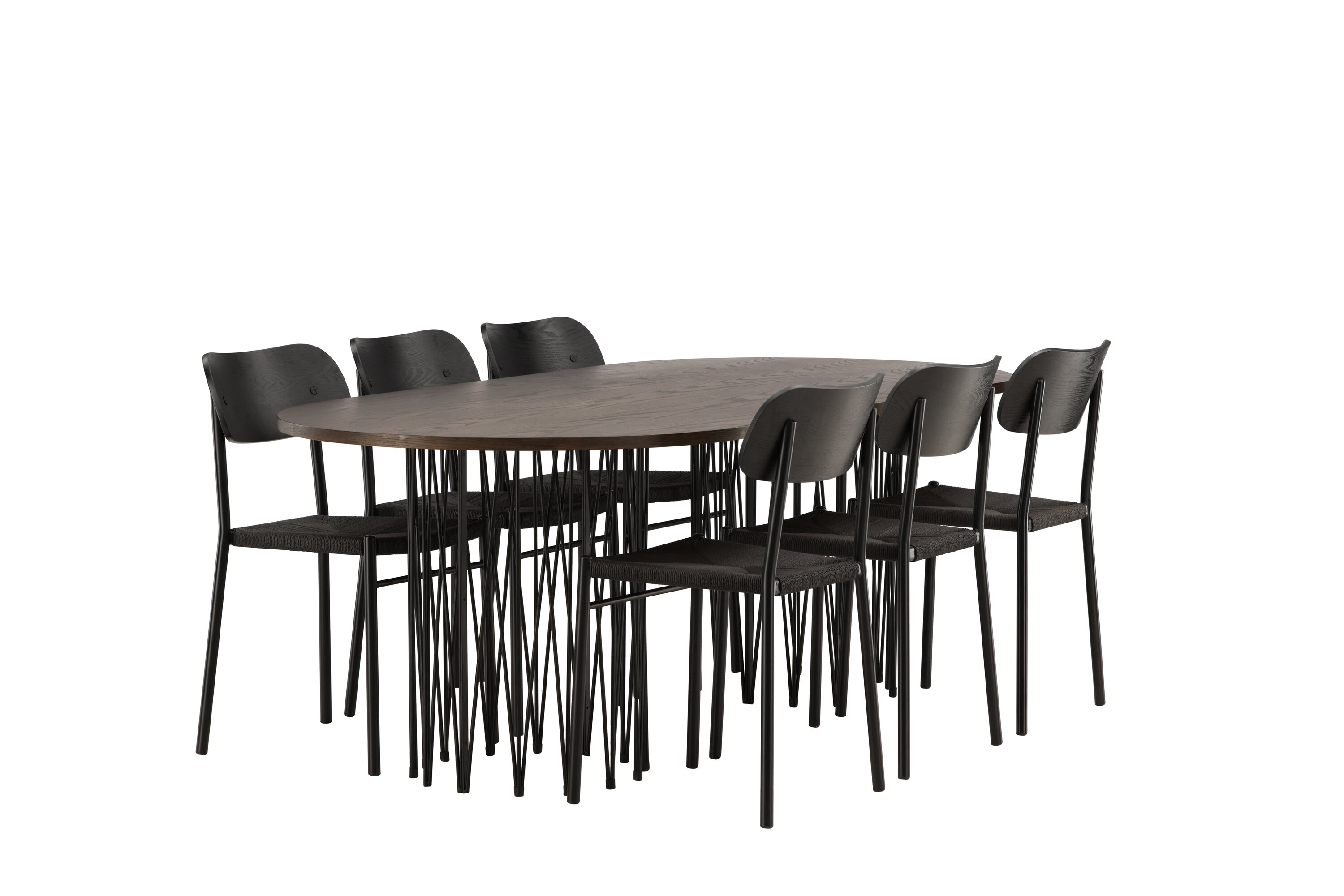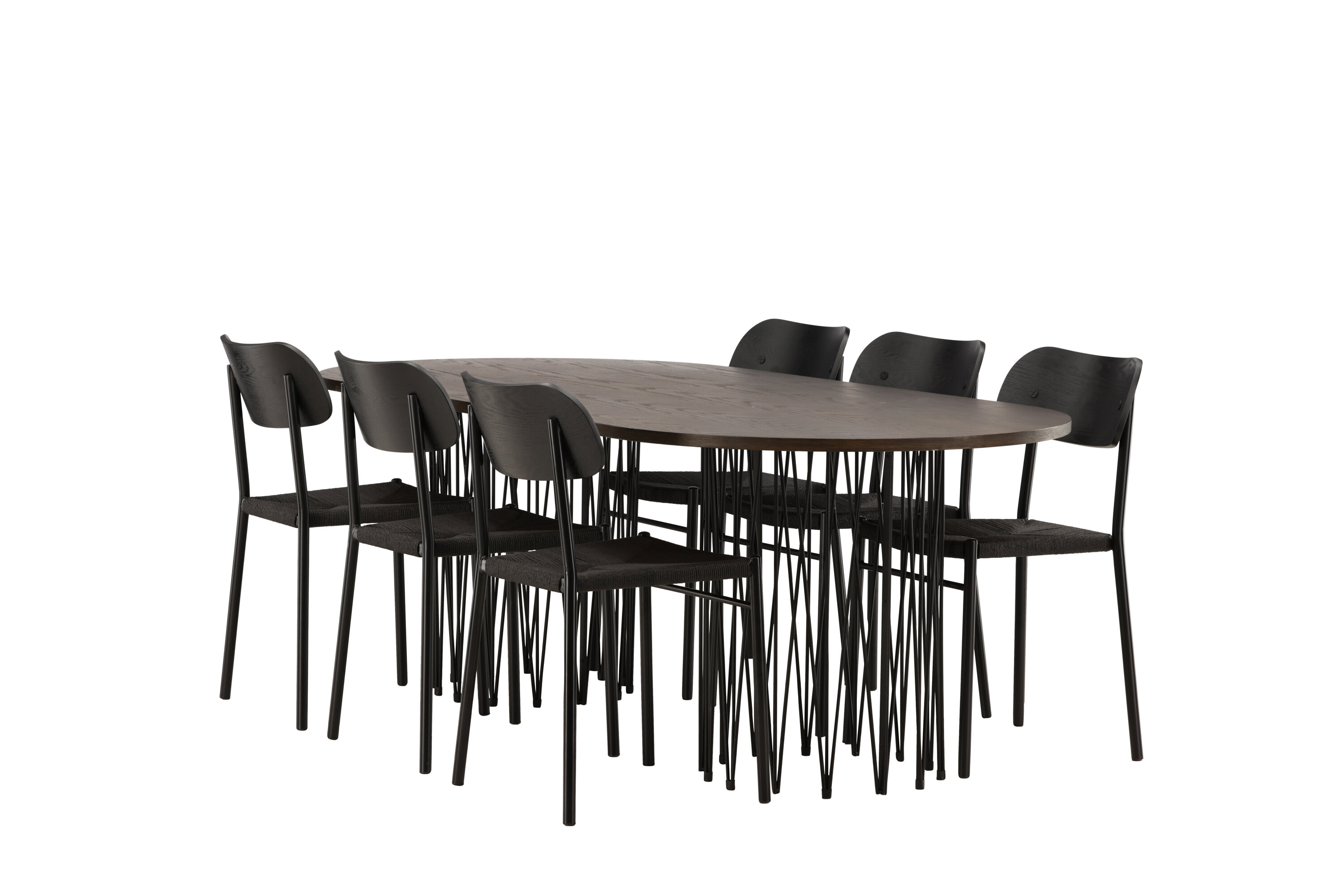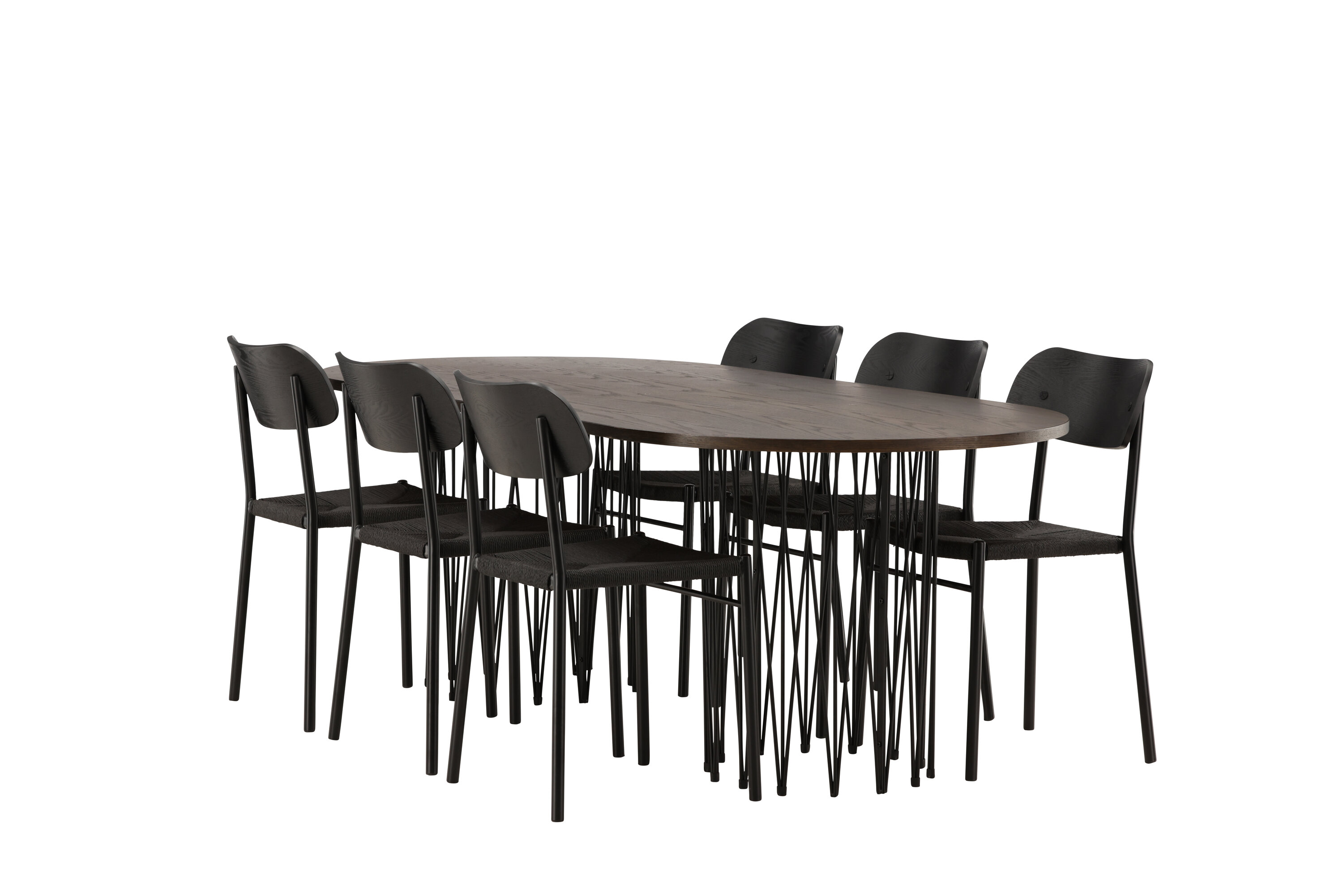 Modern, stijlvol en duurzaam - de Stone eettafel maakt indruk met zijn modebewuste ontwerp. Het behoort tot de Furniture Fashion collectie en heeft een prachtig bruin gekleurd tafelblad in MDF met fineer en twee decoratieve cilindervormige lijsten in zwart metaal. Hier in perfecte combinatie met onze populaire eetkamerstoelen Polly. De rugleuning van de stoel is in zwart MDF met fineer, de zitting in trendy zwarte natuurvezel stof en de poten zijn in zwart gepoedercoat metaal. Zit comfortabel en trendbestendig in de toekomst!