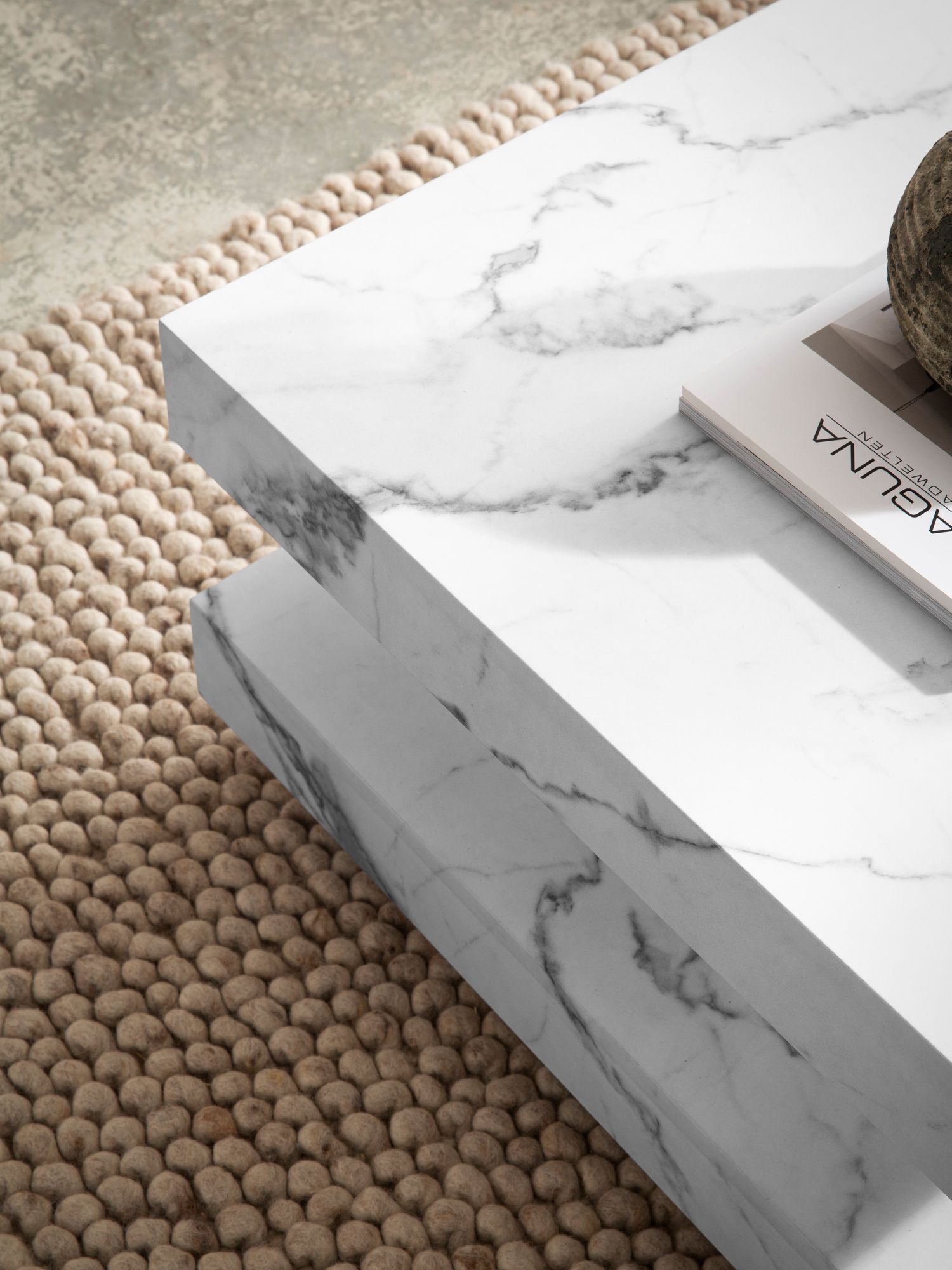 - Kleur: matte witte marmerlook