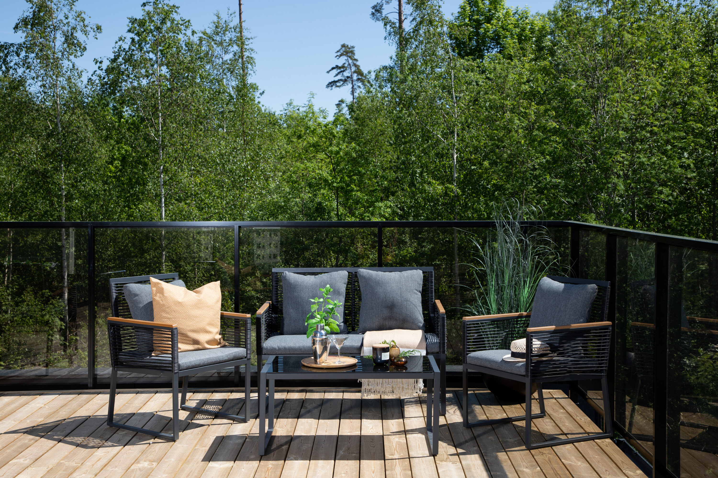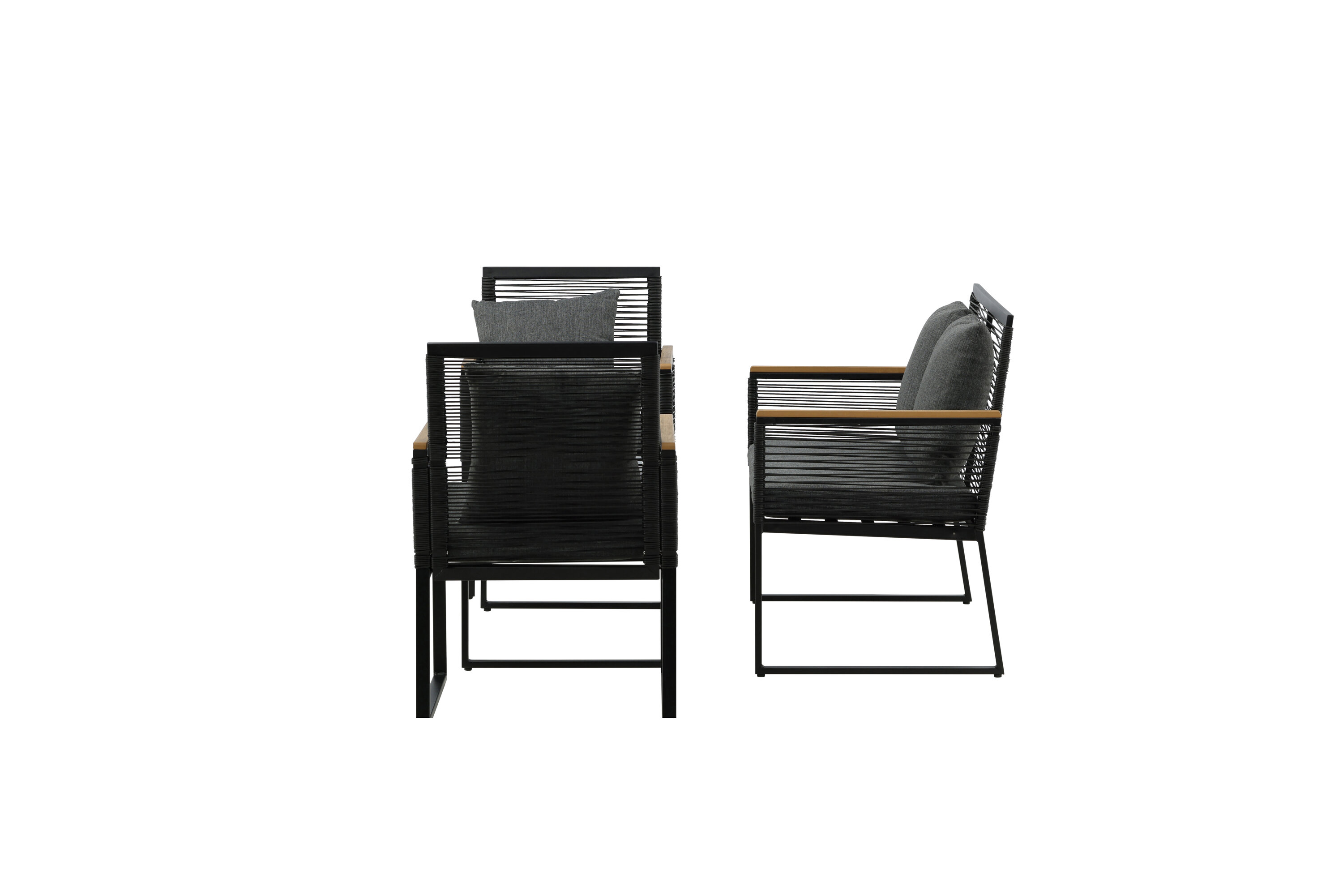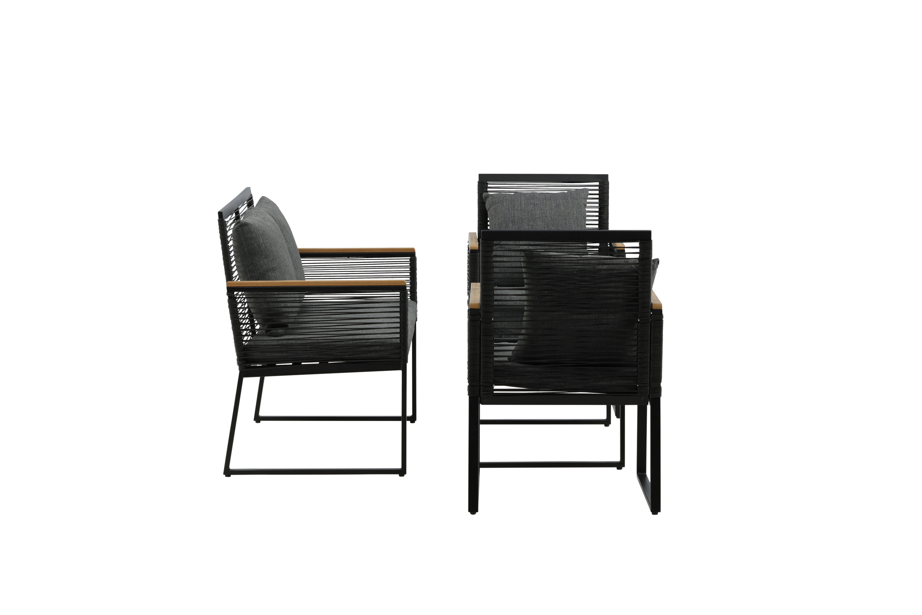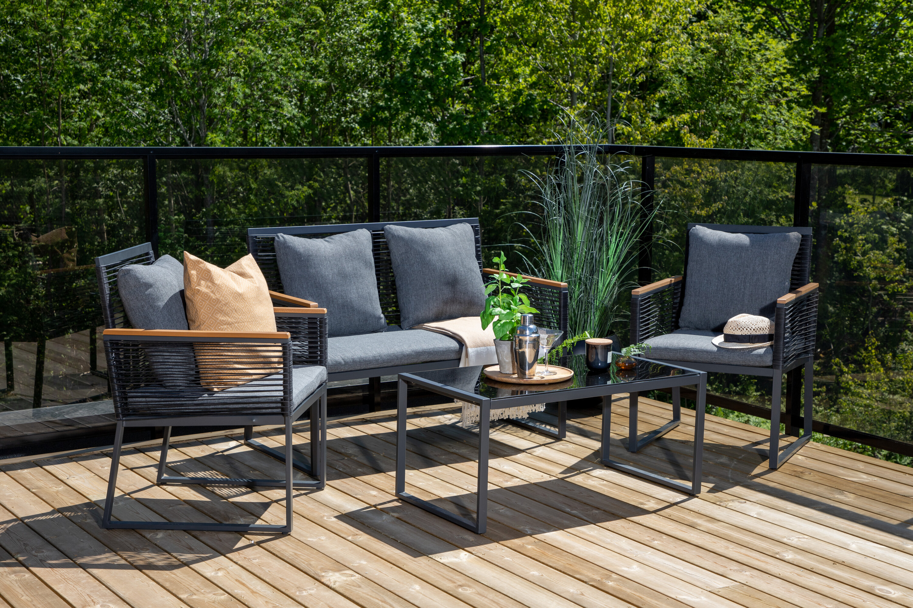 Welkom thuis bij een ontspannende en in het oog springende bankgroep in trendy design! Dalla's bankgroep is een mooie en stijlvolle groep in zwart aluminium met bijbehorende tafel met een glazen bovenplaat. Duurzame kussens in grijs zijn inbegrepen en de groep biedt plaats aan in totaal 4 zittende gasten. Tafelafmetingen: 90x50x42,5 cm. Afmeting bank: 60x84 cm. Afmetingen Sita: 49/105x51x37 cm.