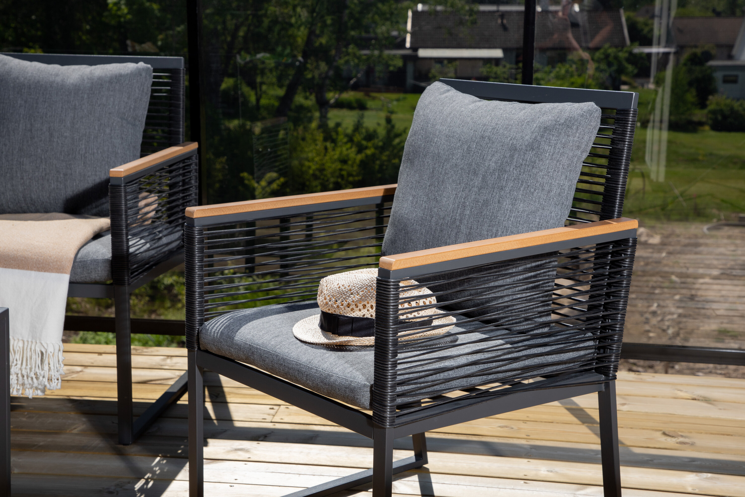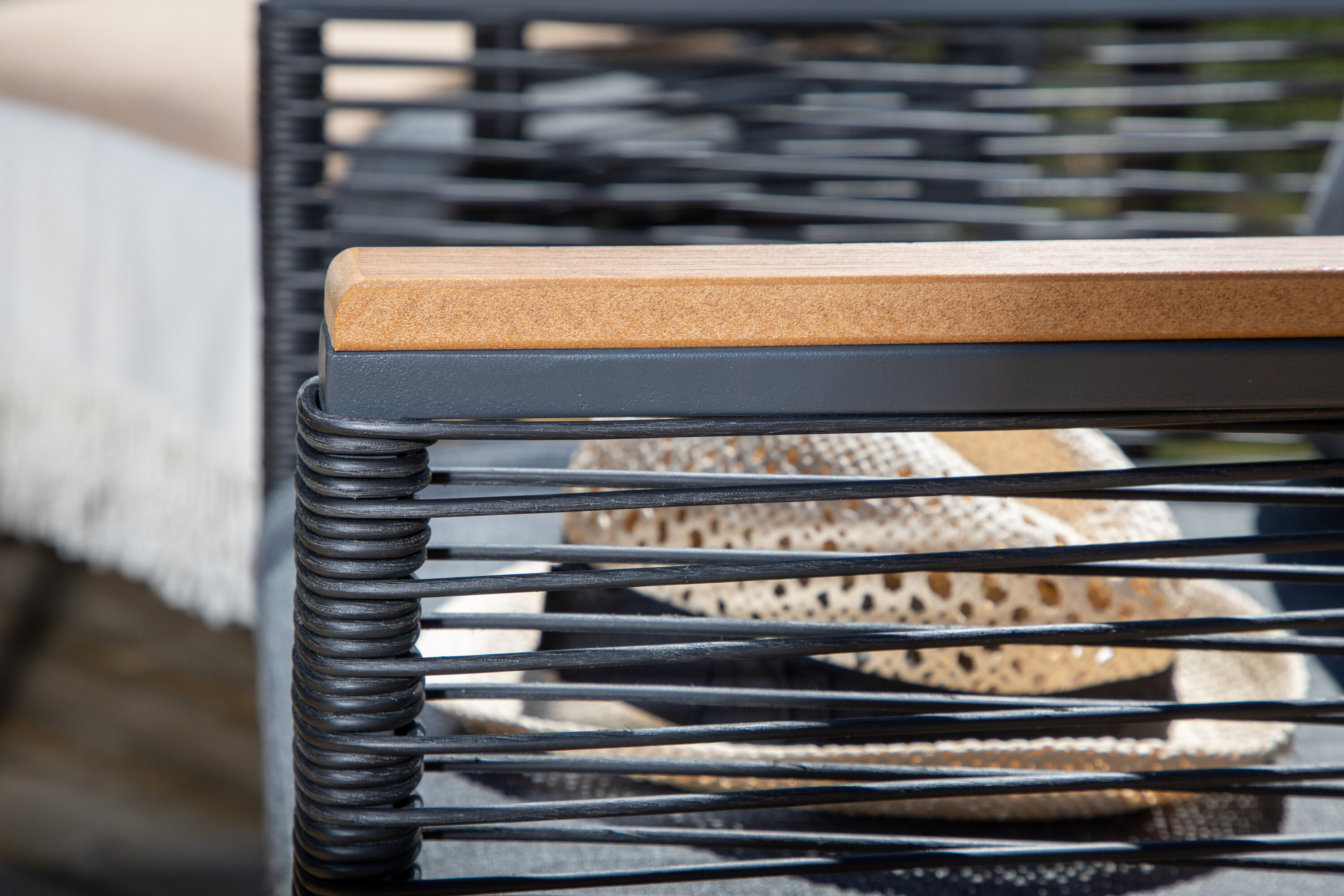 Onze touwen zijn kwaliteit -gesponnen polyester touw dat gemakkelijk te reinigen is. Het meubilair wordt behandeld om 500-2000 uur te passeren. We raden zeep en water aan om schoon te maken. Laat aan de lucht drogen.