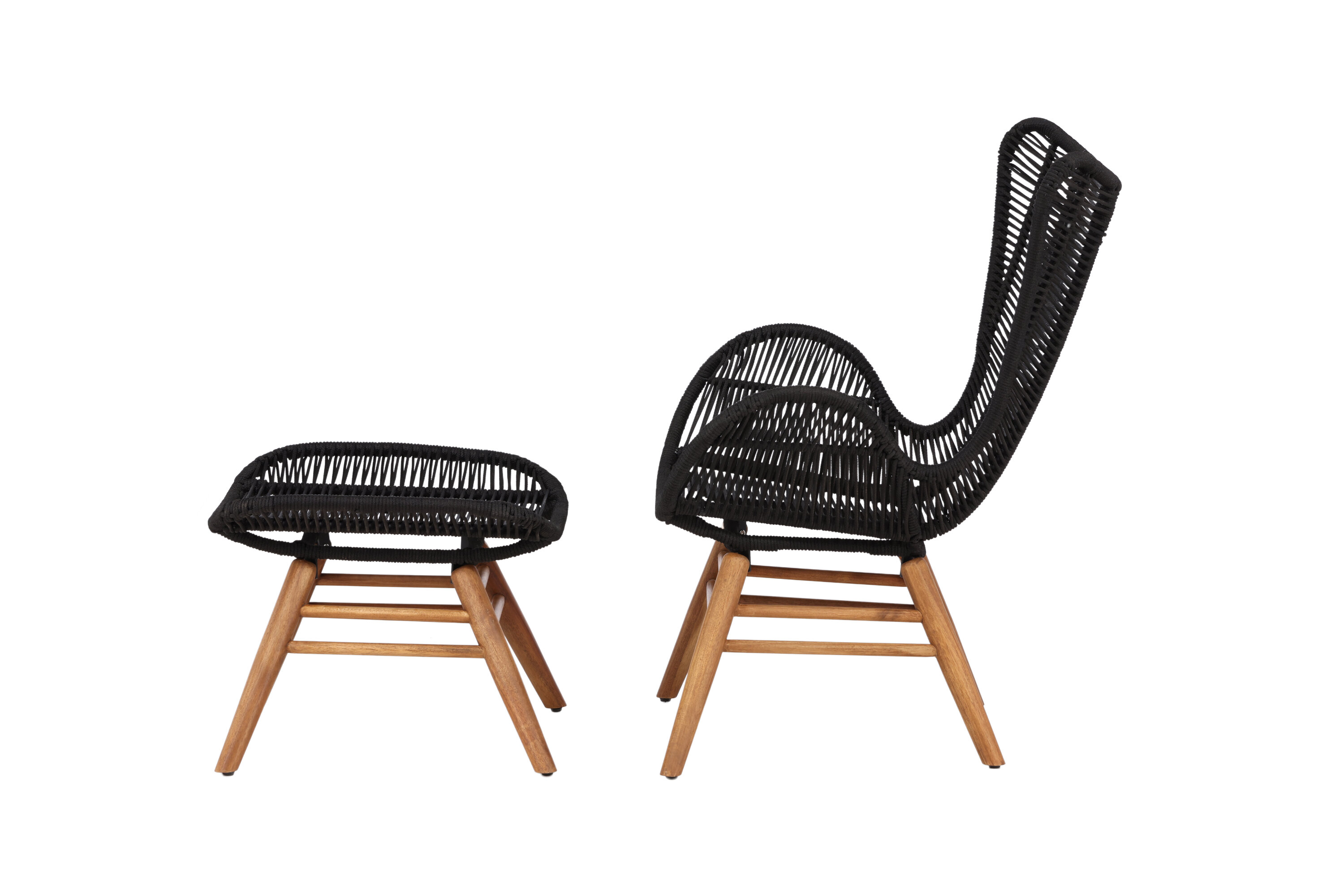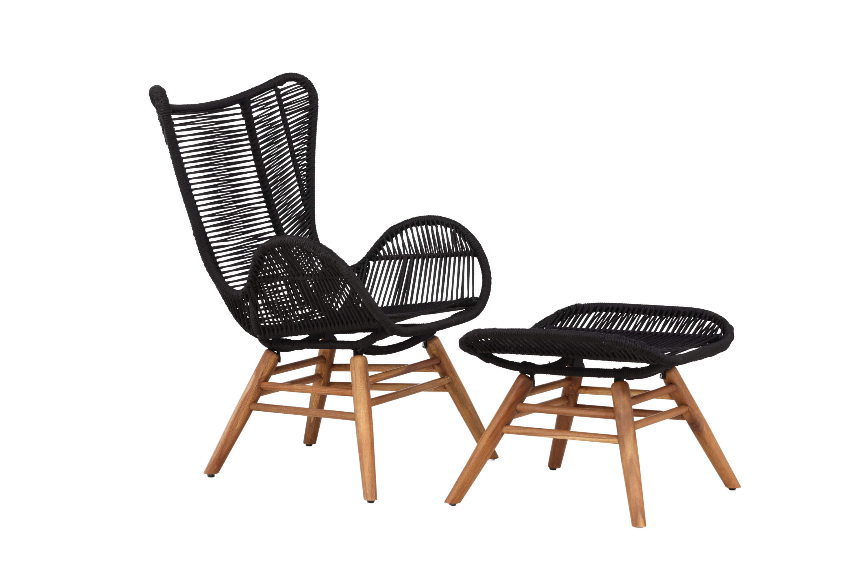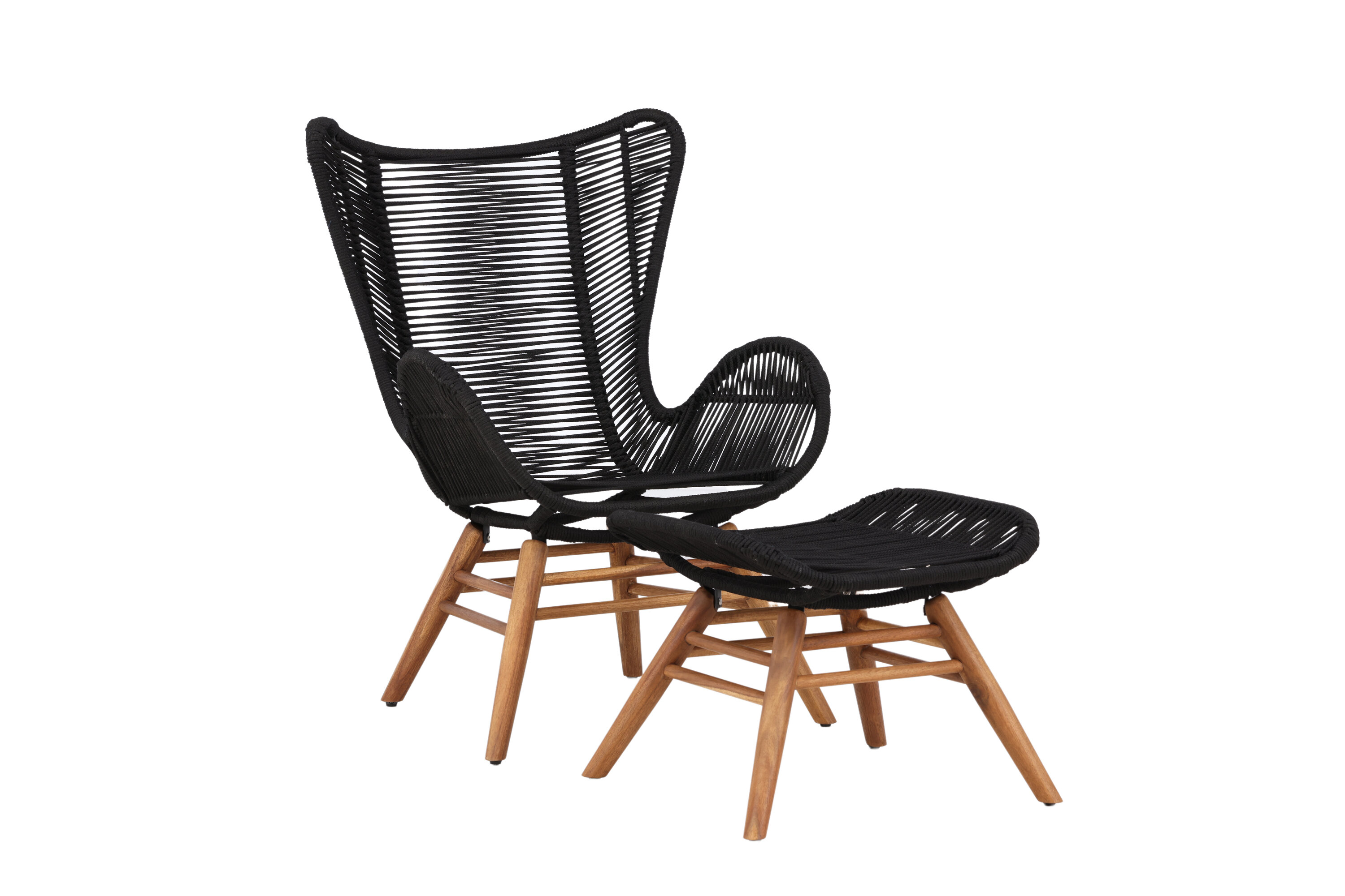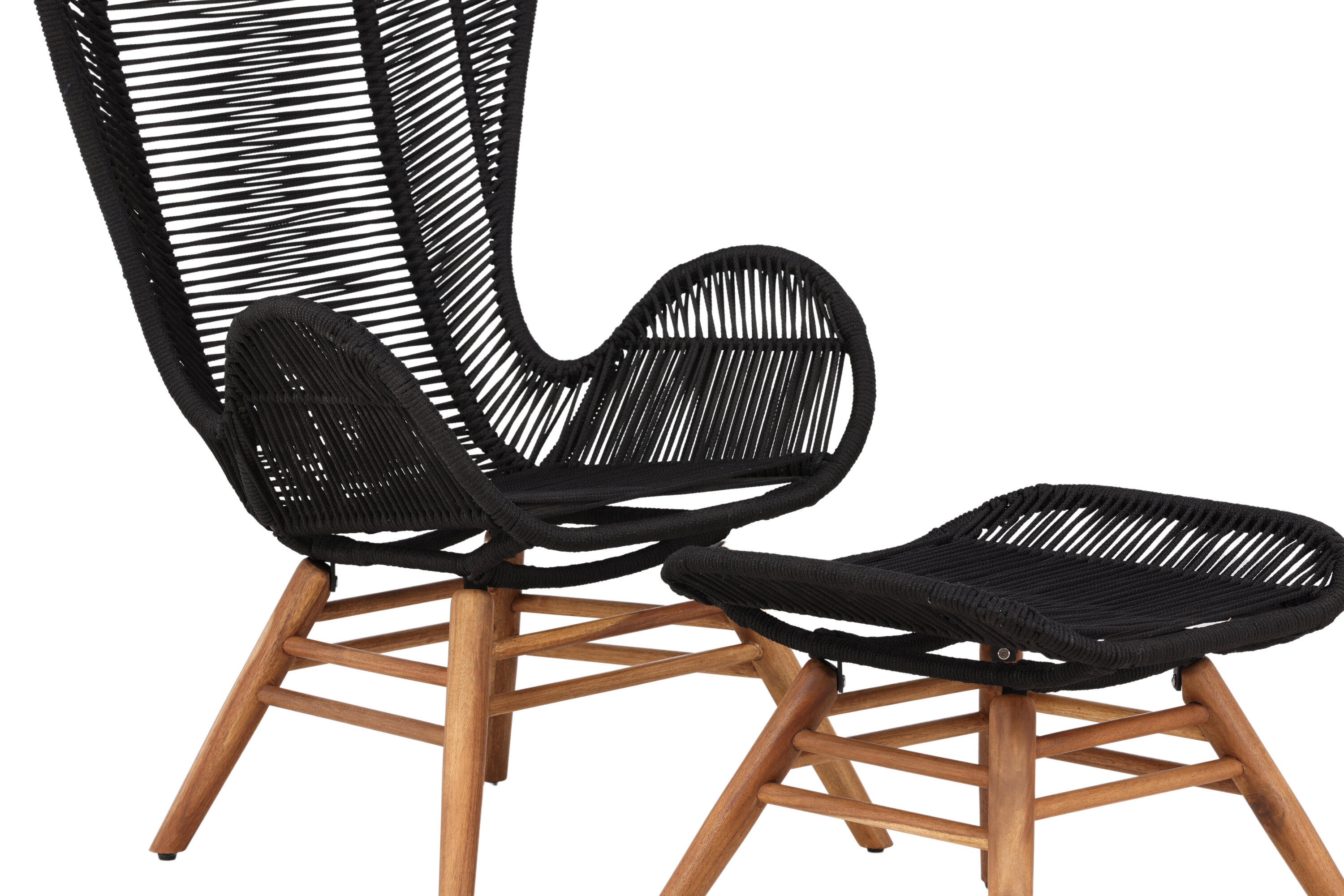 Net zo stijlvol in zijn ontwerp als comfortabel om in te zitten. Tjingeling is een loungestoel met bijbehorende voetenbank die gegarandeerd een moderne blikvanger op het terras is. De poten zijn gemaakt van acaciahout en de zitting van duurzaam geweven touw. Bereid je voor op het zomerse nachtleven!