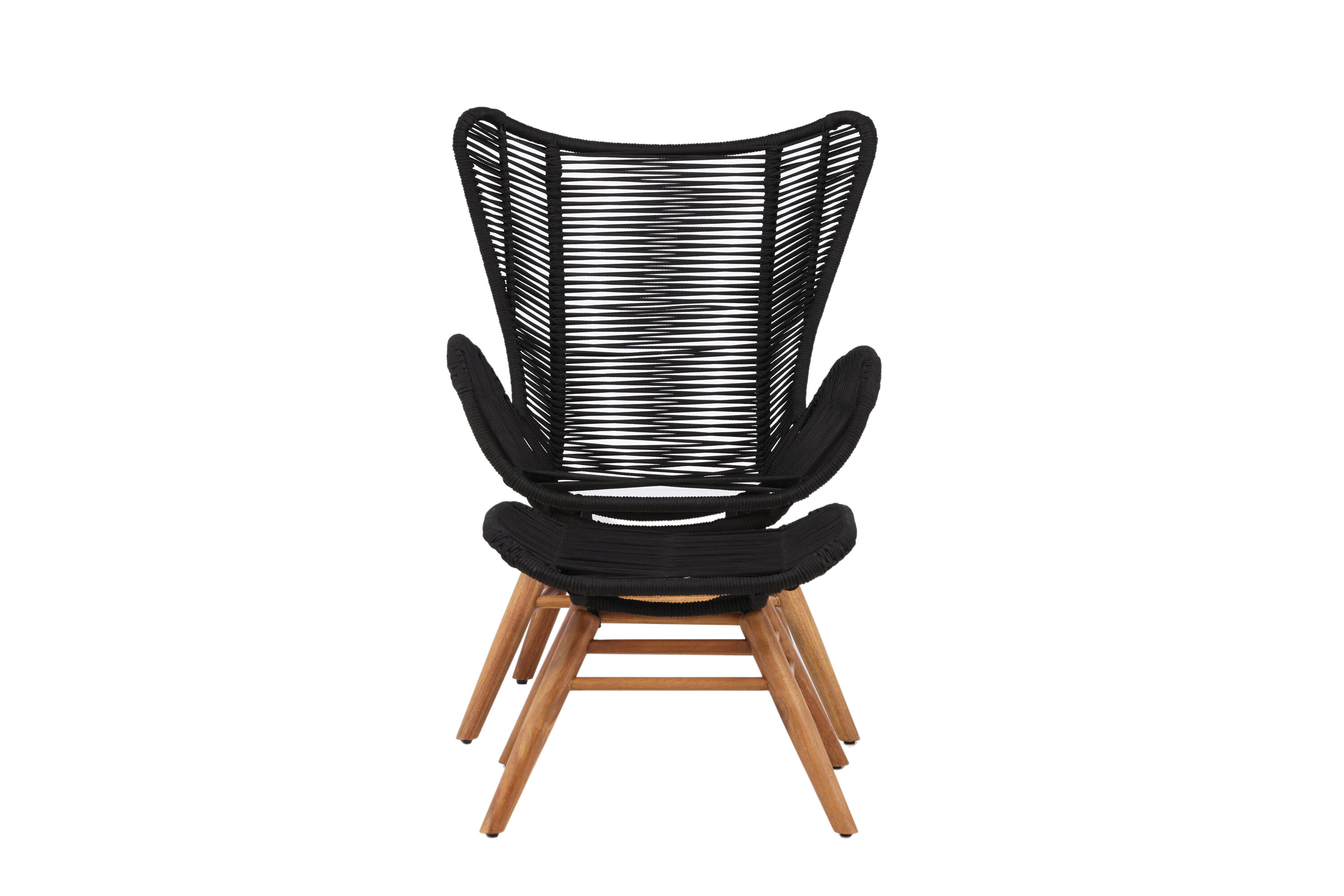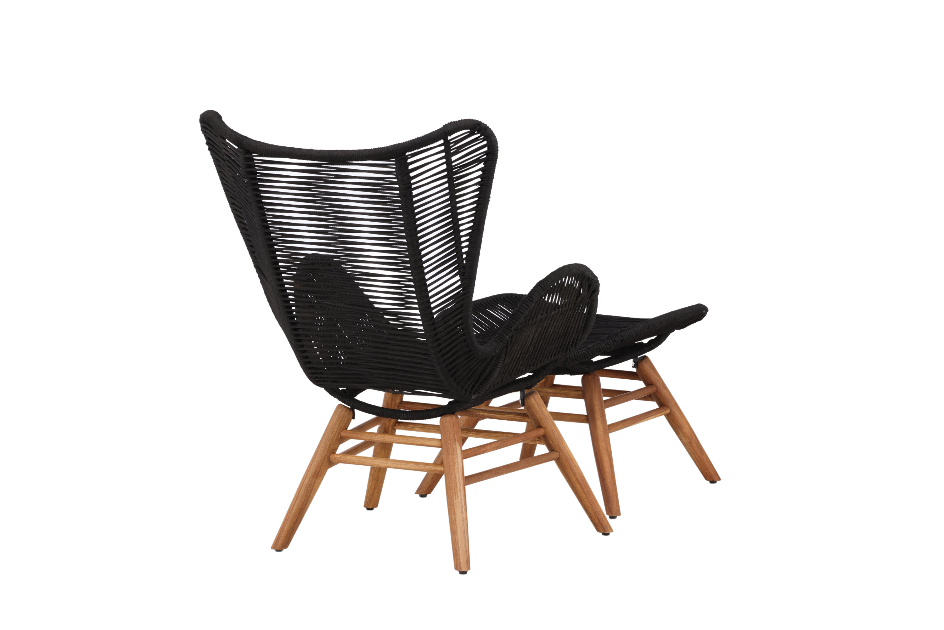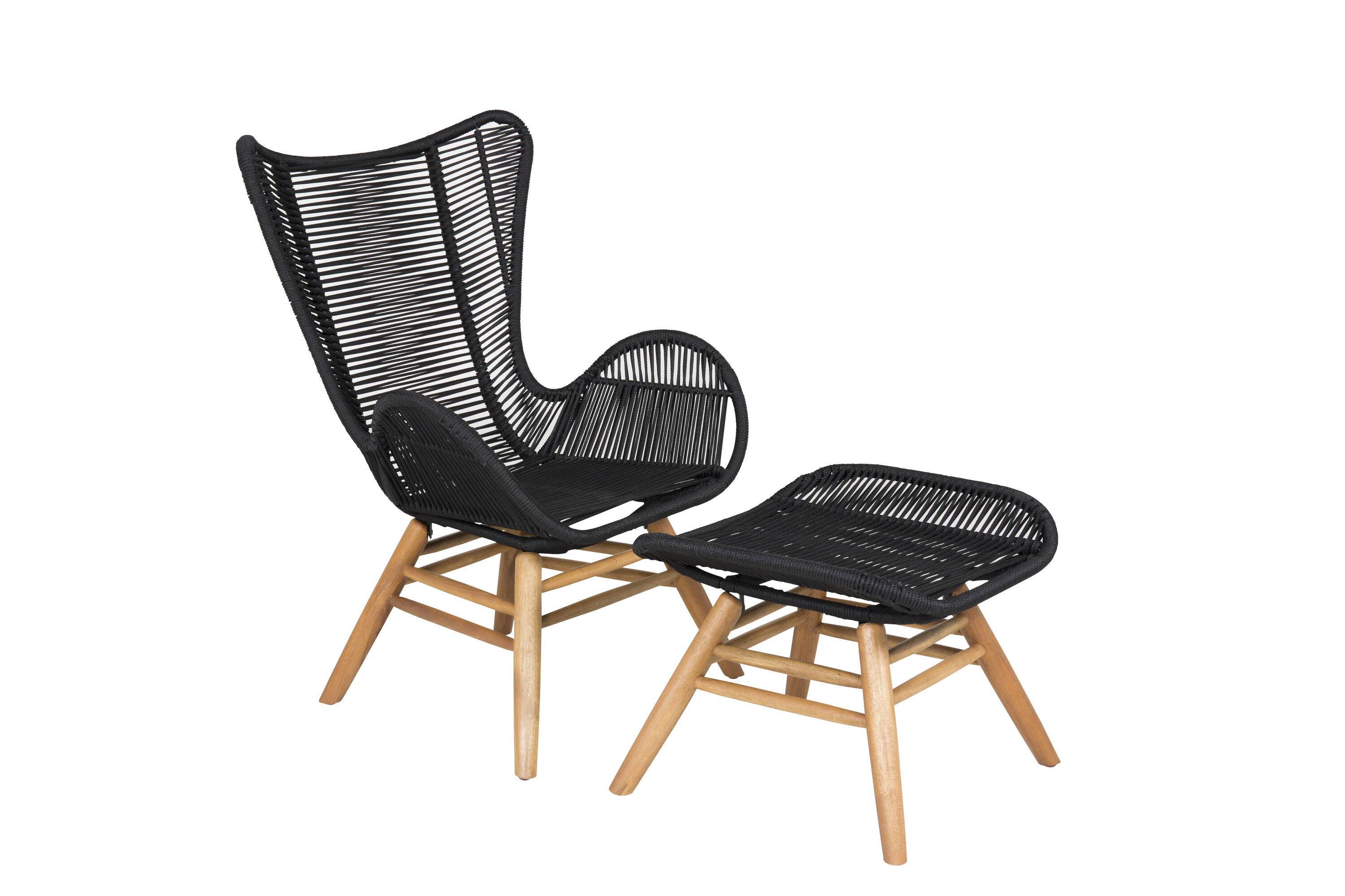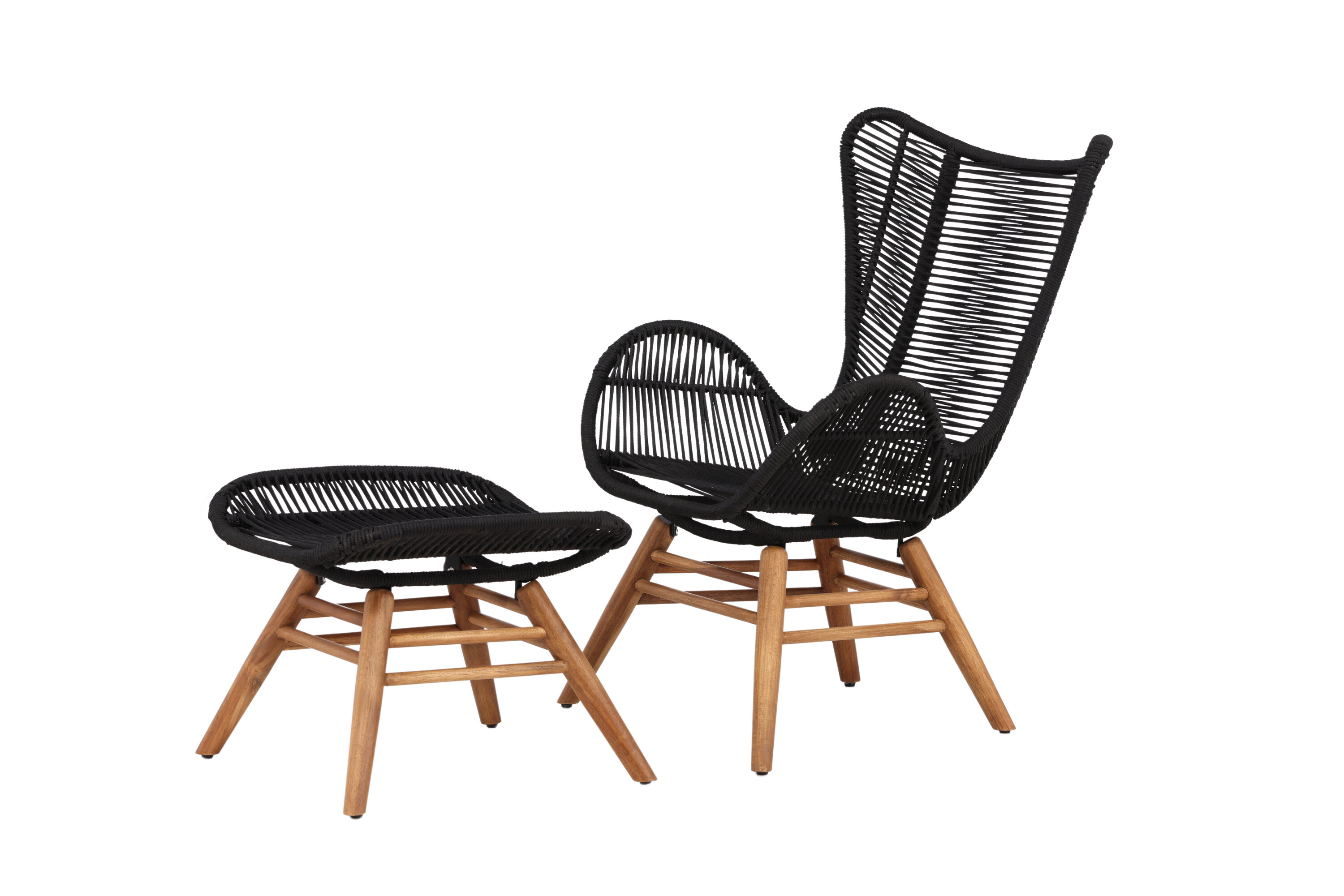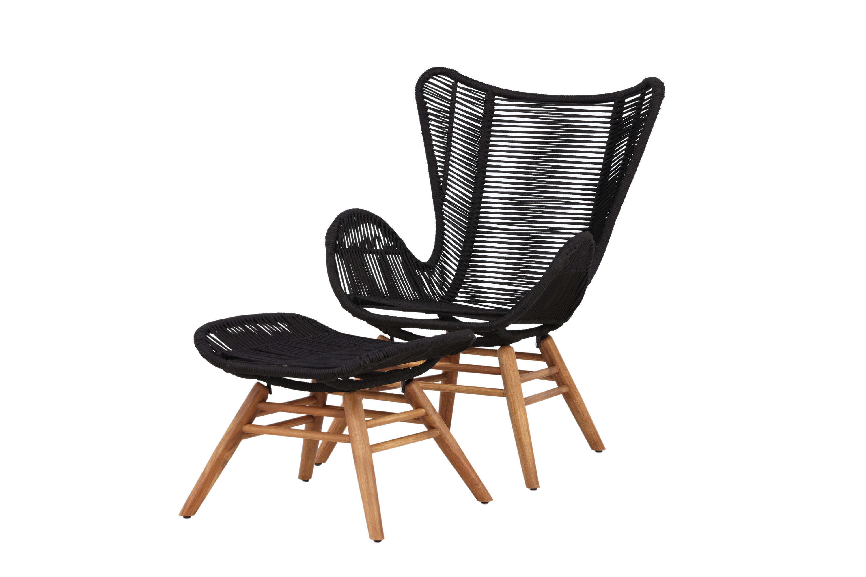 Net zo stijlvol in zijn ontwerp als comfortabel om in te zitten. Tjingeling is een loungestoel met bijbehorende voetenbank die gegarandeerd een moderne blikvanger op het terras is. De poten zijn gemaakt van acaciahout en de zitting van duurzaam geweven touw. Bereid je voor op het zomerse nachtleven!