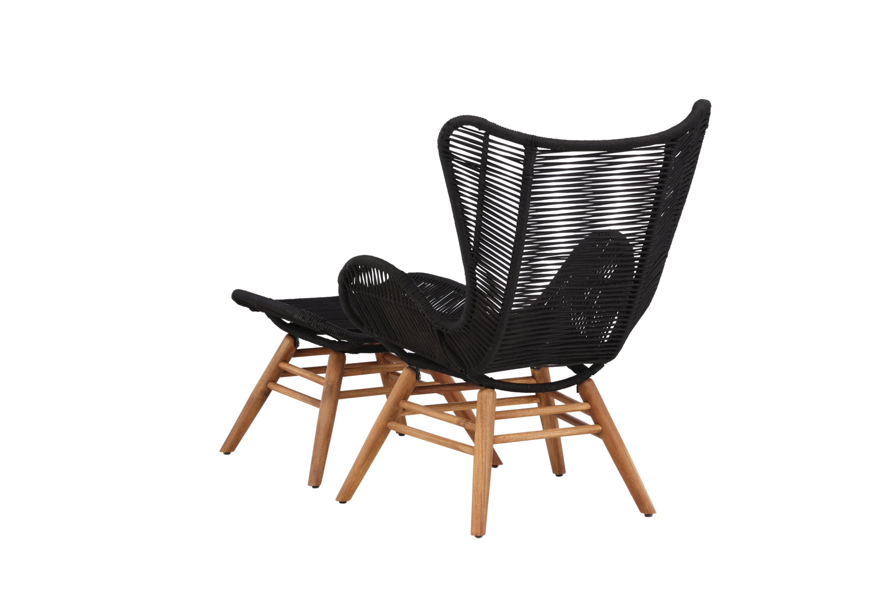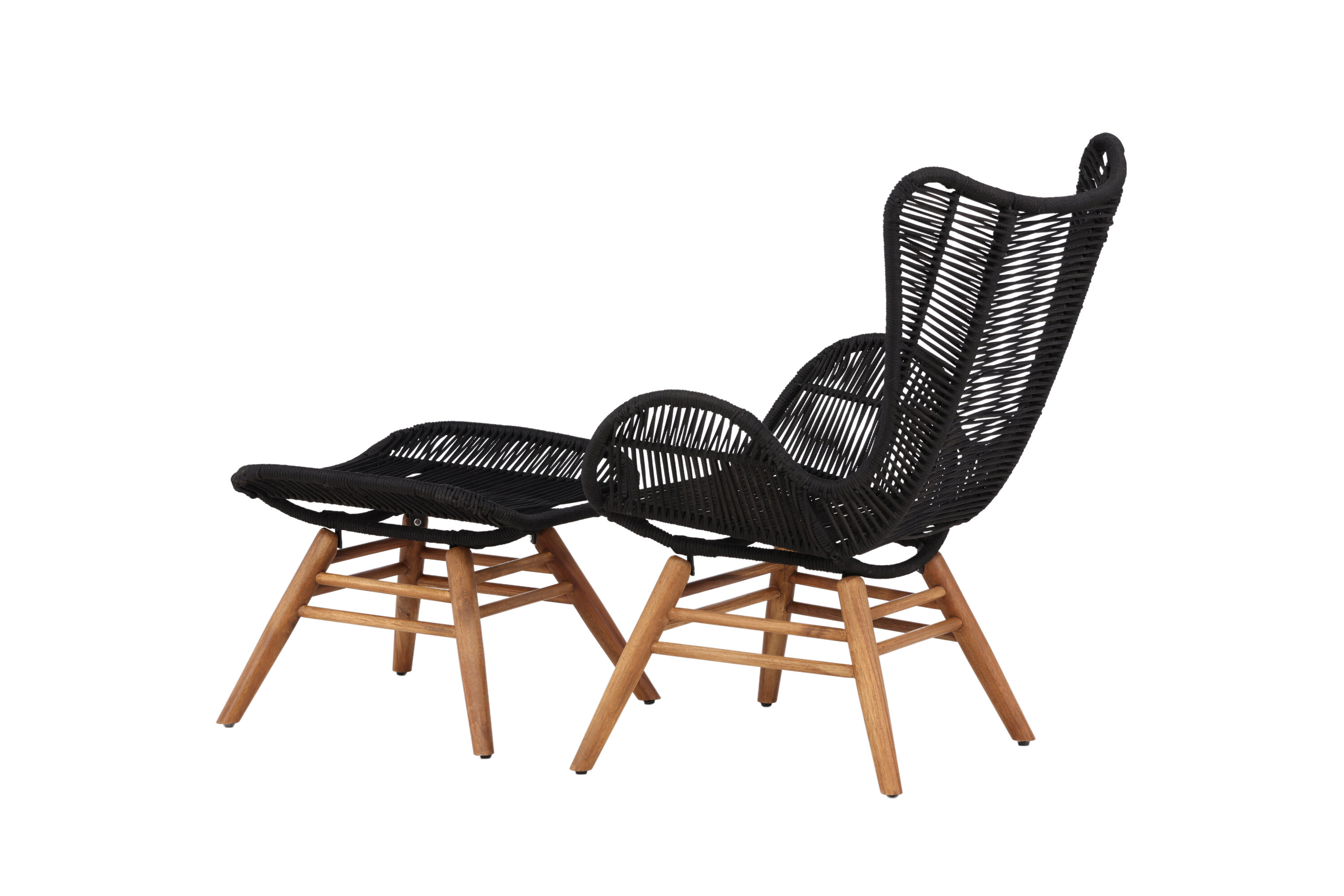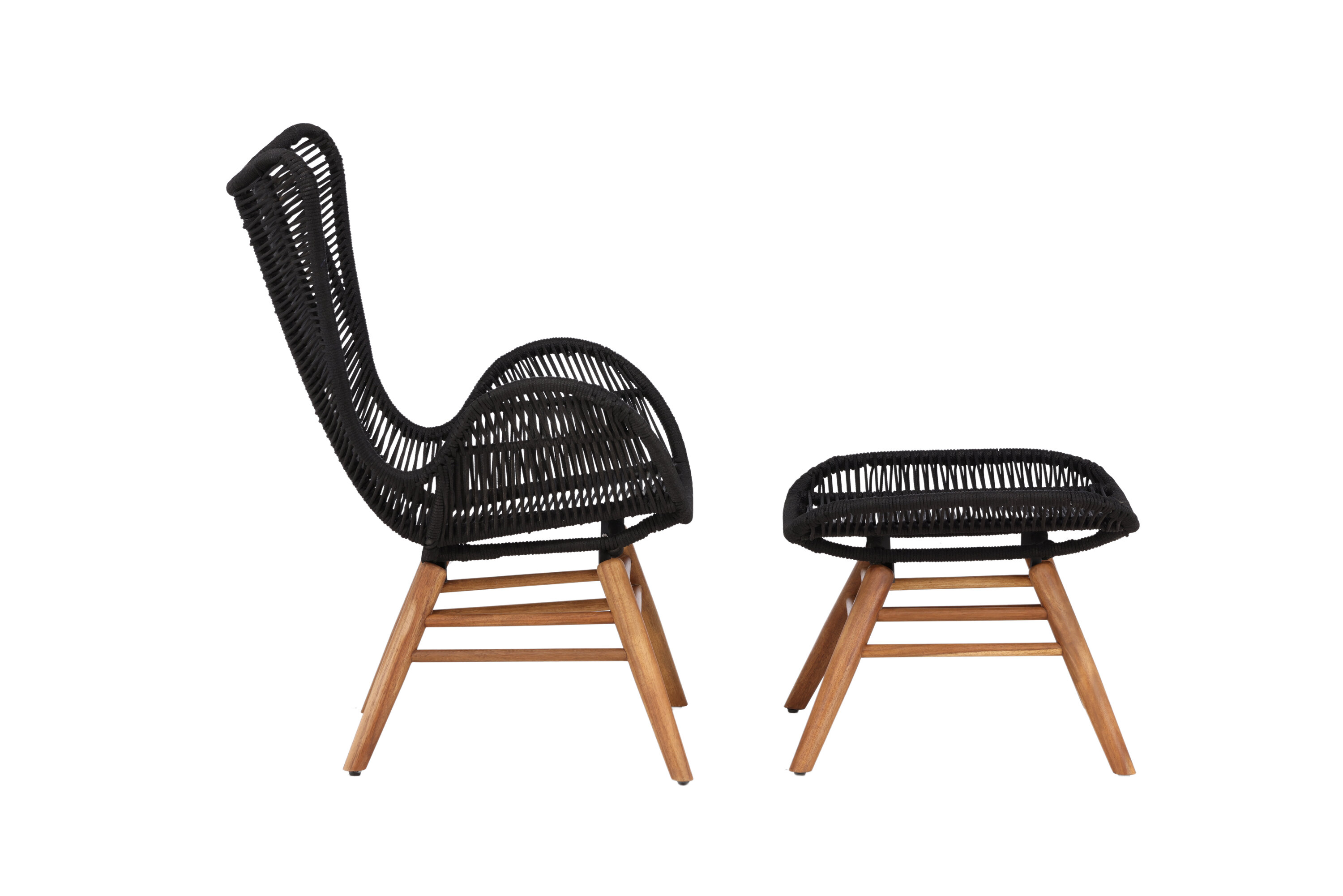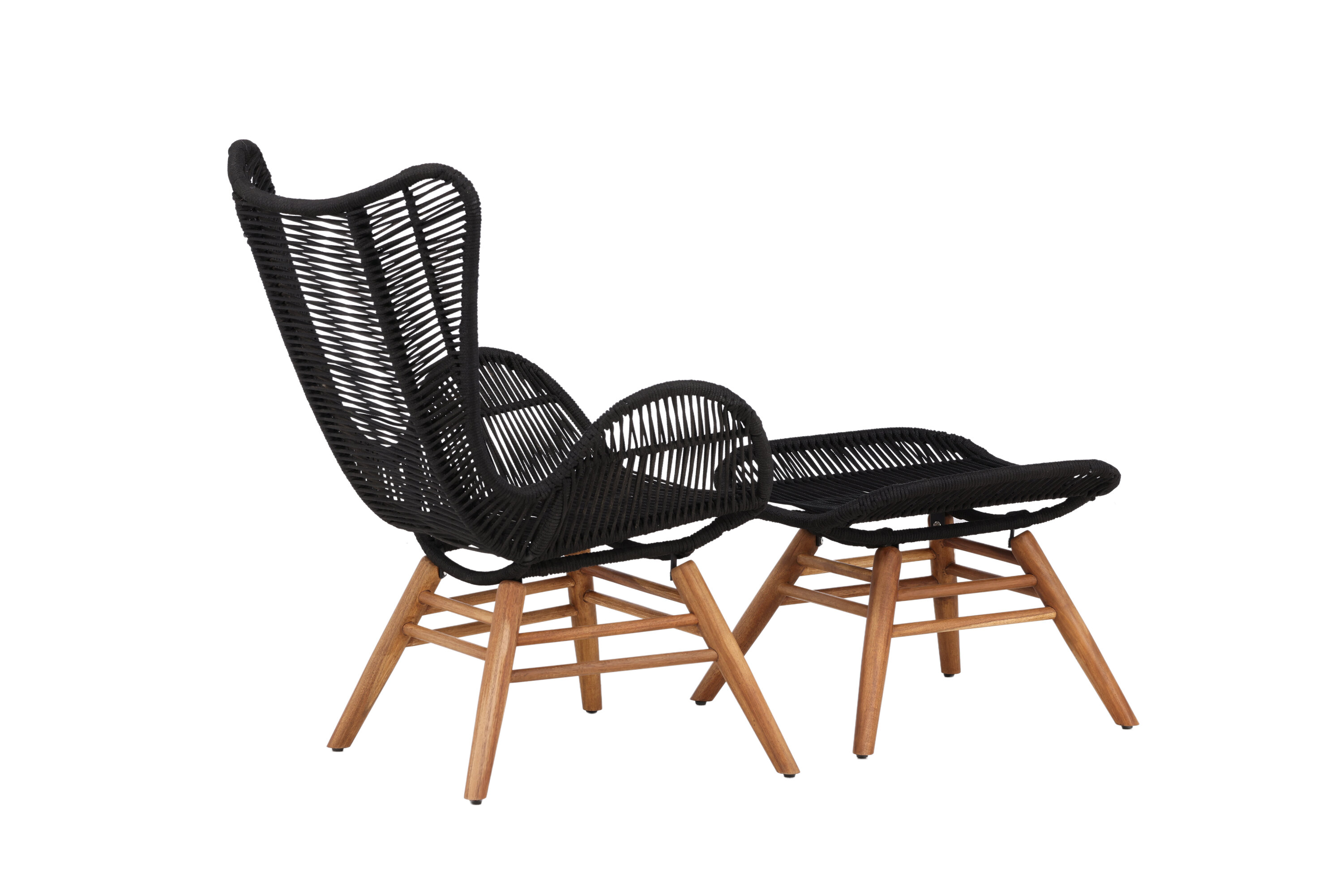 Net zo stijlvol in zijn ontwerp als comfortabel om in te zitten. Tjingeling is een loungestoel met bijbehorende voetenbank die gegarandeerd een moderne blikvanger op het terras is. De poten zijn gemaakt van acaciahout en de zitting van duurzaam geweven touw. Bereid je voor op het zomerse nachtleven!