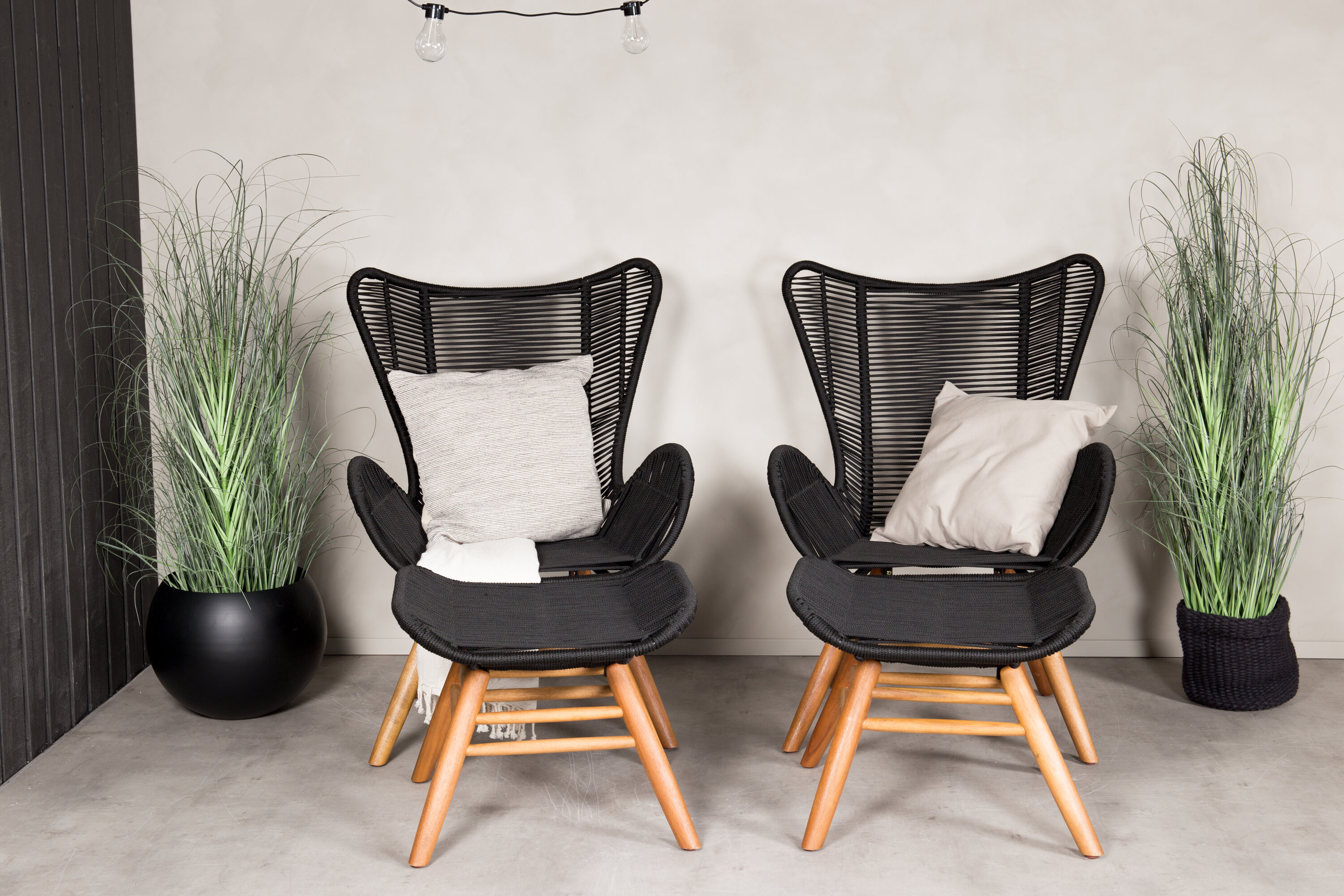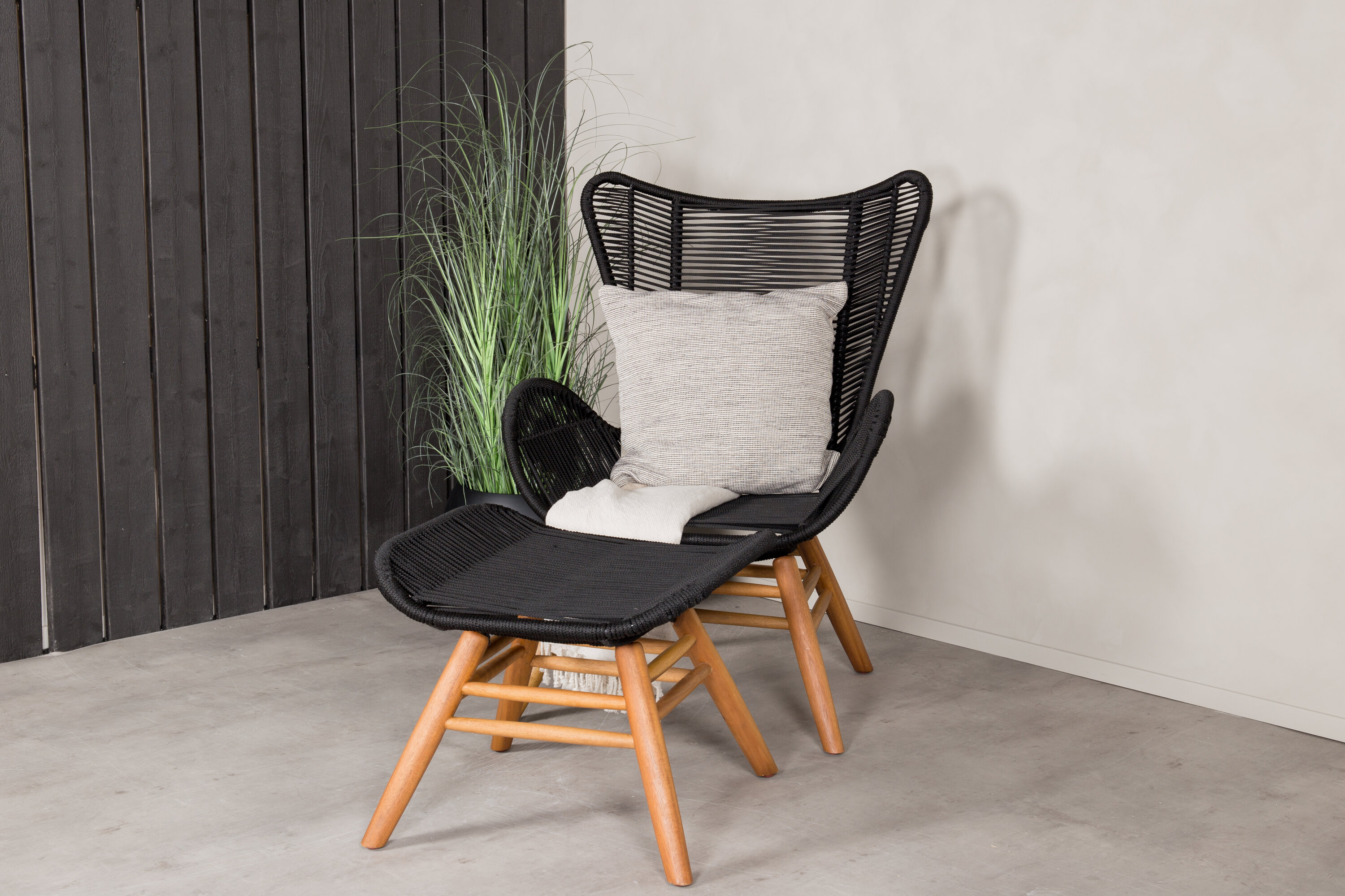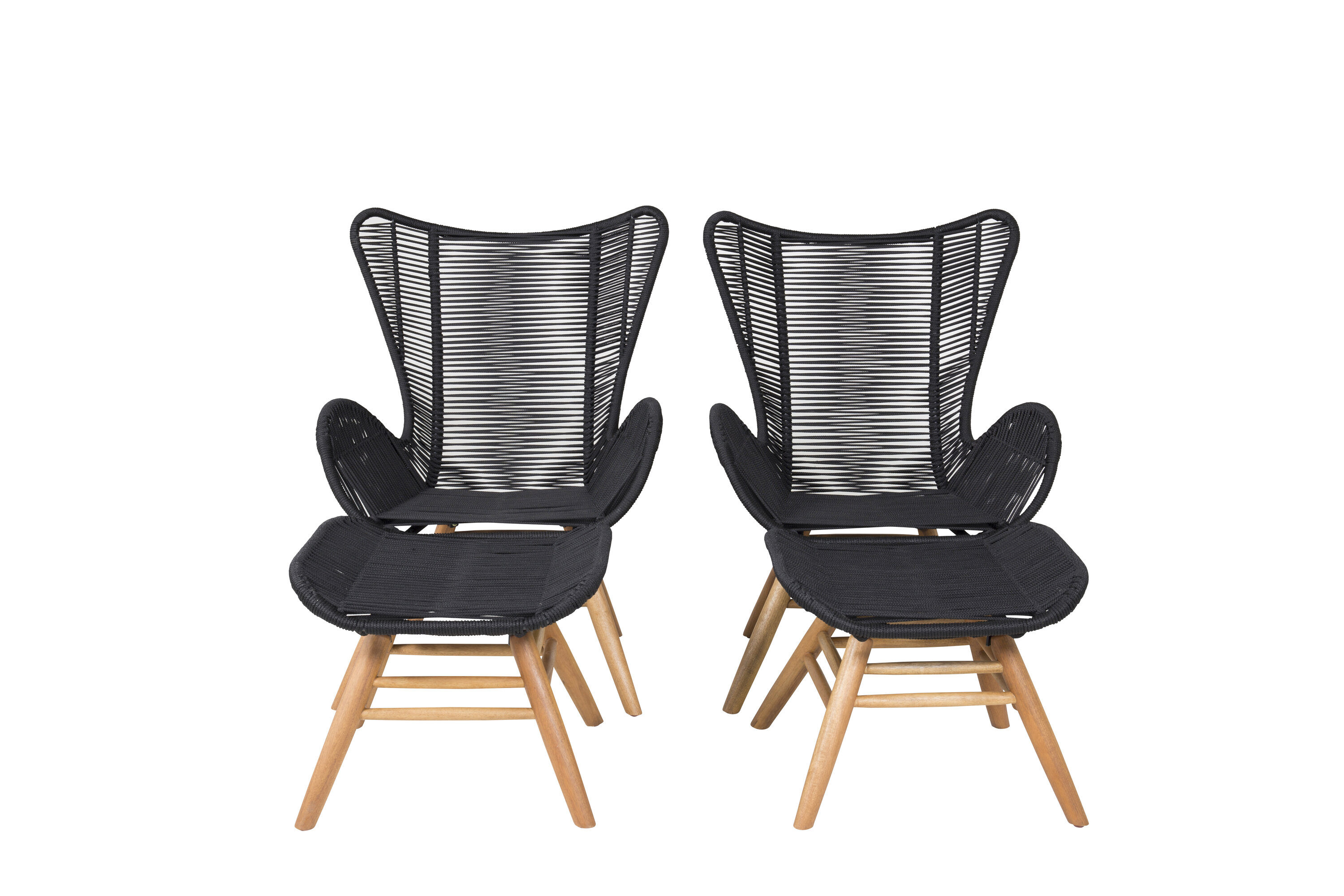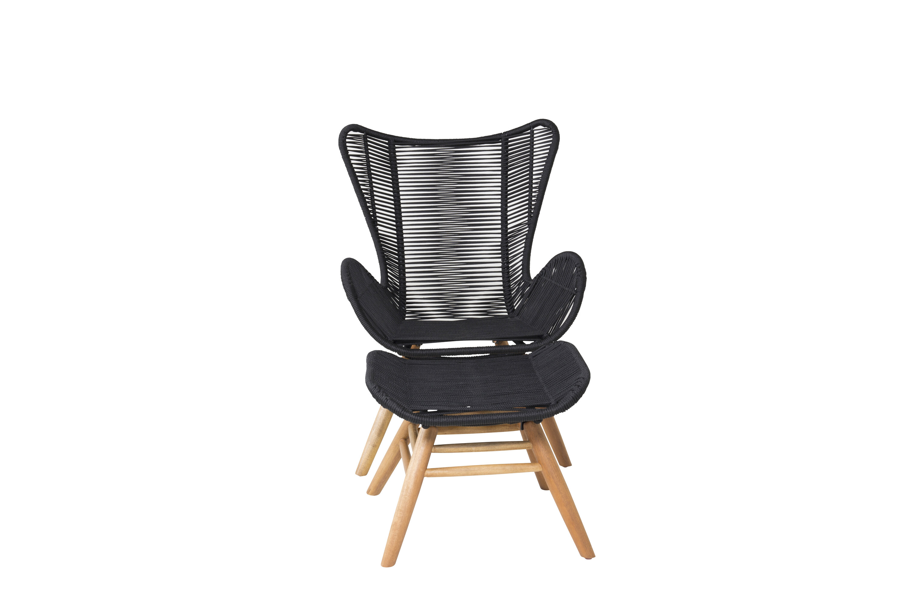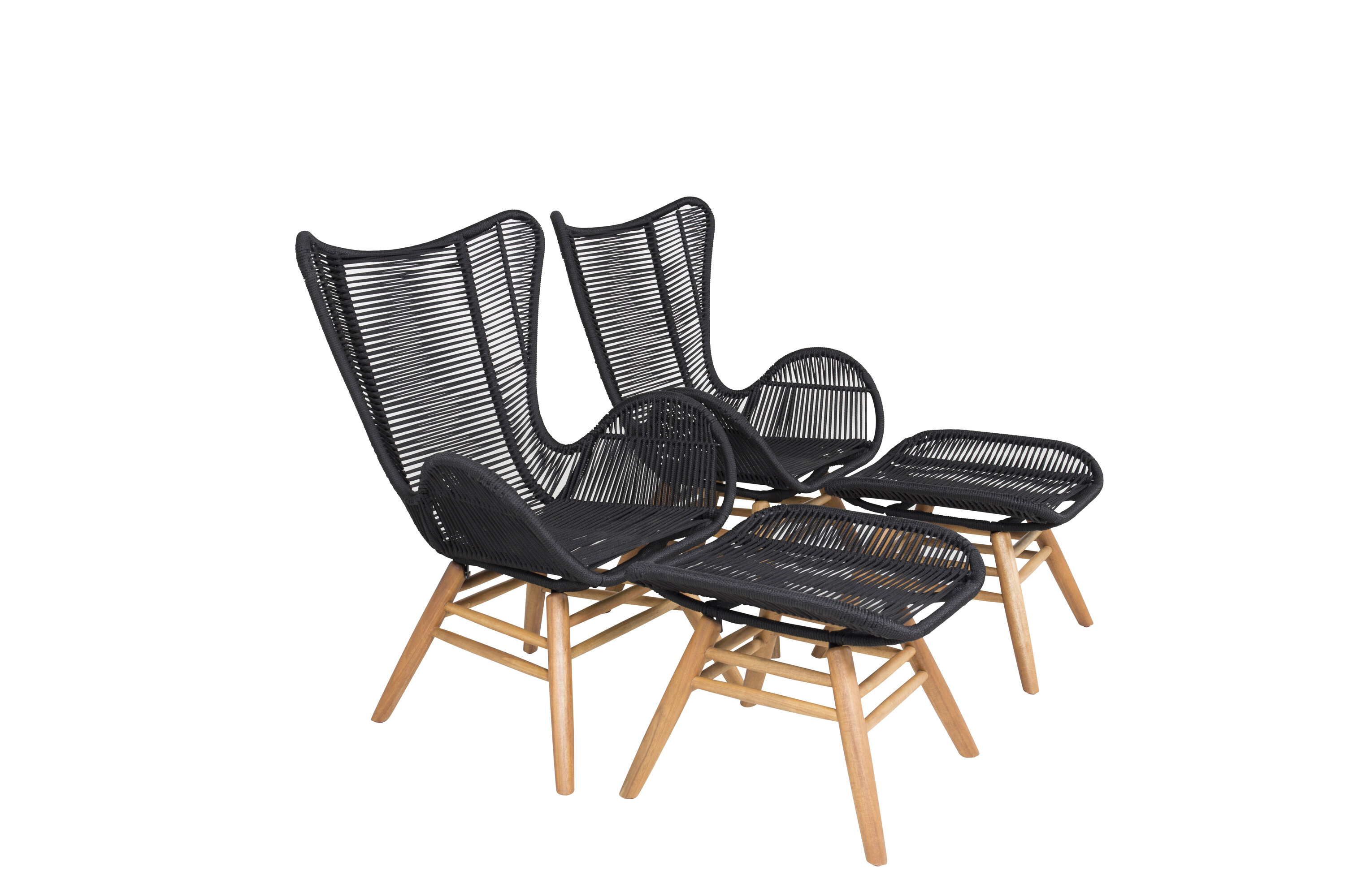 Net zo stijlvol in zijn ontwerp als comfortabel om in te zitten. Tjingeling is een loungestoel met bijbehorende voetenbank die gegarandeerd een moderne blikvanger op het terras is. De poten zijn gemaakt van acaciahout en de zitting van duurzaam geweven touw. Bereid je voor op het zomerse nachtleven!
