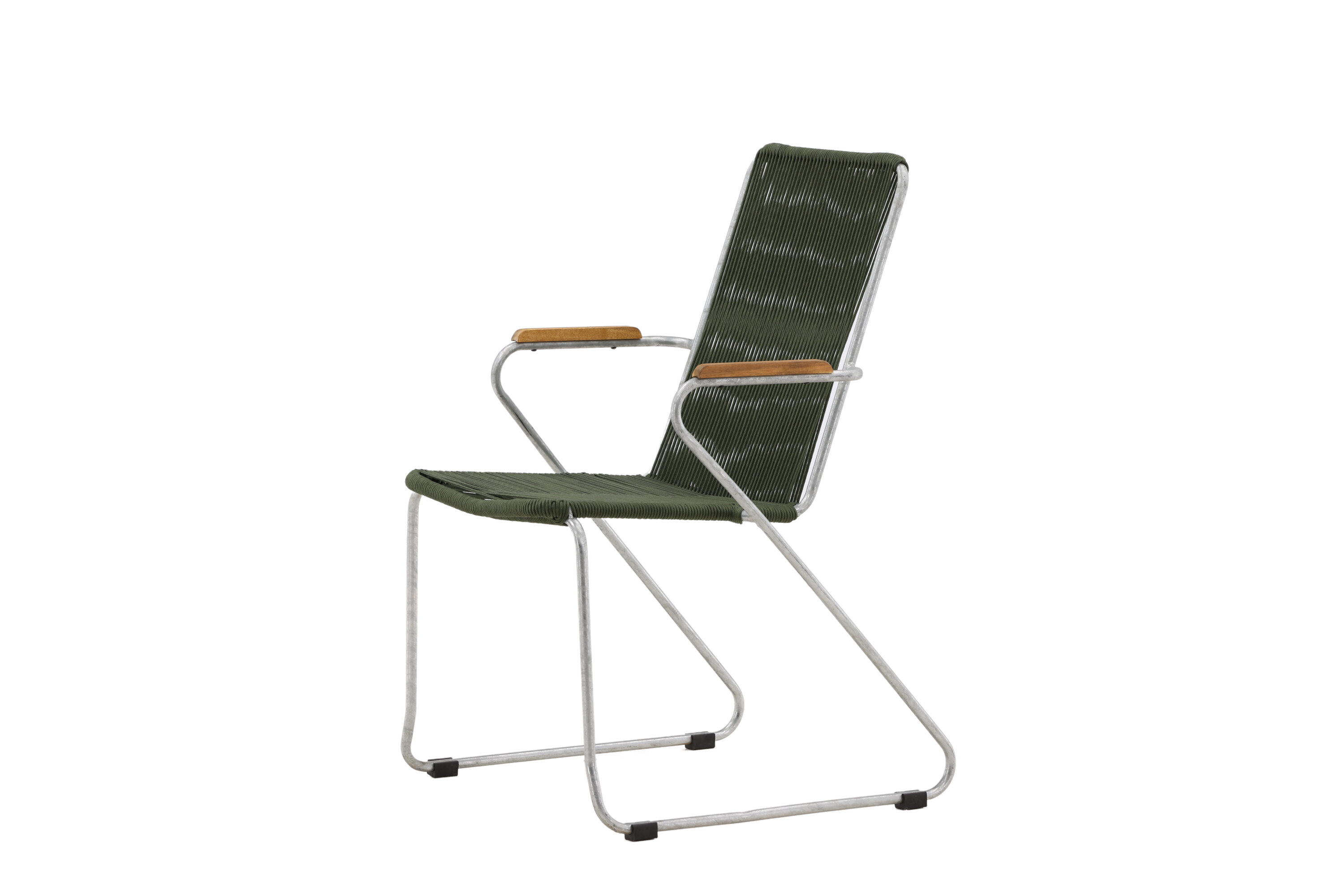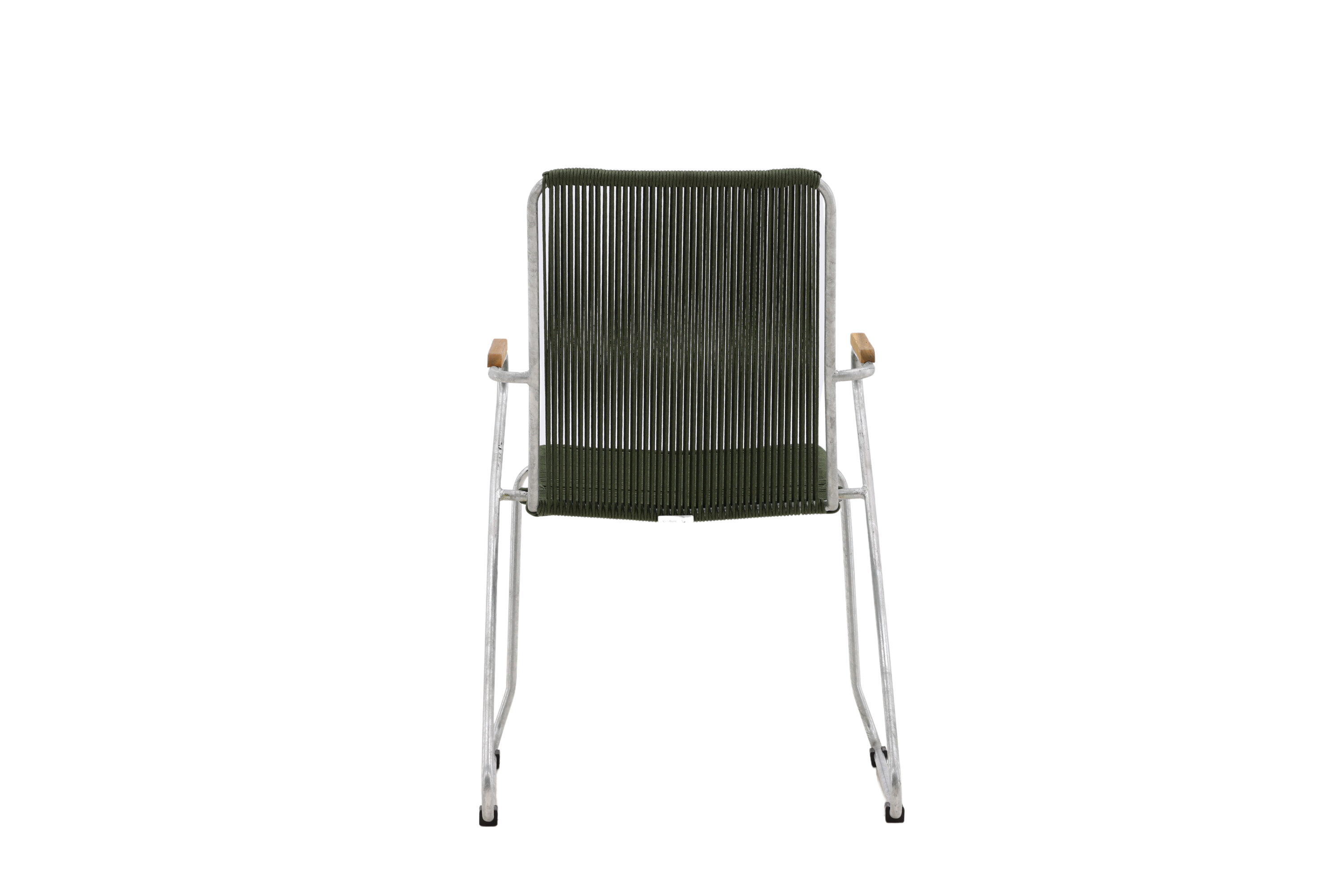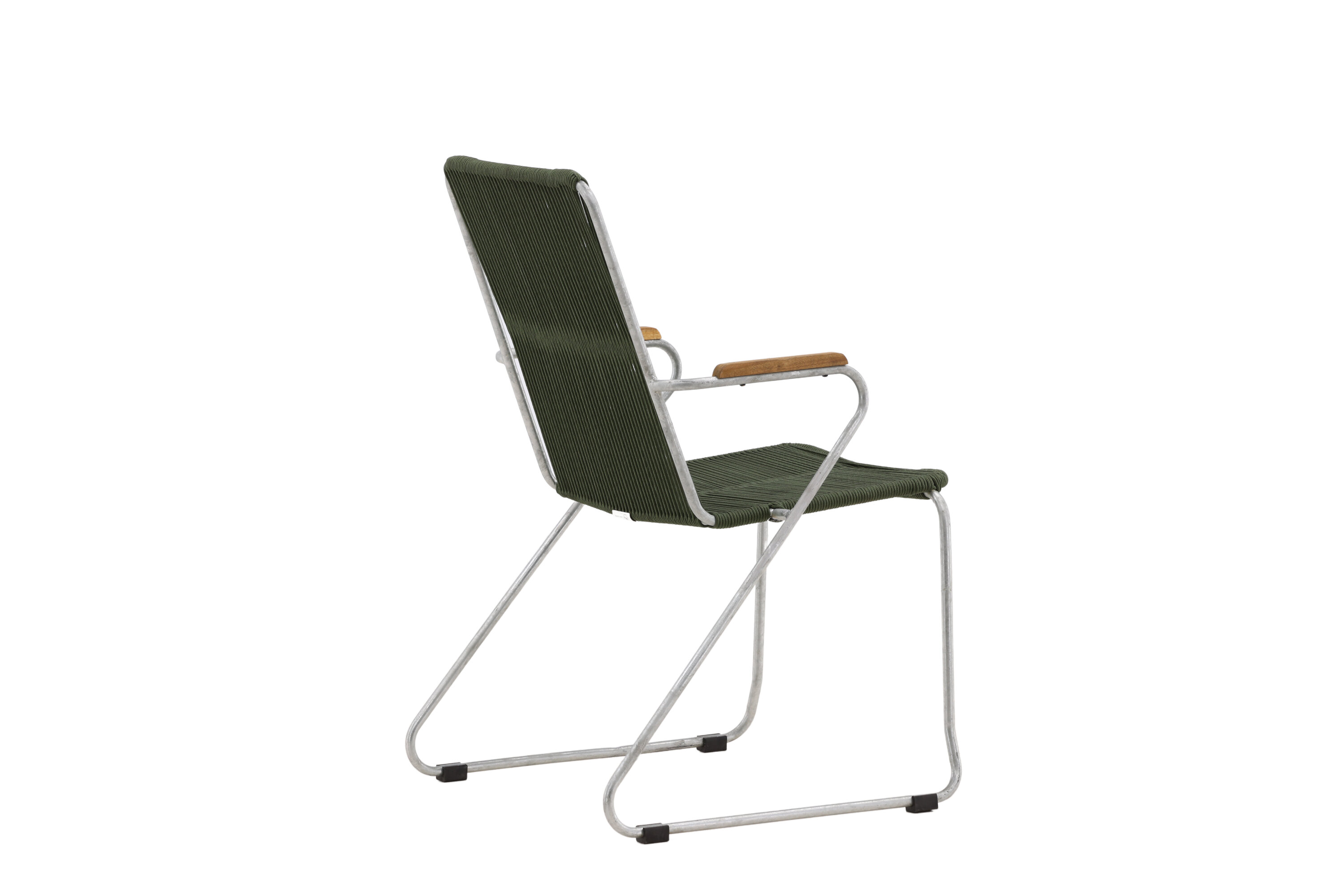 Modern, stijlvol en duurzaam - een trendy stoel met de juiste kenmerken! Bois heeft een comfortabel ontwerp in zinkconstructie, zitting in zacht groen touw en decoratieve armleuningen in teakhout. Een meubelstuk dat uitnodigt tot vele aangename momenten. Geniet van een beetje extra van heerlijke maaltijden buiten en geef het balkon een stijlvolle uitstraling! De stoel is stapelbaar.