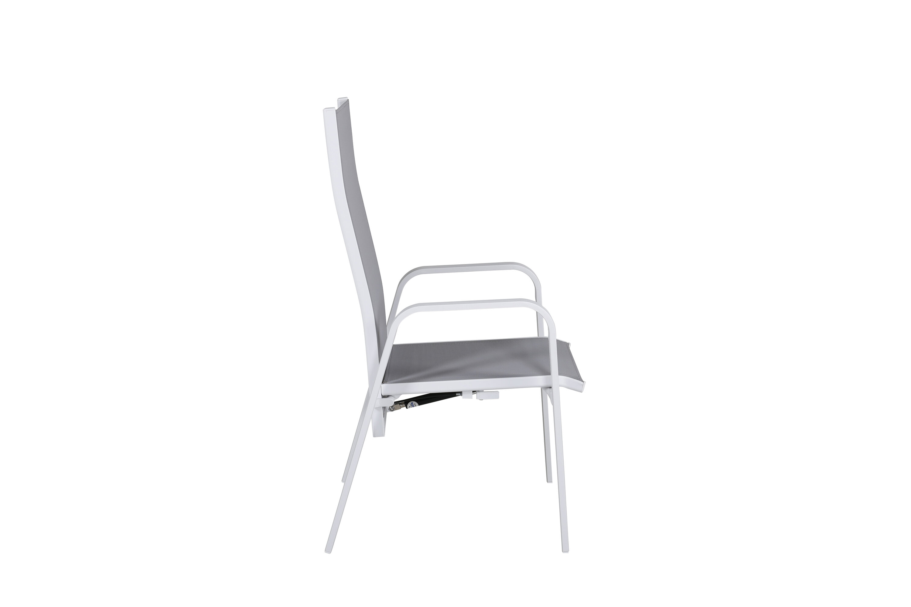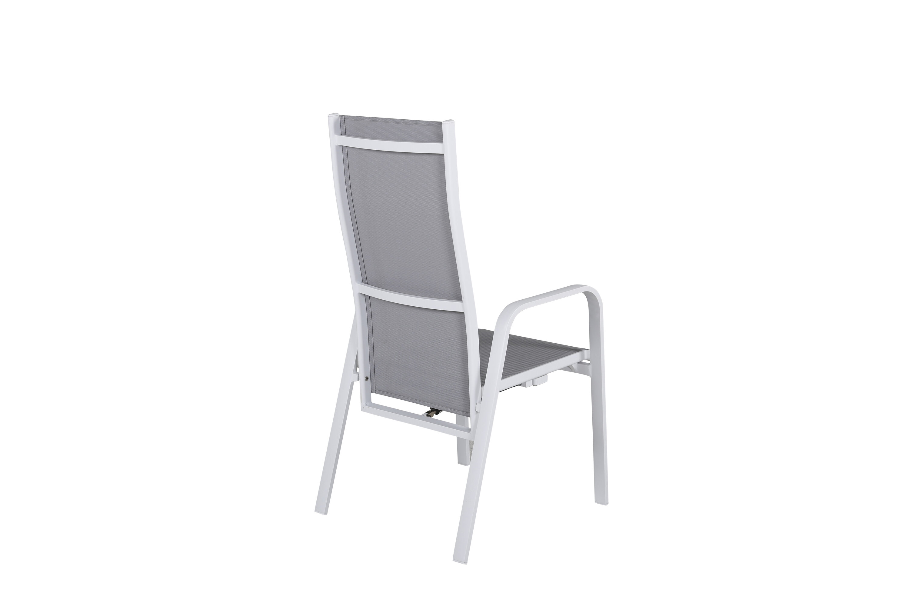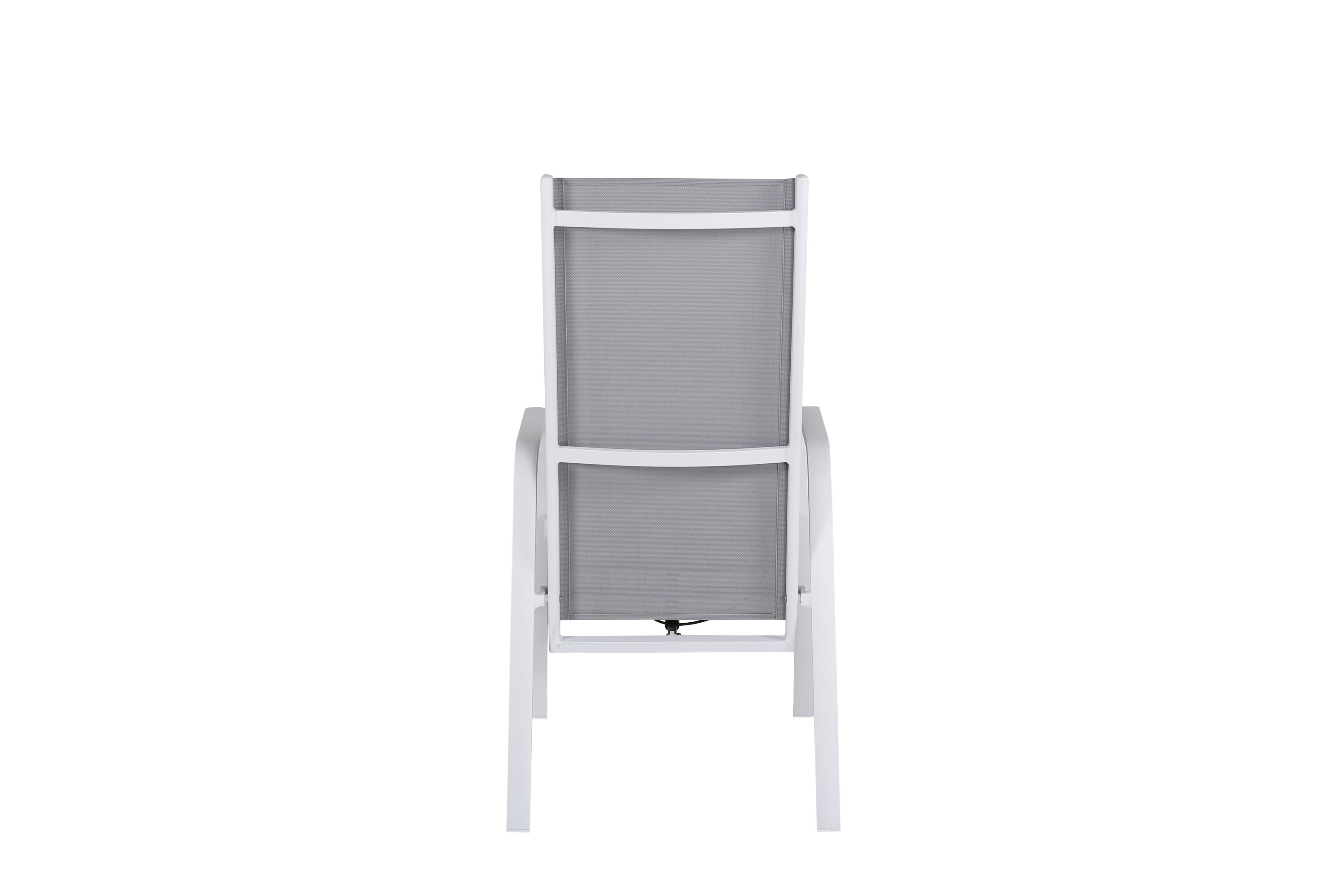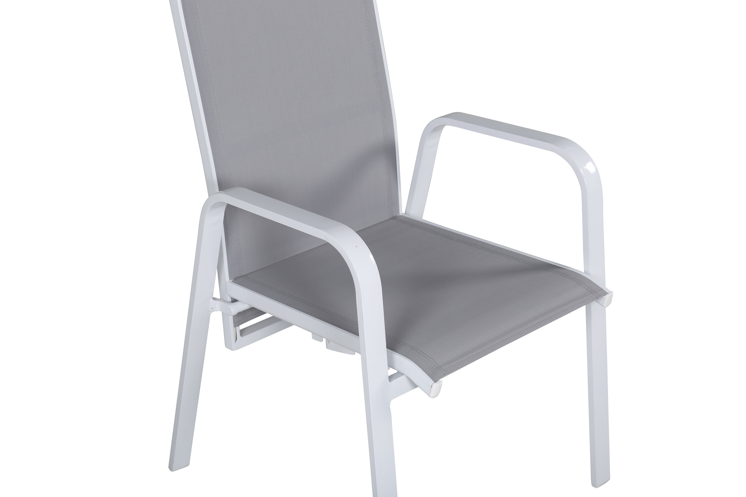 Wit -grijze stapelbare fauteuil uit de Copacabana serie die het goed doet aan de eettafel op het balkon. De rugleuning van de stoel kan worden ingeklemd, waardoor deze zeer comfortabel en praktisch is. Geniet op de beste manier van de zomer! De stoel is stapelbaar.