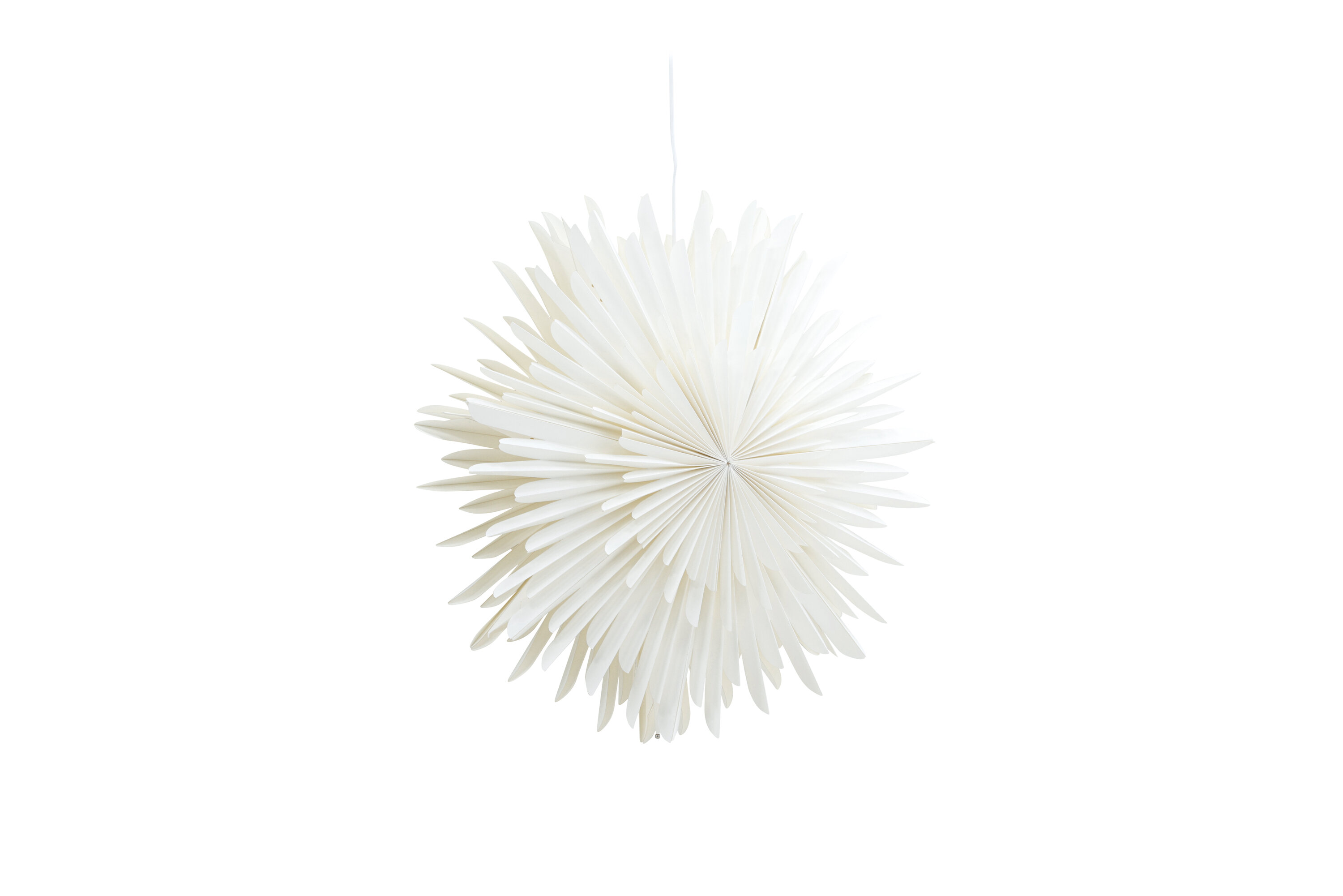 Deze prachtige witte papieren ster is de perfecte verlichting om een persoonlijke en gezellige sfeer in je huis te creëren! Of het nu tijdens de mysterieuze herfstavonden of de feestdagen van Kerstmis is, de plafondlamp uit de Sälen-serie verspreidt een warme en uitnodigende gloed die je kamer onmiddellijk in een oase van rust zal veranderen.