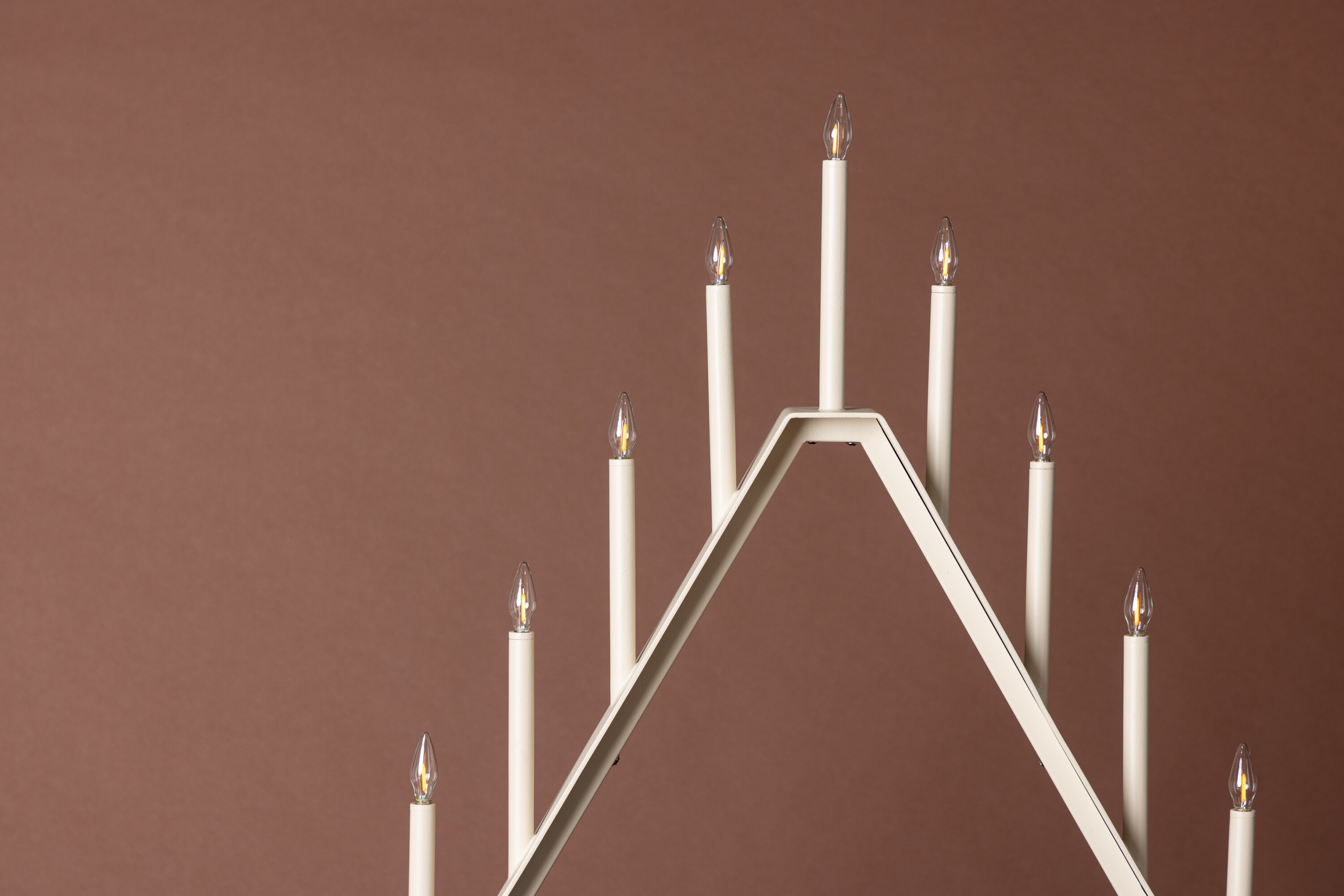 Verspreid een gezellige lamp in je huis tijdens koude winteravonden met onze beige adventskandelaar uit de Åre-serie! Deze moderne tafellamp is geïnspireerd op traditionele Zweedse advent kandelaars en heeft een driehoekige vorm met een puntig blad dat je huis verlicht met een strakke touch.