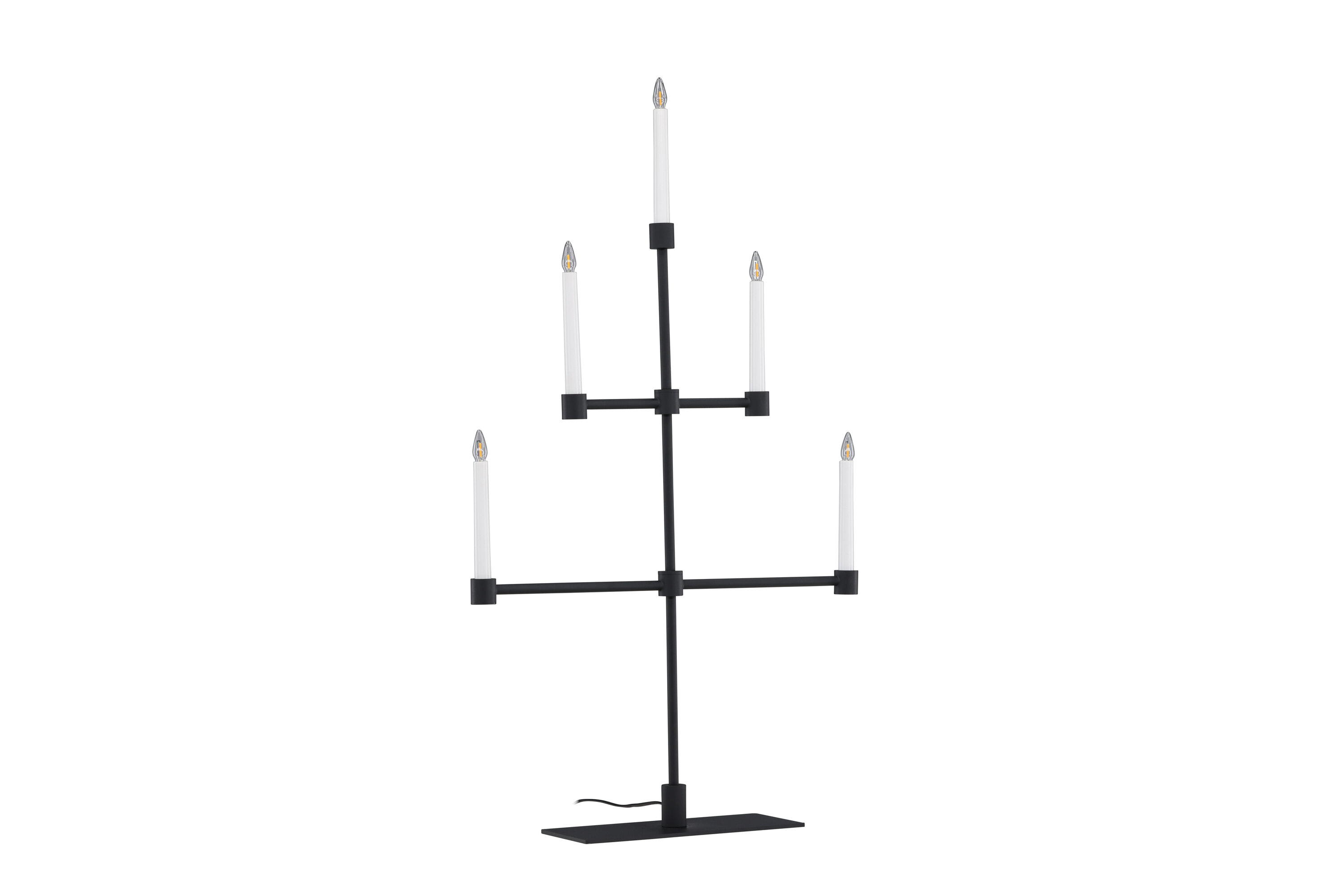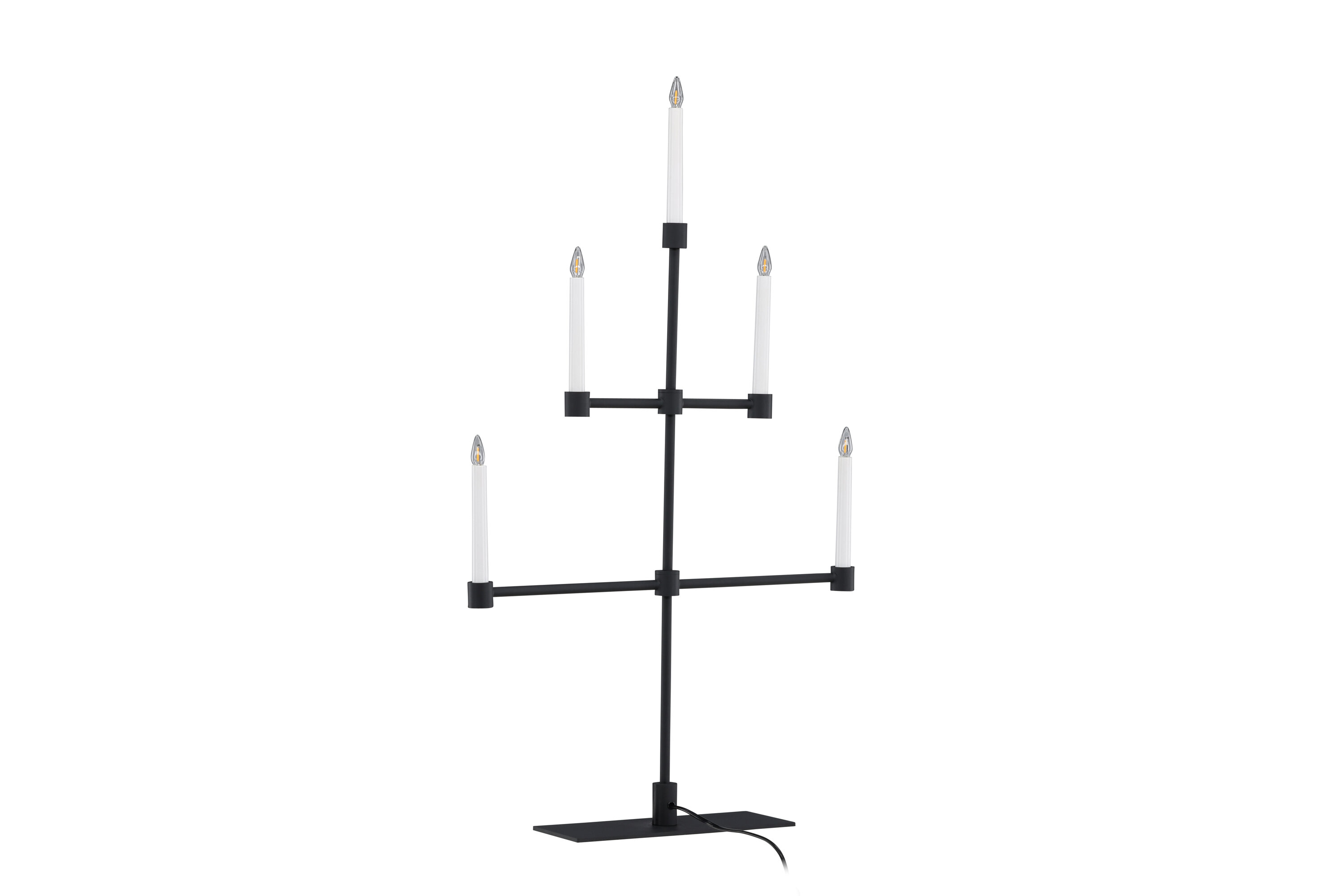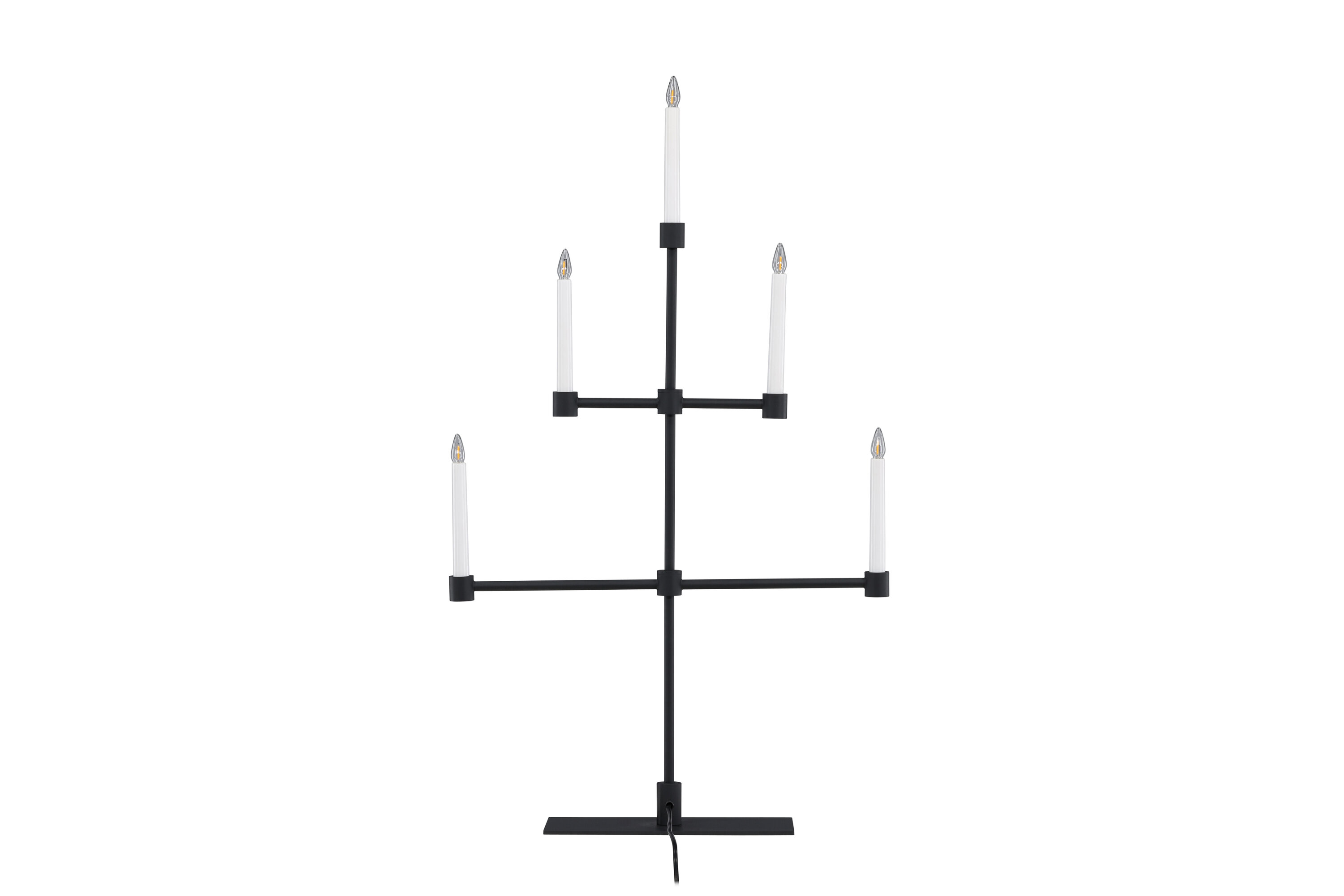 Het matzwarte metaal zorgt voor een subtiel contrast met het zachte licht en creëert een sfeer van rust en kalmte in je huis. Plaats het op je eettafel, een plank of als een centraal onderdeel van je vakantiedecor om je huis tijdens de kerstperiode te verlichten.