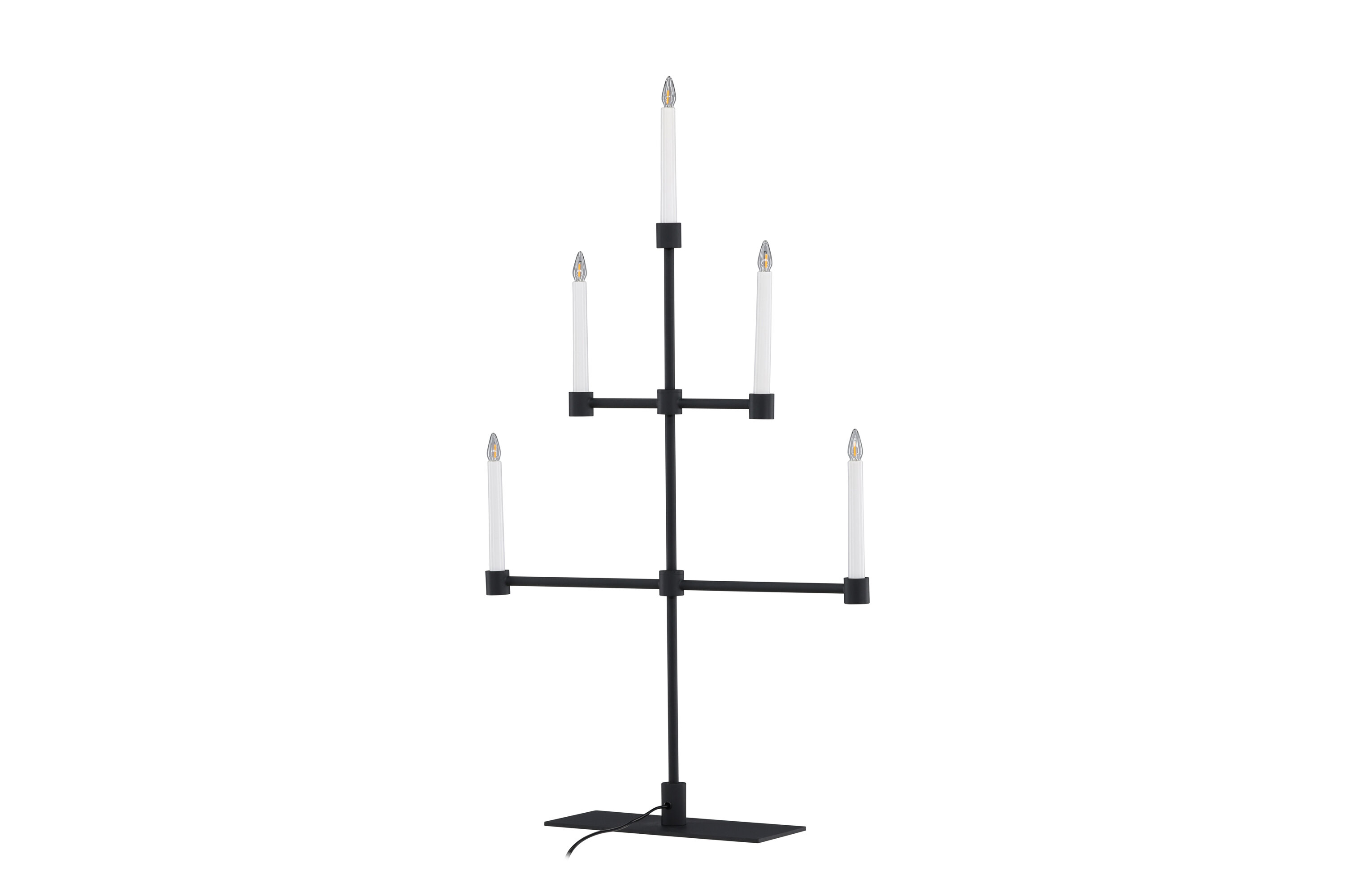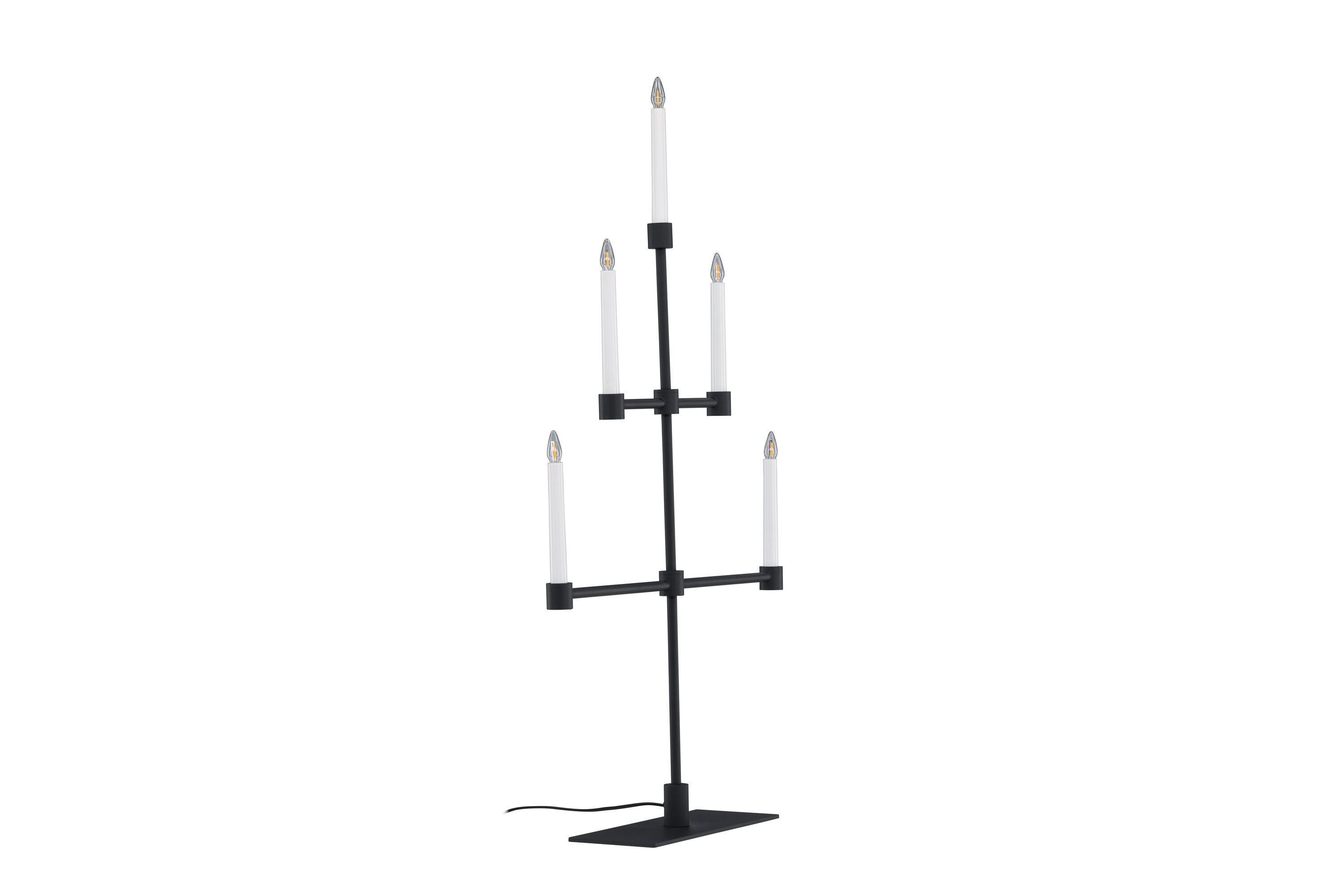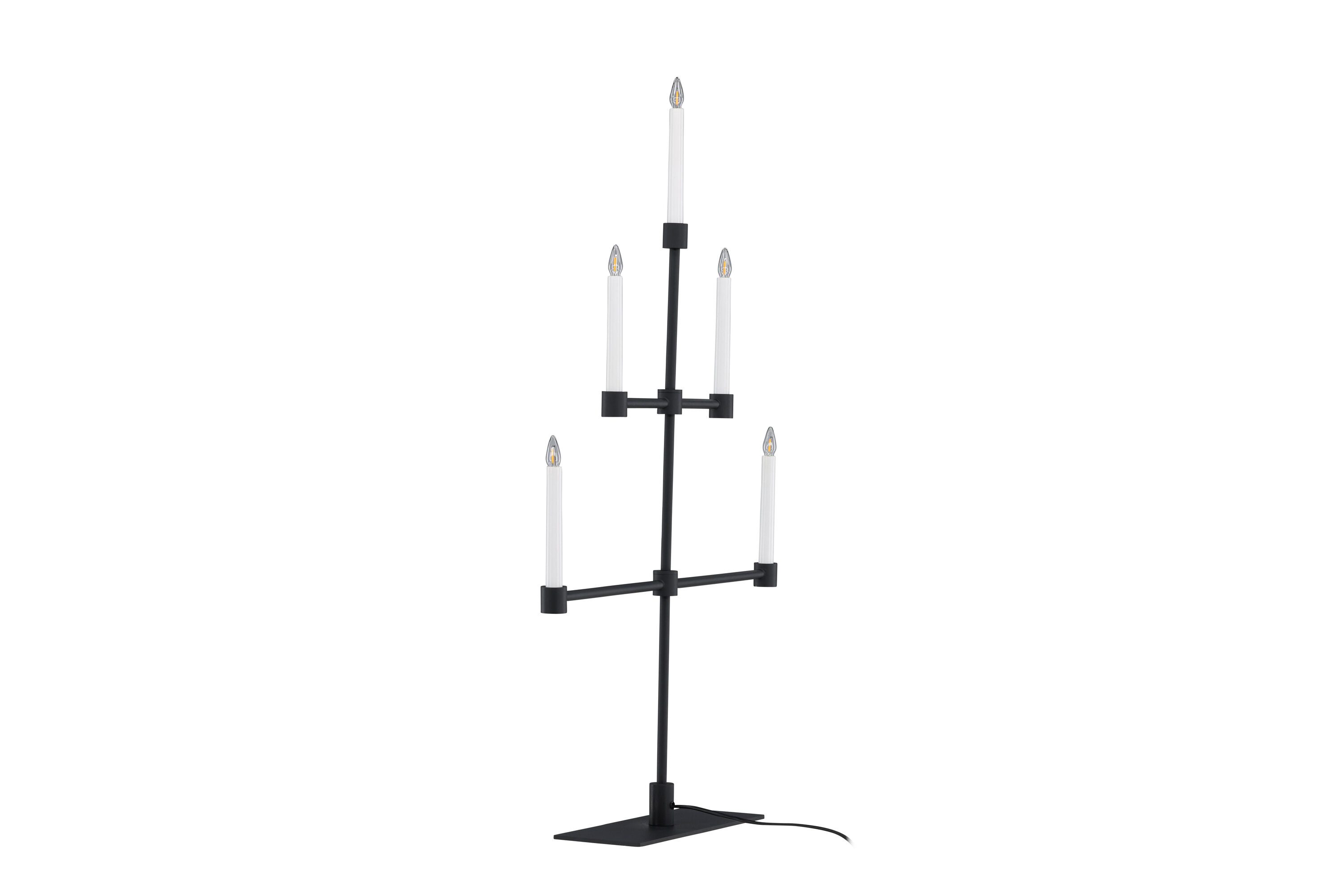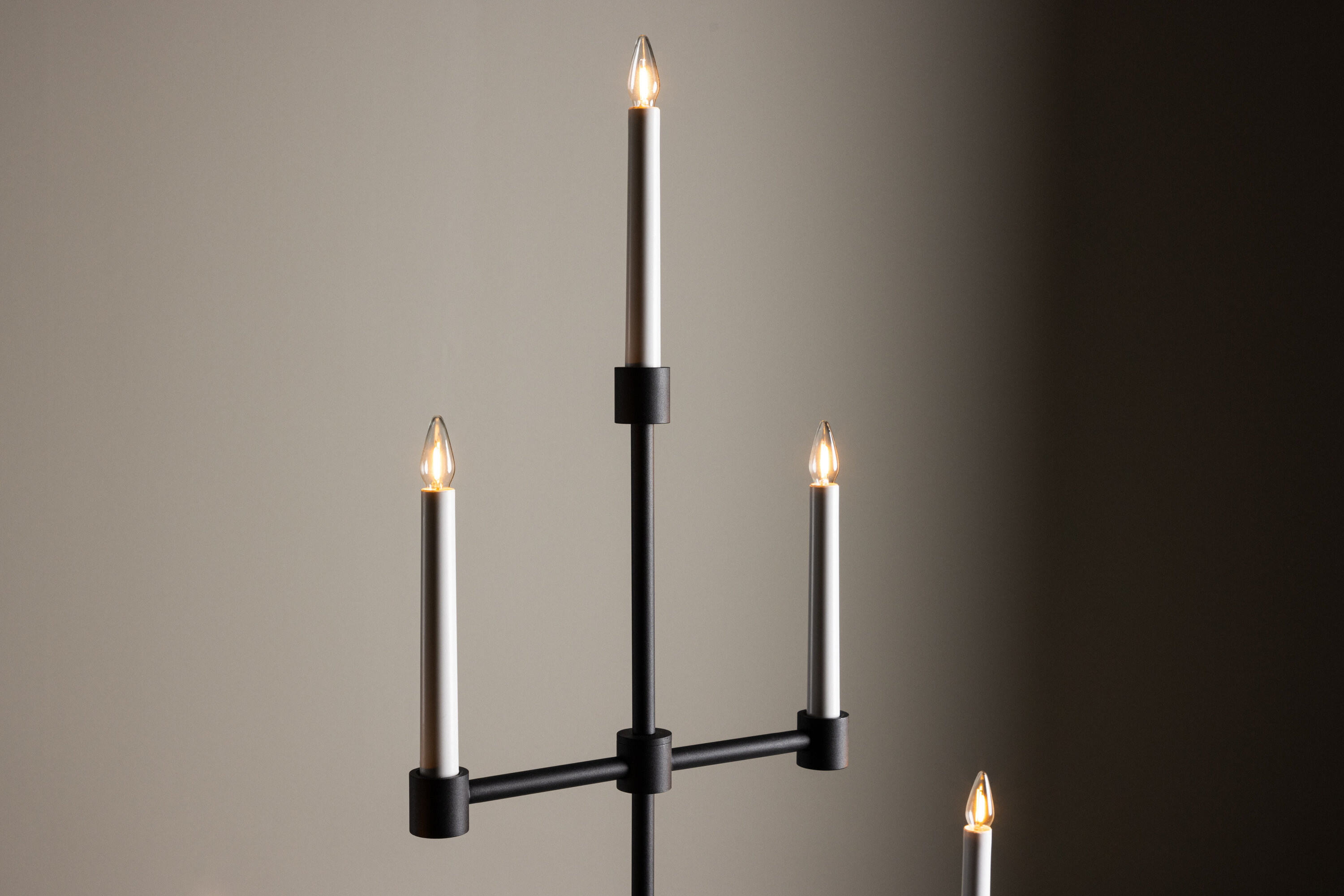 Het matzwarte metaal zorgt voor een subtiel contrast met het zachte licht en creëert een sfeer van rust en kalmte in je huis. Plaats het op je eettafel, een plank of als een centraal onderdeel van je vakantiedecor om je huis tijdens de kerstperiode te verlichten.