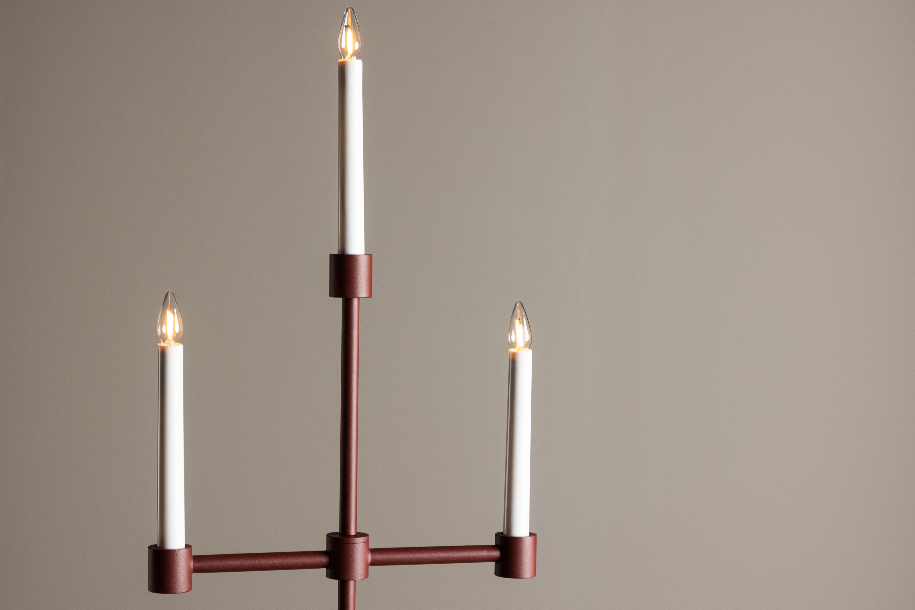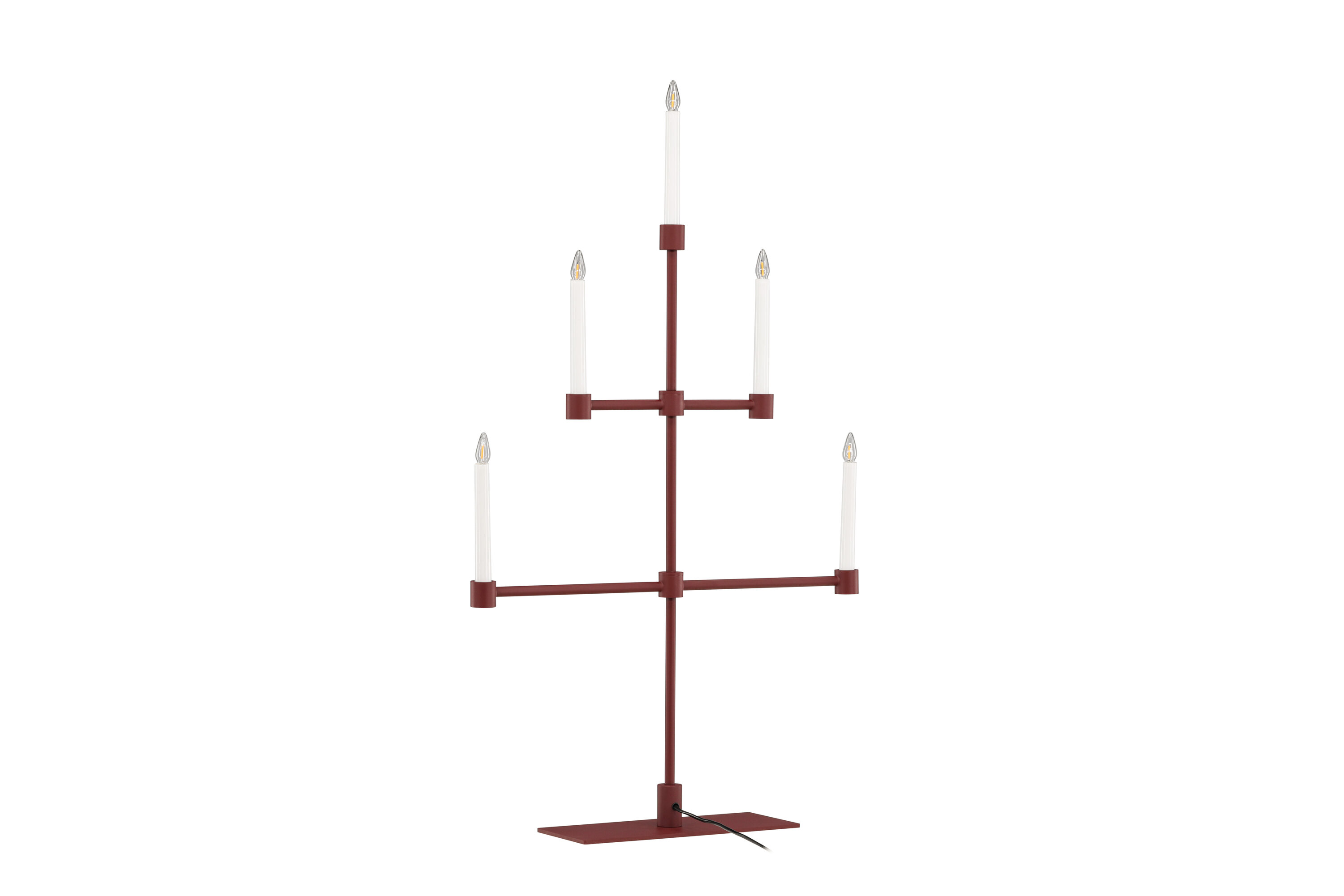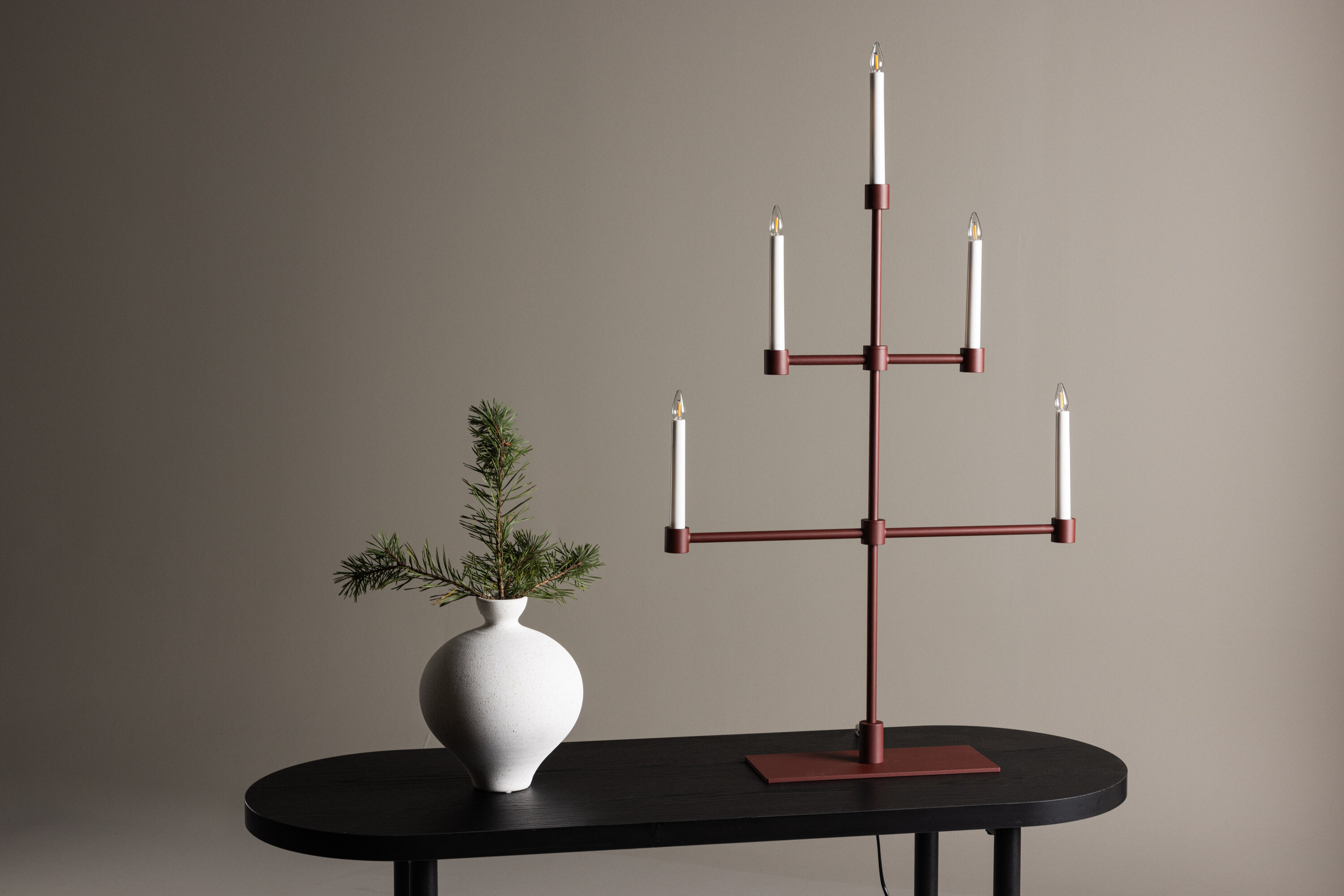 Het bordeauxrode metaal zorgt voor een warm en heerlijk contrast met het zachte licht en creëert een sfeer van warmte en welzijn in je huis. Zet hem op je eettafel, een plank of als centraal onderdeel van je kerstdecoratie om je huis tijdens de feestdagen op te fleuren.