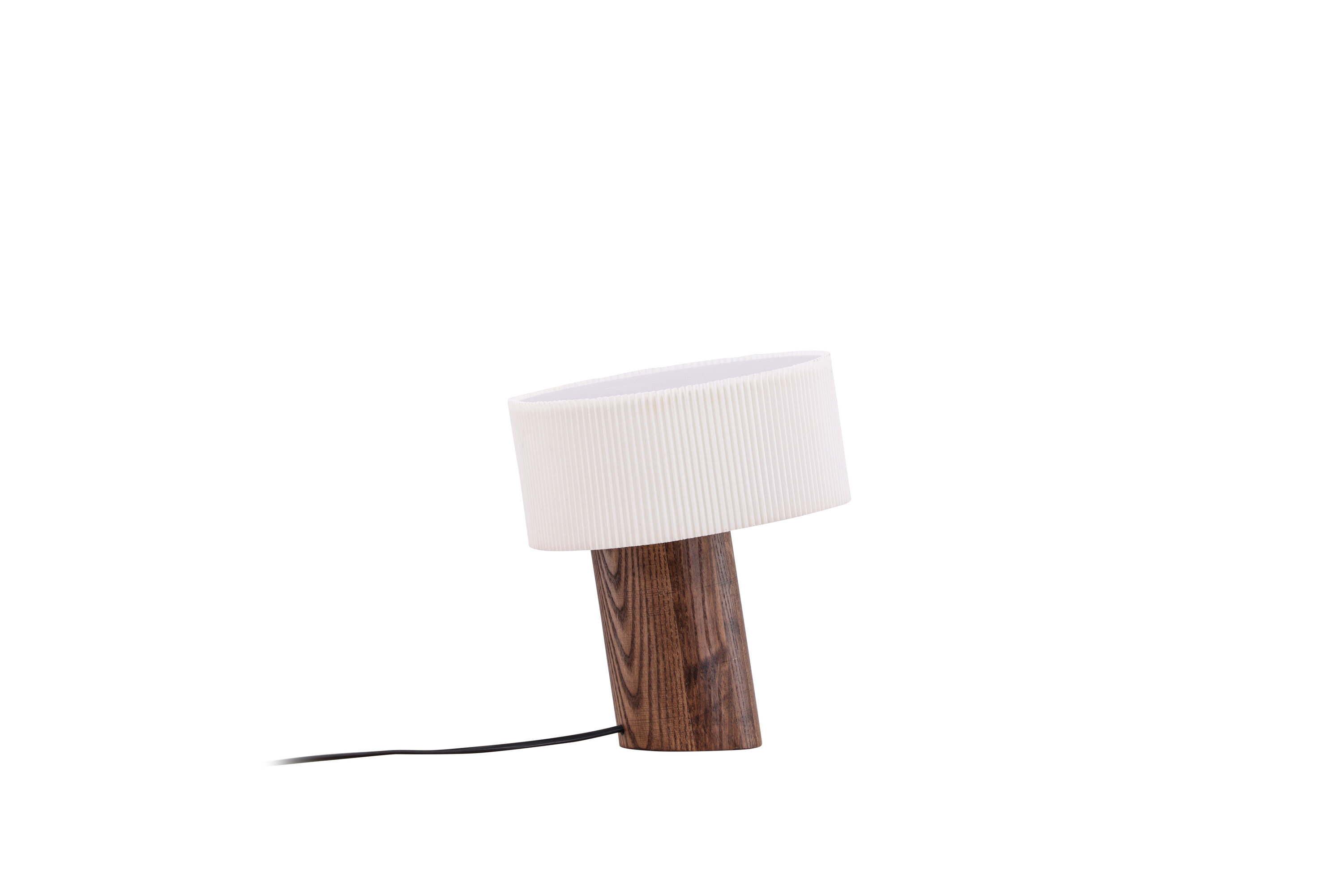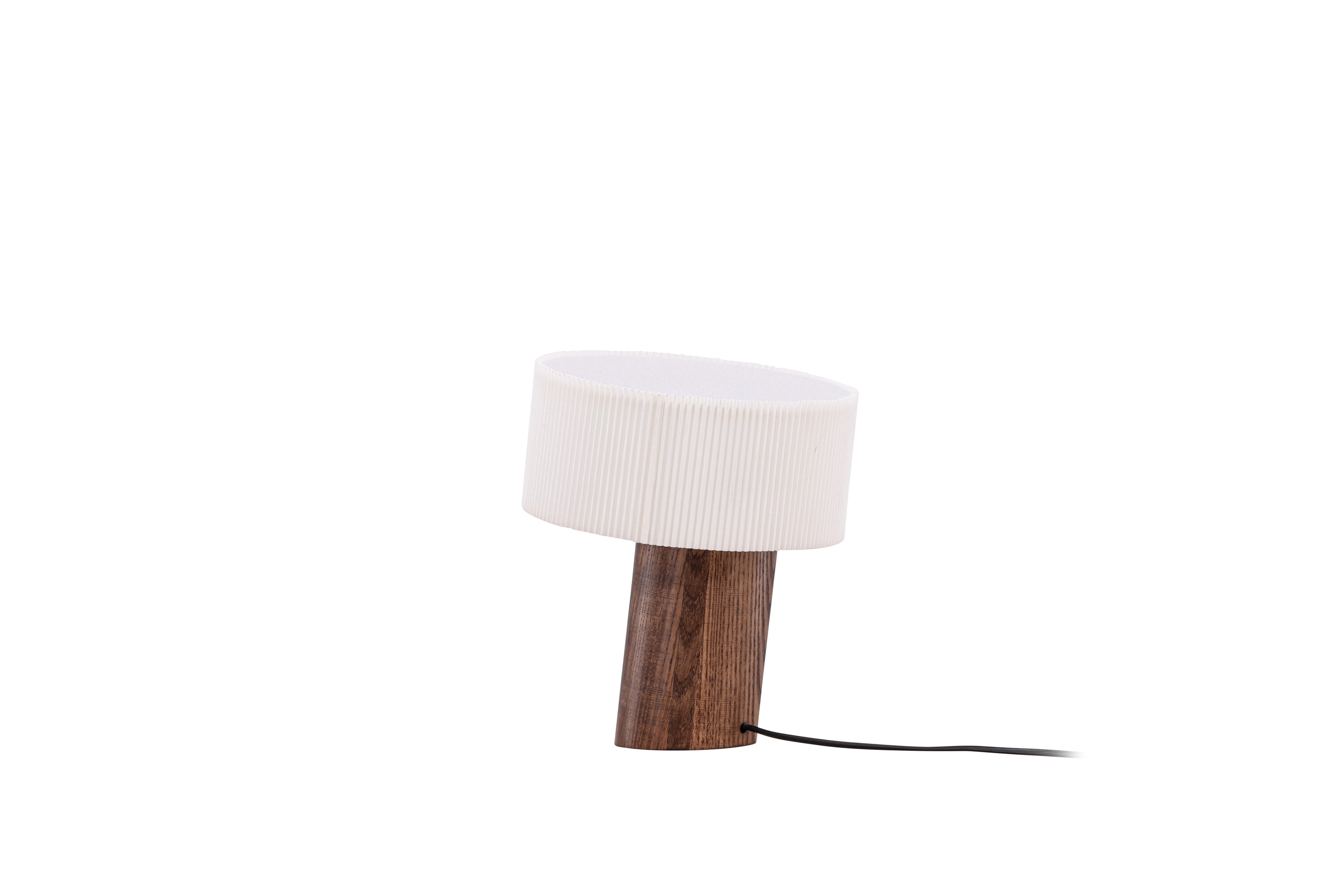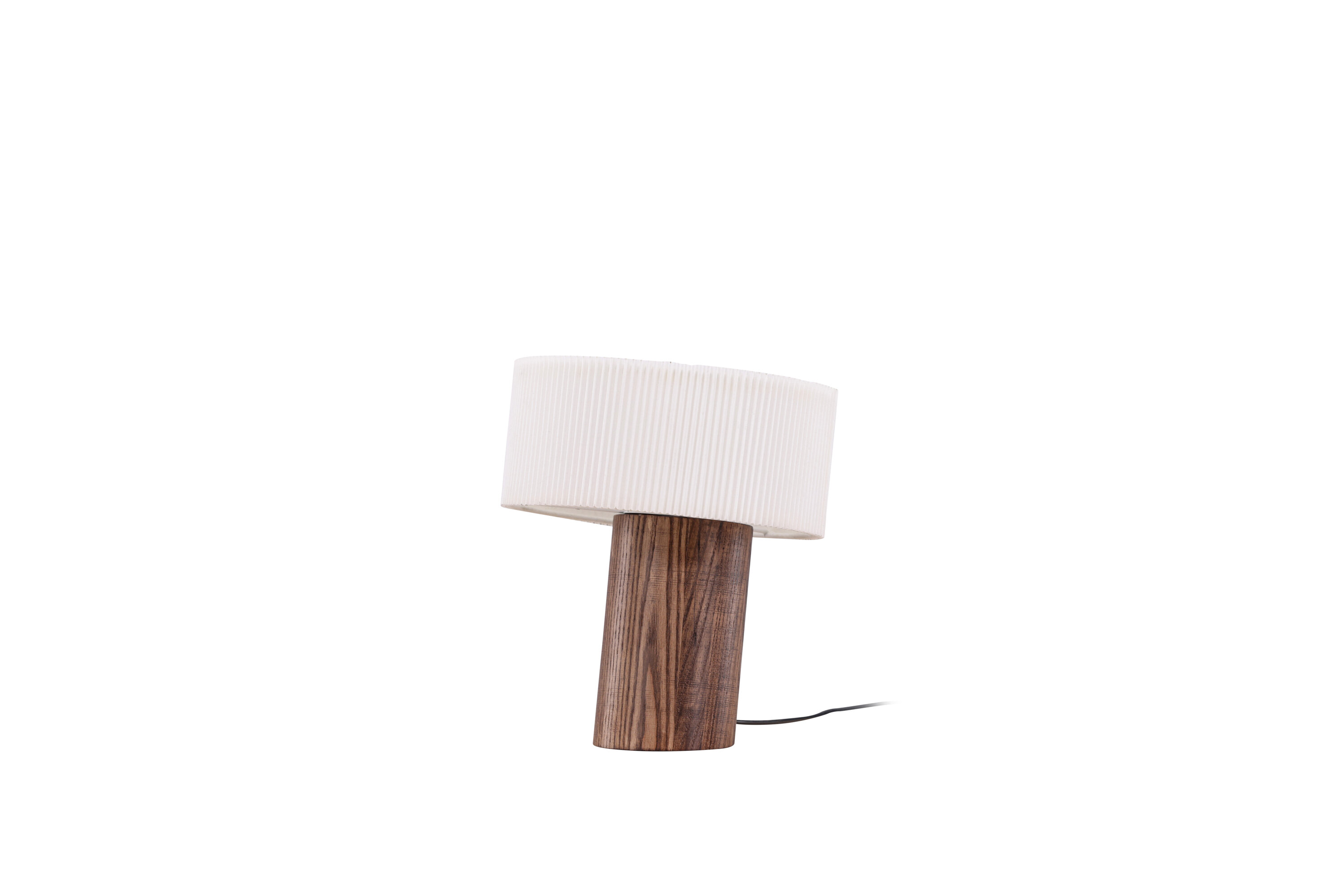 Met zijn walnootkleurige cilindrische voet en een lampenkap van geplooid wit papier is deze lamp een meesterwerk van modern design. De schuine lampvoet is niet alleen een stijlvol visueel detail, maar ook een duidelijk teken van een moderne lamp met een uniek ontwerp. Elk detail is zorgvuldig ontworpen om je kamer te transformeren in een modebewuste oase van trend en harmonie.