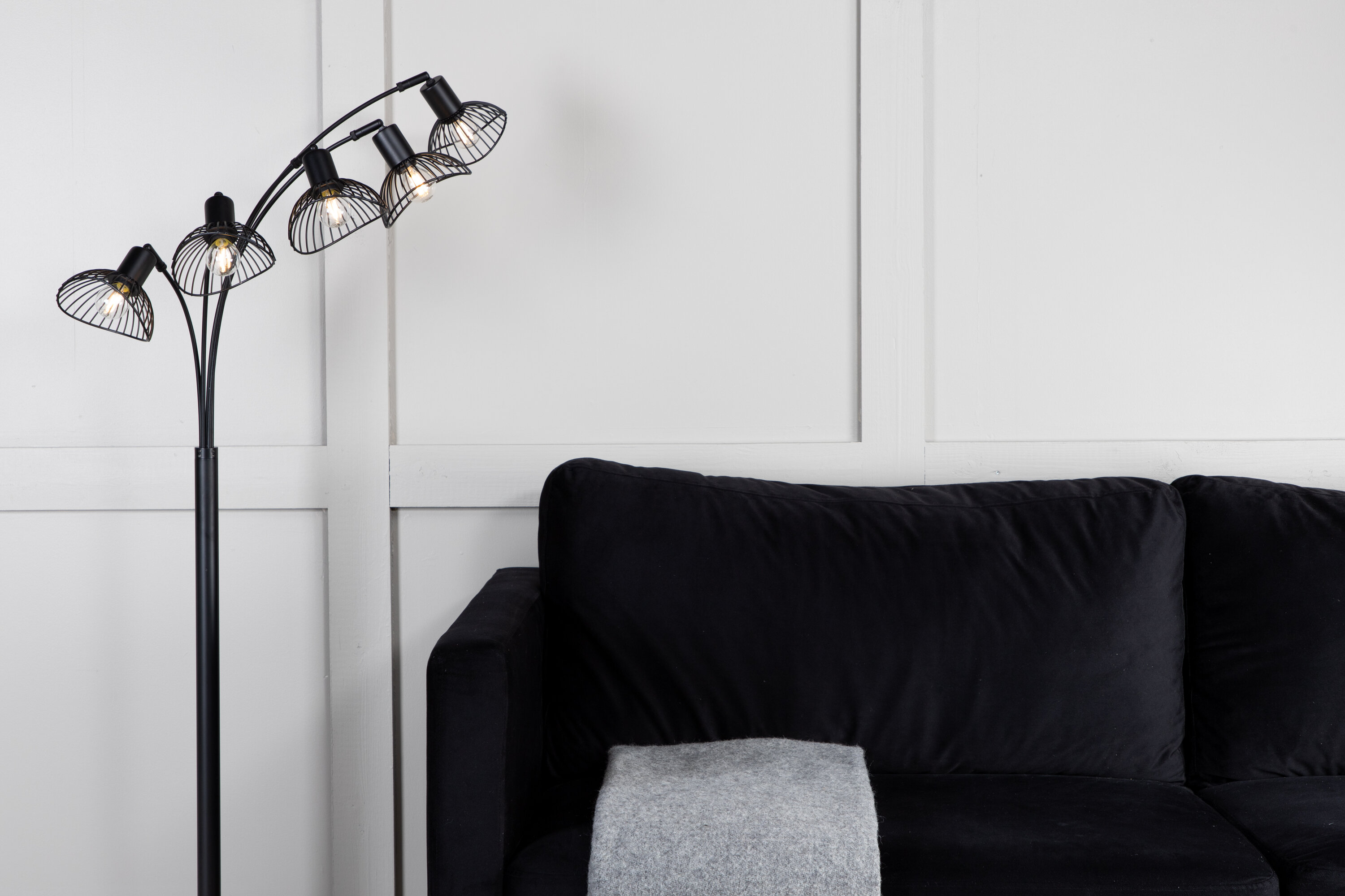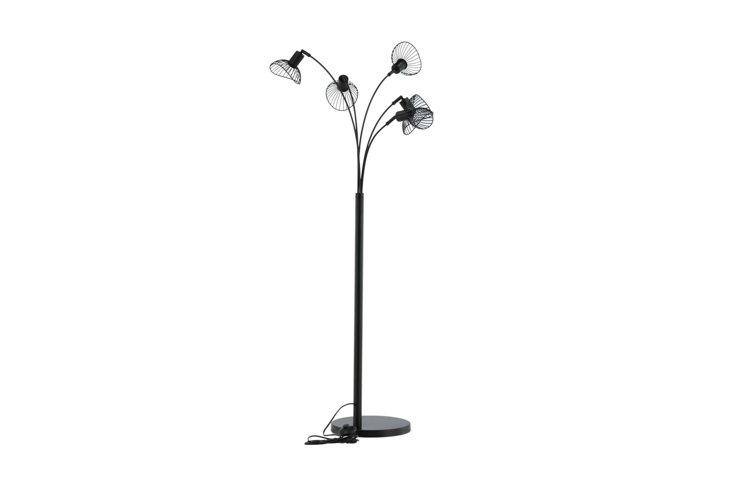 Deze vloerlamp uit de Elsa-serie heeft een modern en goed doordacht ontwerp dat de trendlijsten beklimt! Het eenvoudige ontwerp van de lampvoet en de licht gebogen armen in combinatie met het trendy ontwerp van de vijf lichtbronnen zorgen ervoor dat deze lamp met de meeste mee naar huis gaat. De vijf lichtbronnen van de lamp kunnen worden aangepast als puntverlichting gewenst is, wat de lamp zowel stijlvol als praktisch maakt. Plaats in de leeshoek, woonkamer of in de hal!