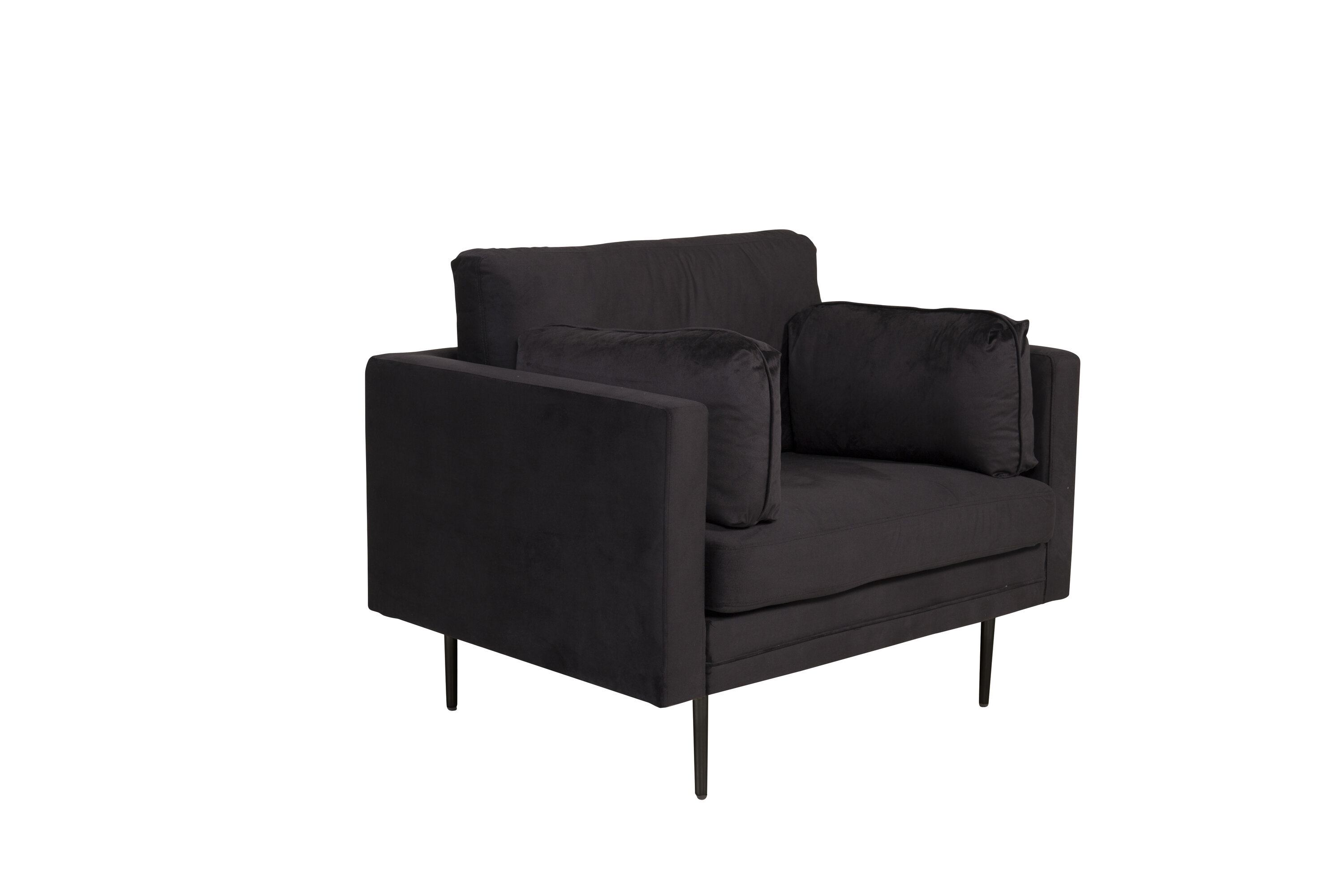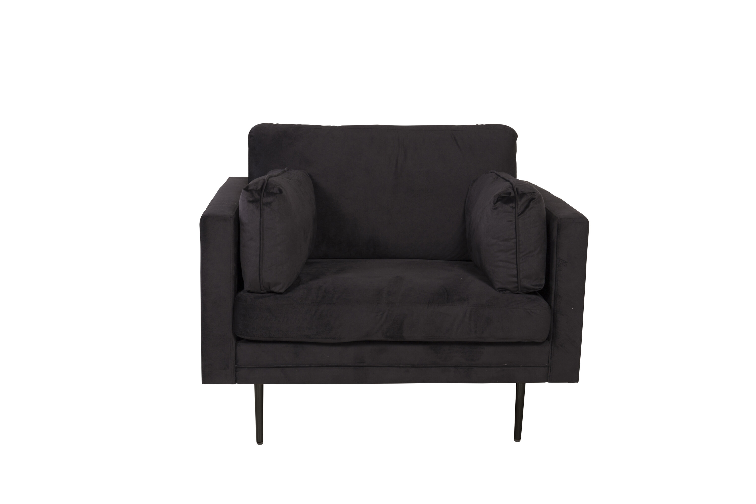 Luxe, elegant en pompeus - een moderne fauteuil die indruk maakt! Boom is een trendy fauteuil met veel comfort en een stijlvol design. De kleding in zwarte fluwelen stof geeft een prachtige glans aan de woonkamer. Het rechte Scandinavische ontwerp wordt gecombineerd met zachte vormen, stijlvolle smalle poten en royale zitdiepte die samen een luchtig en uitnodigend gevoel creëren. Een ongelooflijk goed doordacht algemeen ontwerp, eenvoudig met een geklede rugleuning die het mogelijk maakt om de fauteuil in het midden van de kamer te plaatsen. Meubel alleen als stijlicoon of in groep samen met onze 3-zitsbank die ook in de Boom-serie zit.