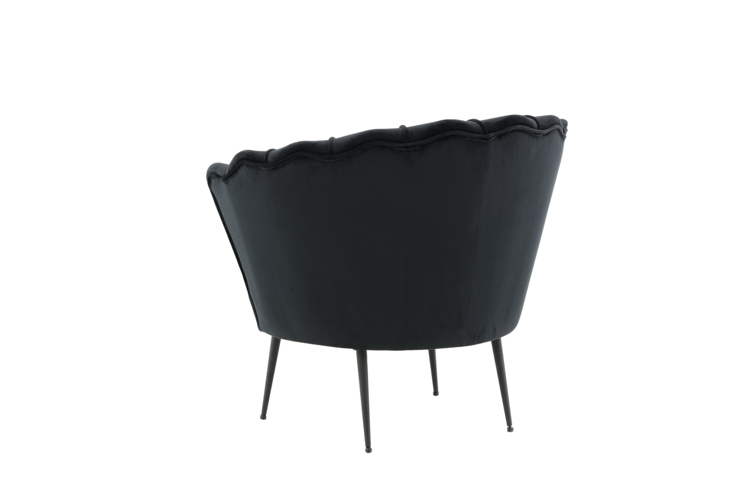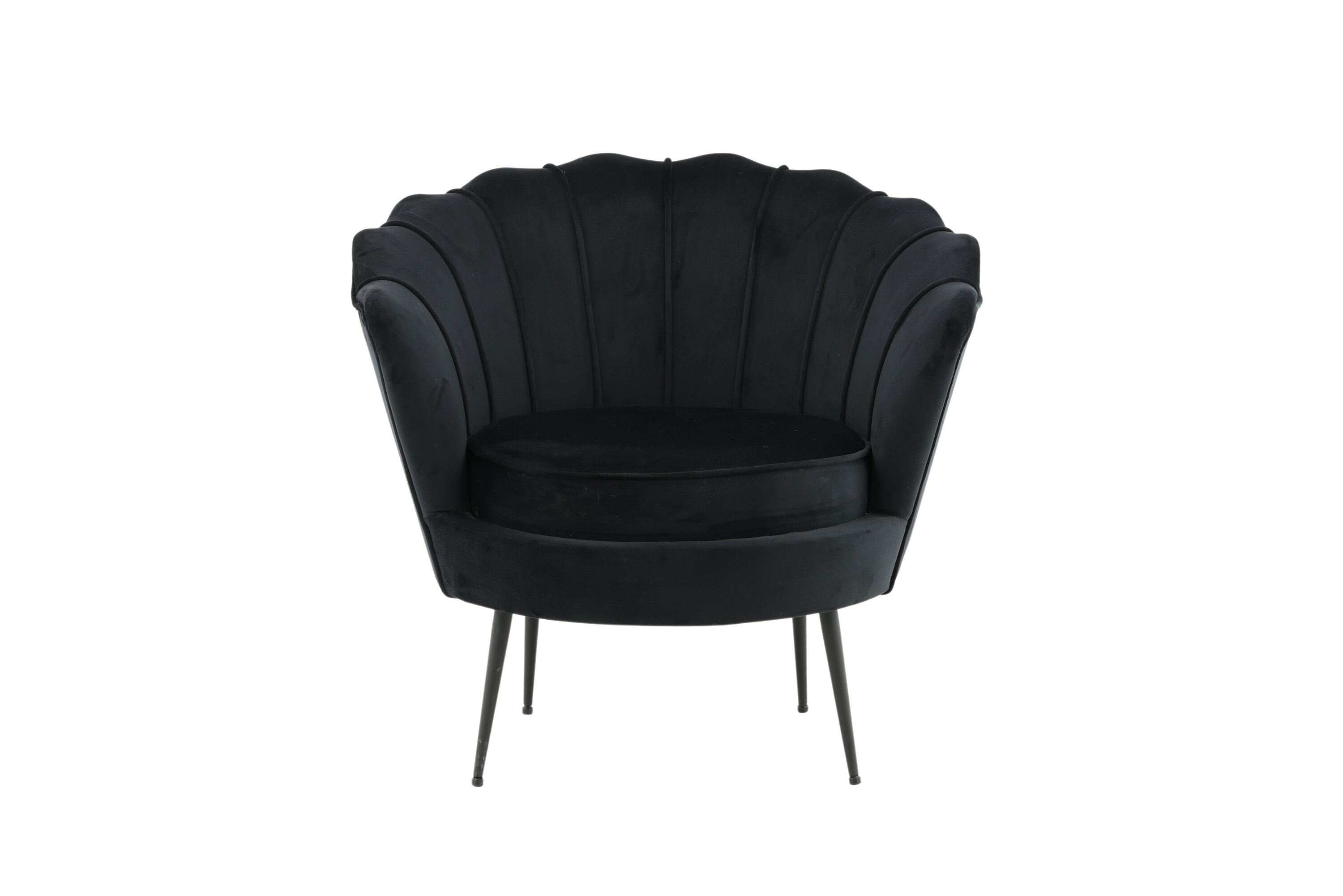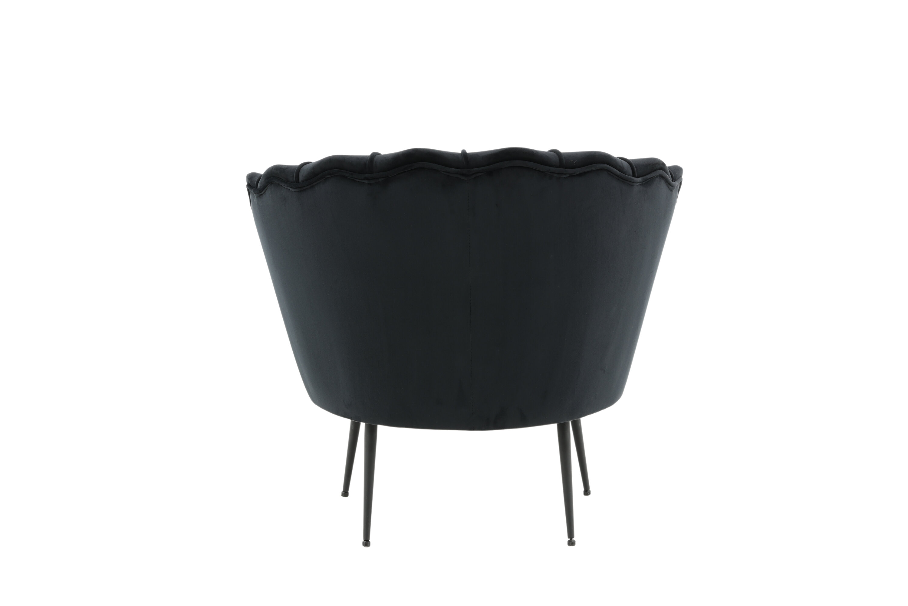 Een eigenwijs stijlicoon kan het interieur gemakkelijk naar een hoger niveau tillen! Calai's fauteuil is een moderne favoriet die een uitnodigende blikvanger en modebewuste sfeer creëert. Het heeft een stijlvol ontwerp met decoratieve wormvormige rug met decoratieve steken en een ronde zitting, consequent in zwart fluwelen stof die een elegante glans voor de kamer creëert. De poten zijn gemakkelijk uit te zetten in zwart gepoedercoat metaal. Plaats solitair of match met de bankgroep in dezelfde serie!