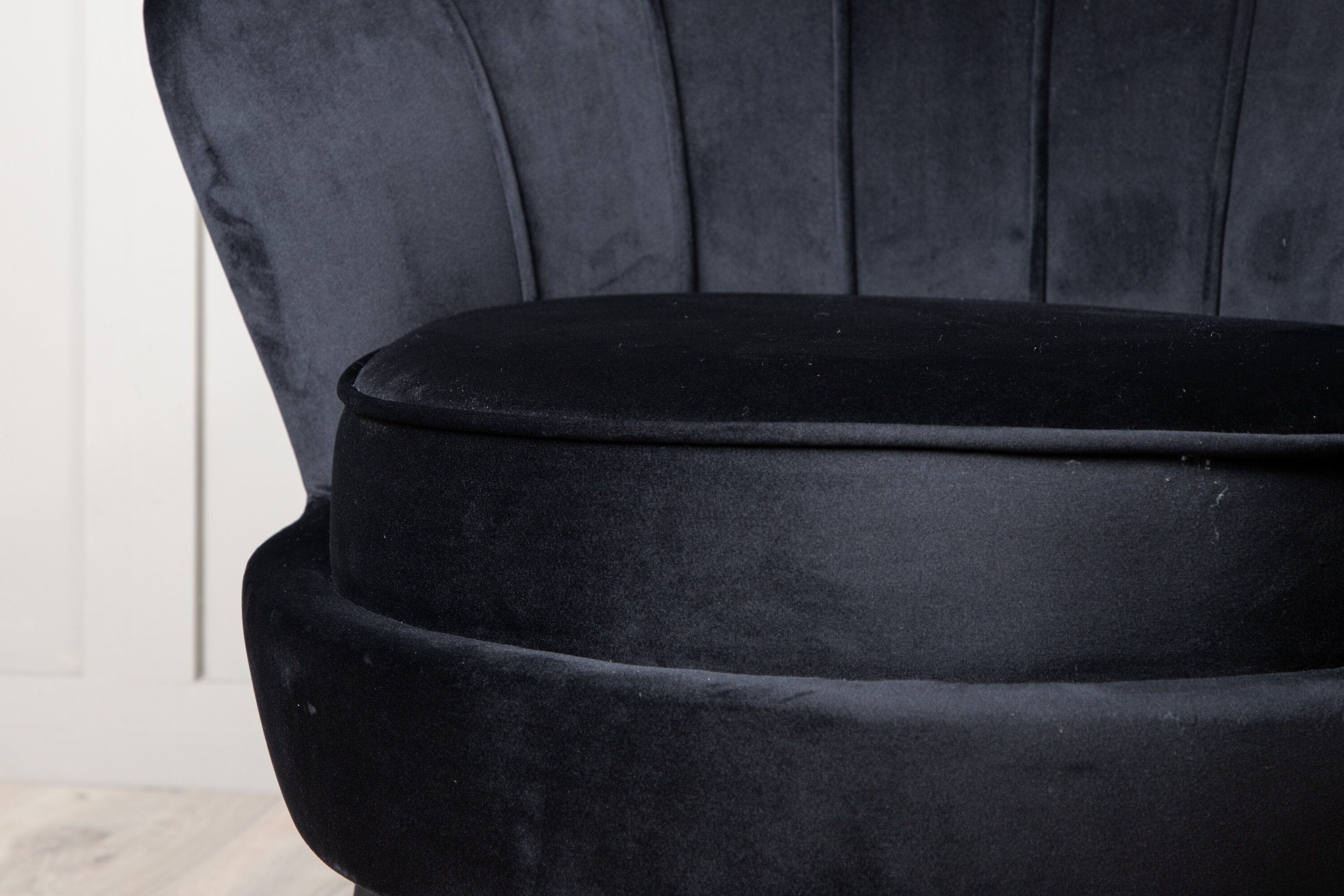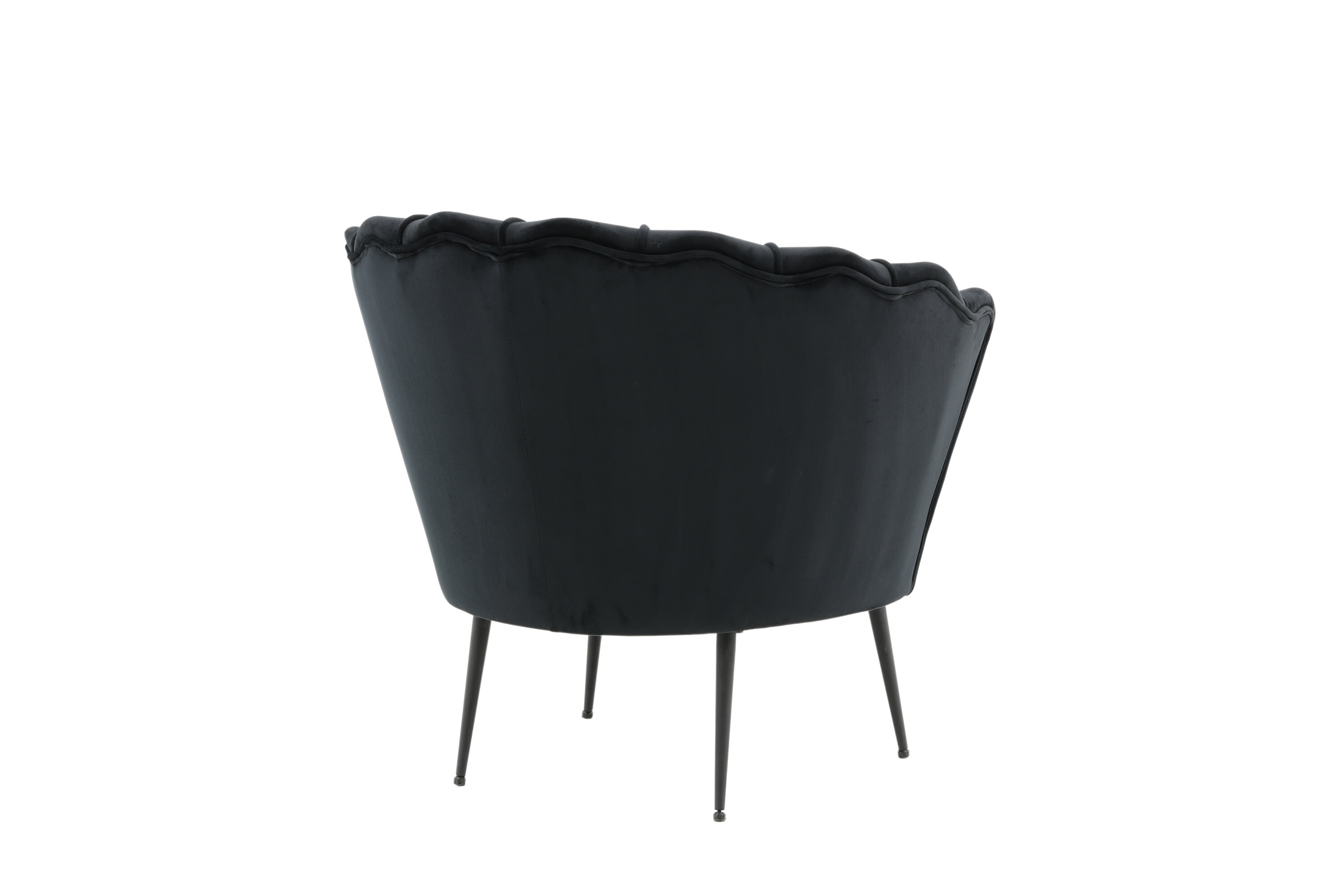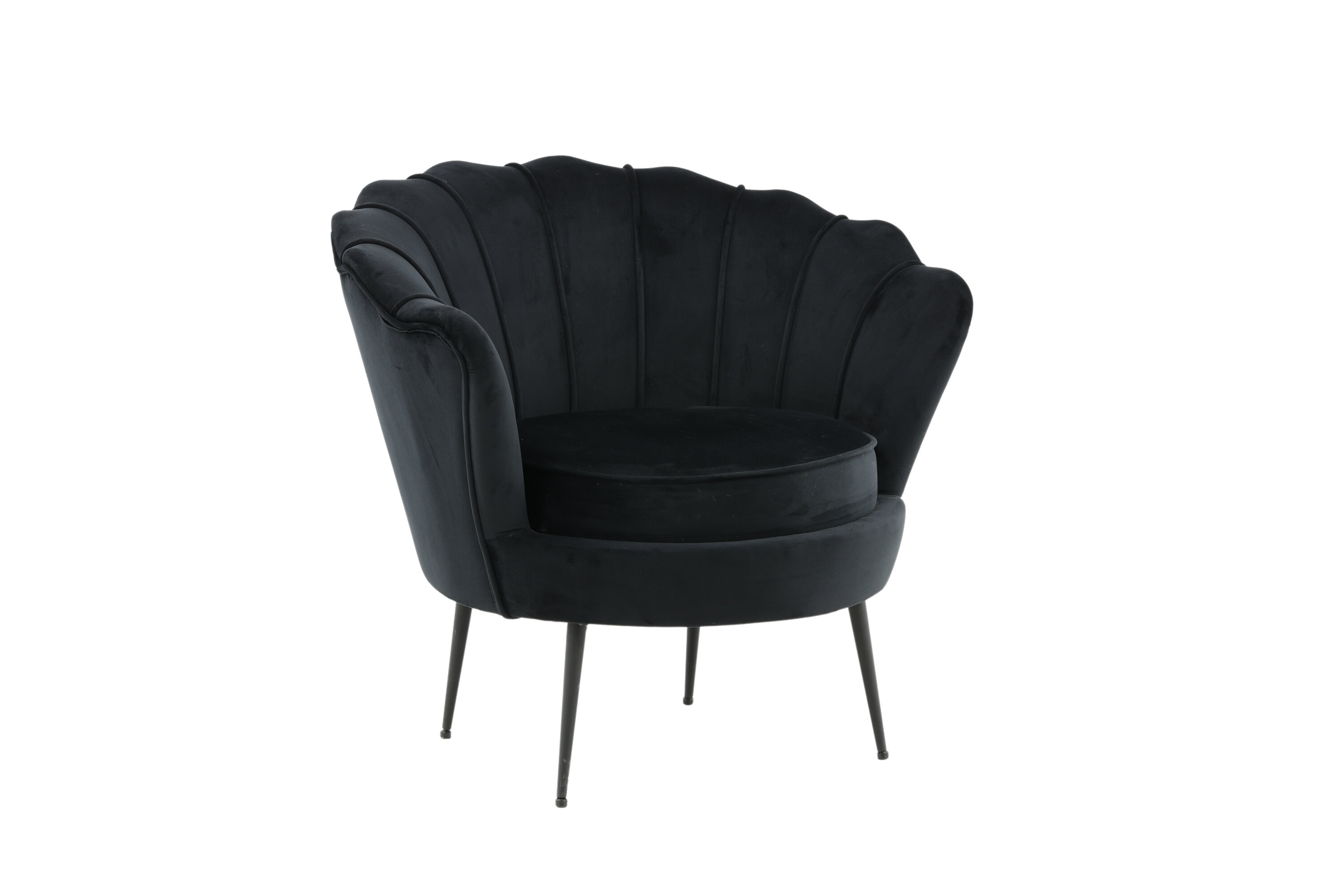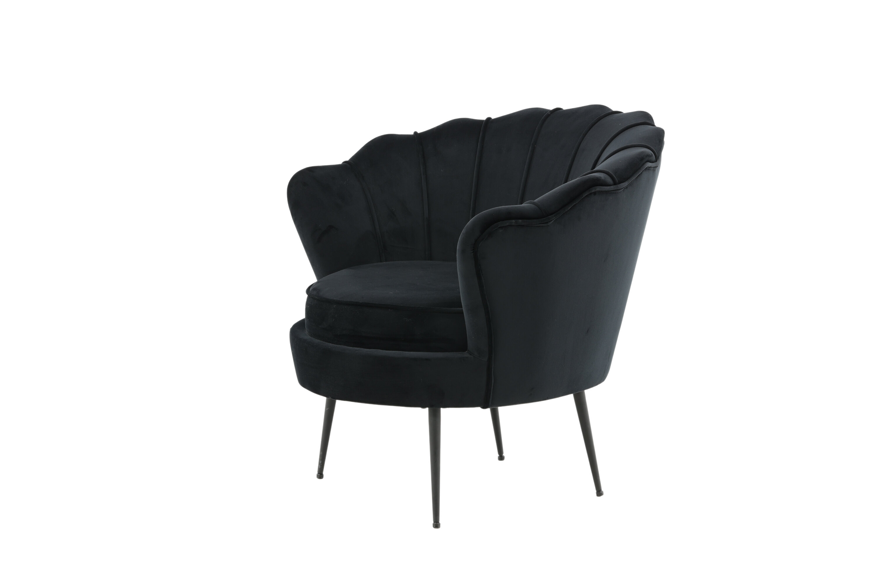 Een eigenwijs stijlicoon kan het interieur gemakkelijk naar een hoger niveau tillen! Calai's fauteuil is een moderne favoriet die een uitnodigende blikvanger en modebewuste sfeer creëert. Het heeft een stijlvol ontwerp met decoratieve wormvormige rug met decoratieve steken en een ronde zitting, consequent in zwart fluwelen stof die een elegante glans voor de kamer creëert. De poten zijn gemakkelijk uit te zetten in zwart gepoedercoat metaal. Plaats solitair of match met de bankgroep in dezelfde serie!