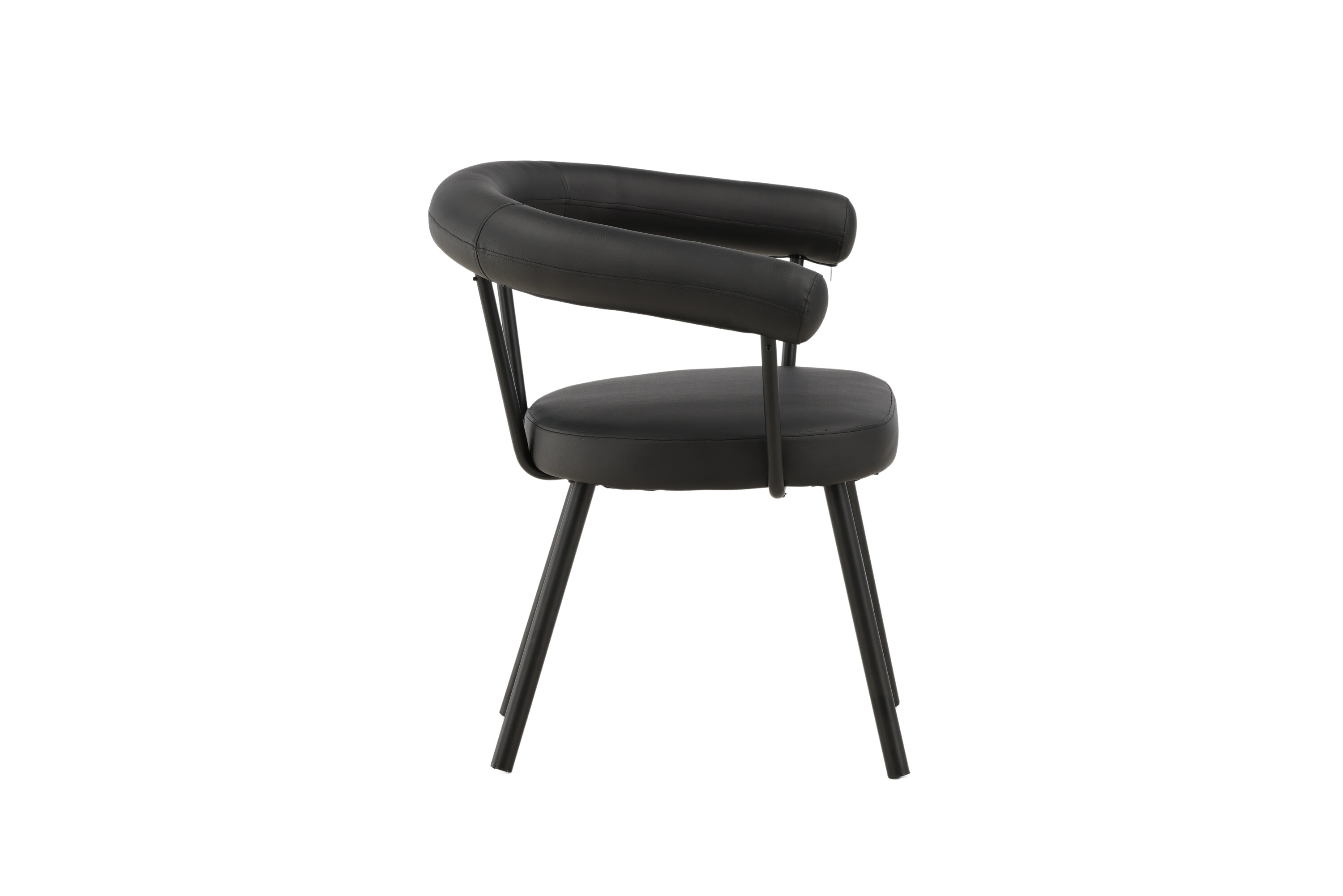 Deze heerlijke eetkamerstoel in modern en doordacht design is zowel comfortabel als stijlvol! De stoel uit de serie Västerås behoort tot de Lustig collectie en maakt al snel een luxe indruk in het hart van de woning. De afgeronde rugleuning van de stoel en stopte de zitting is in zwarte PU-bekleding en de framestructuur in minimalistisch ontwerp is in zwart staal. Versier je huis met eetkamerstoelen waar je graag lang in verblijft en geniet van aangename maaltijden met geliefden!
