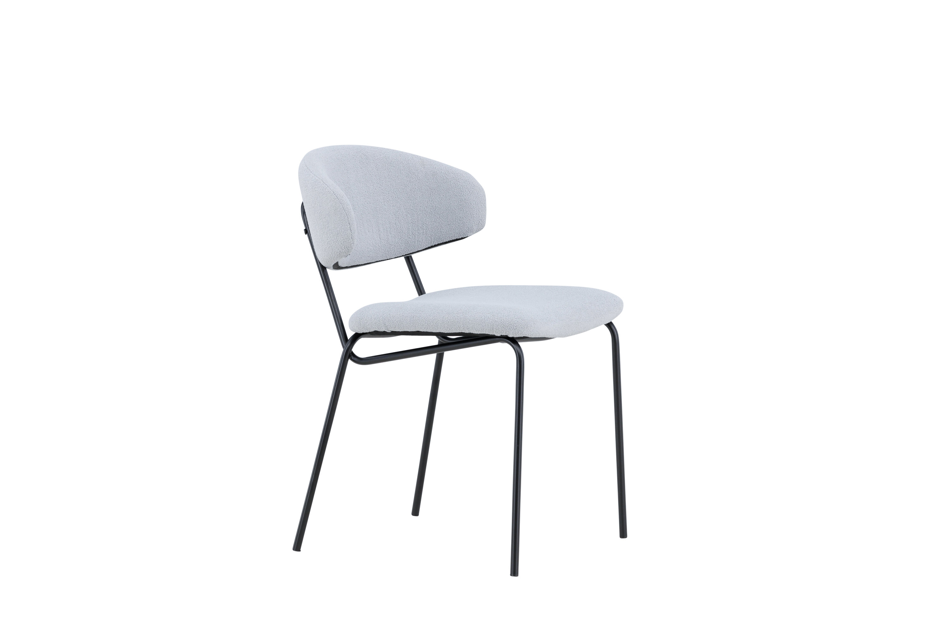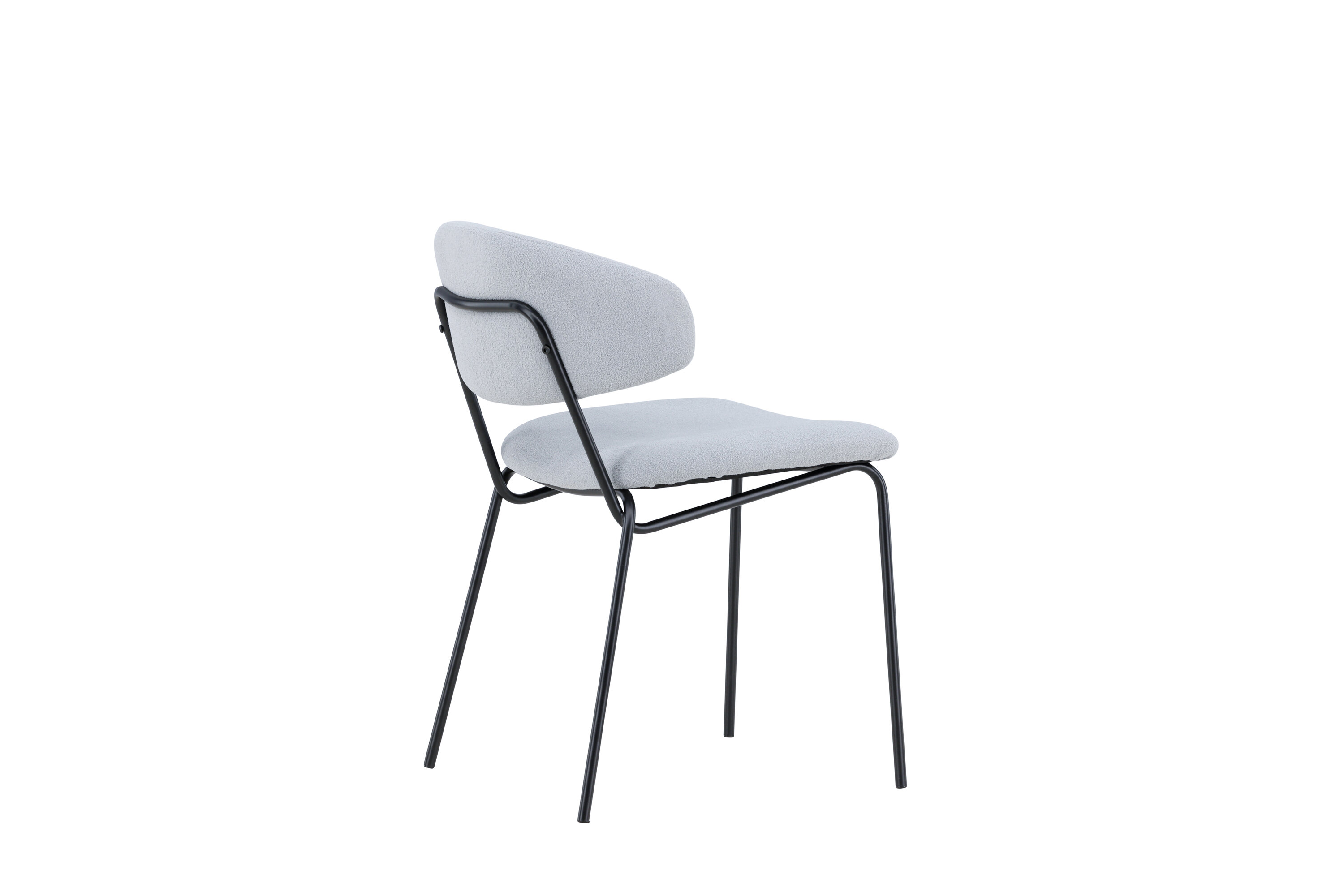 Ontdek Chico - de elegante stoel die de sfeer van je eetkamer naar een hoger niveau tilt. De zitting van de stoel is bekleed met blauwe bouclé en de poten zijn gemaakt van zwart staal, waardoor een indrukwekkend contrast ontstaat. Chico wordt geleverd in een handige verpakking van twee stoelen.