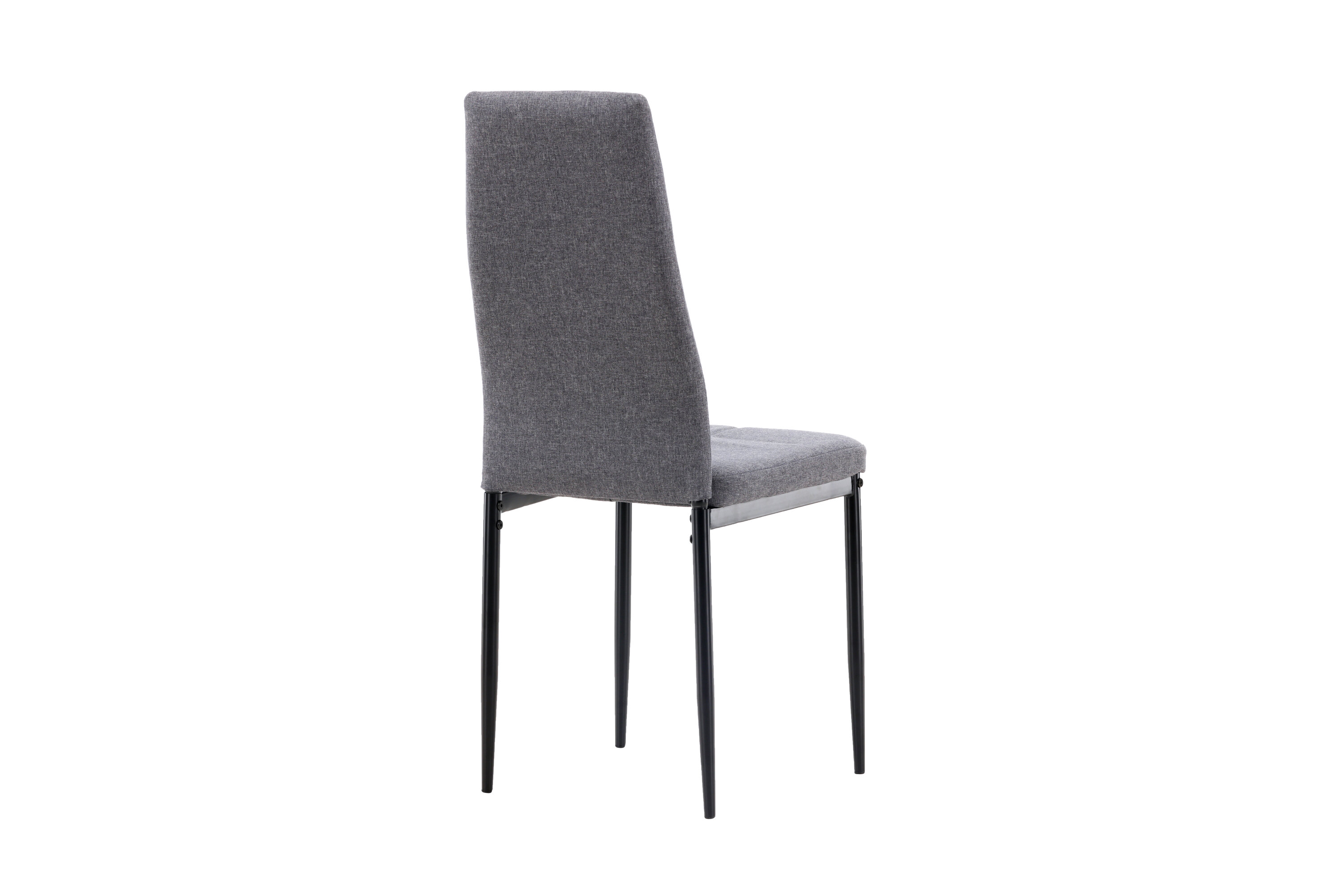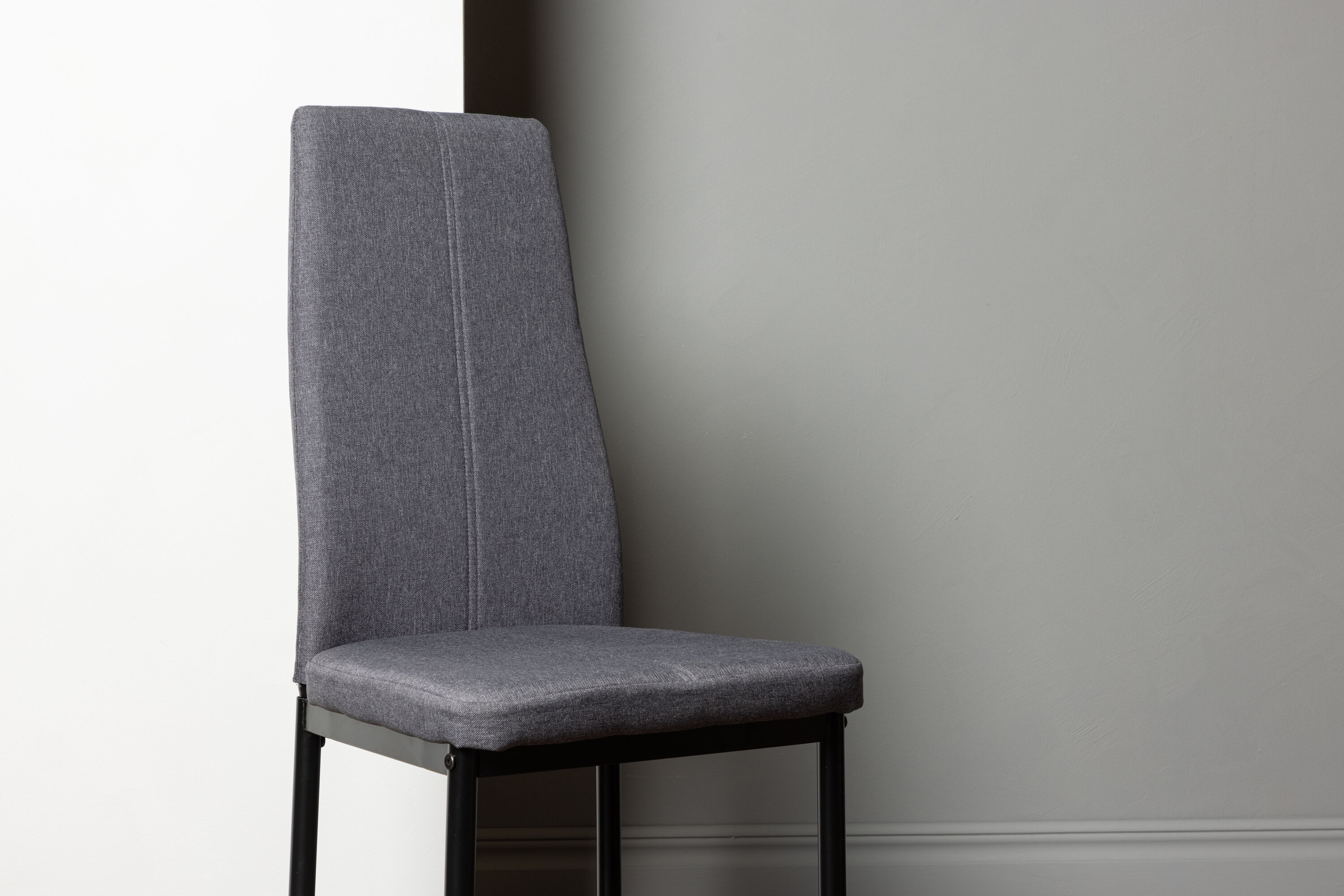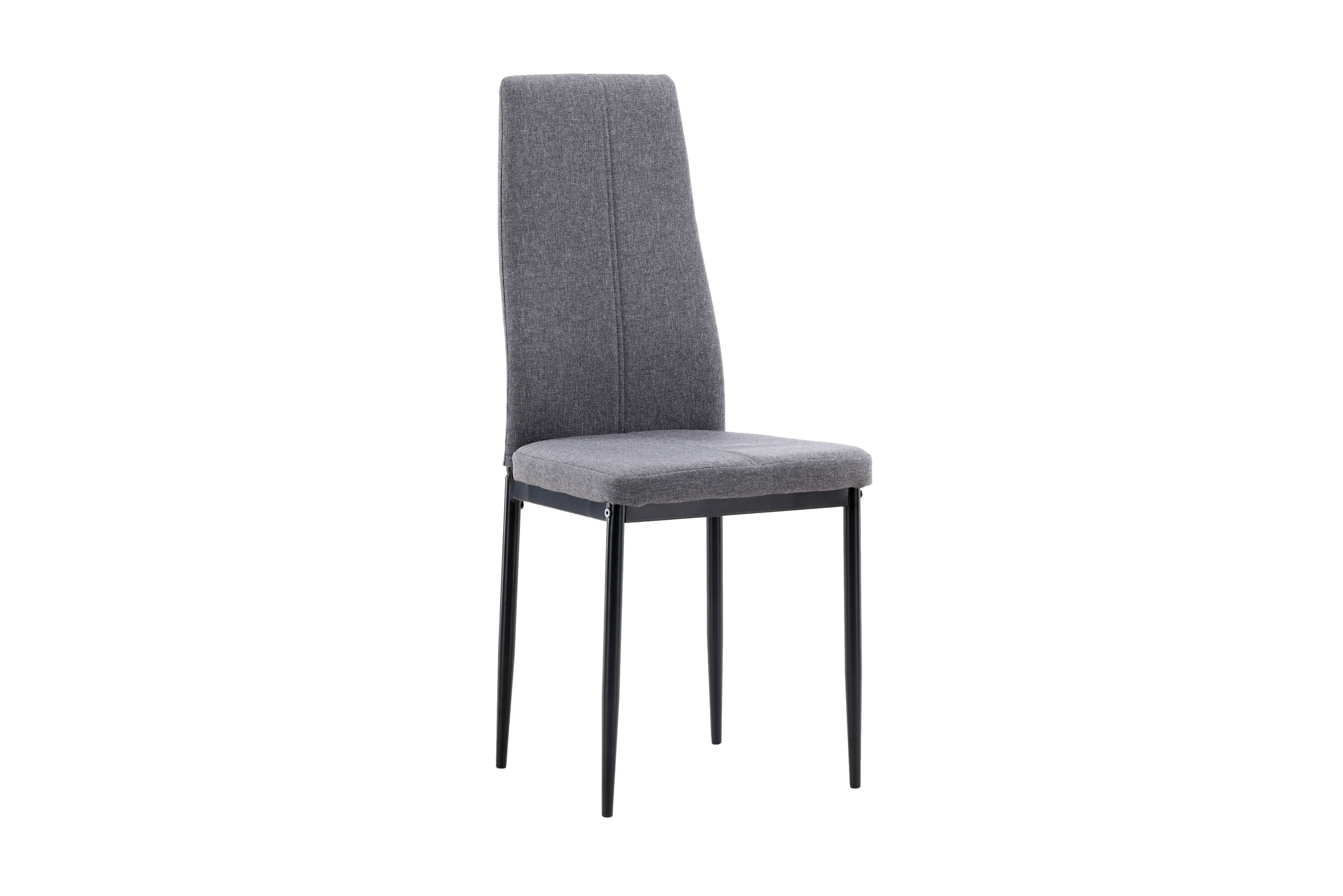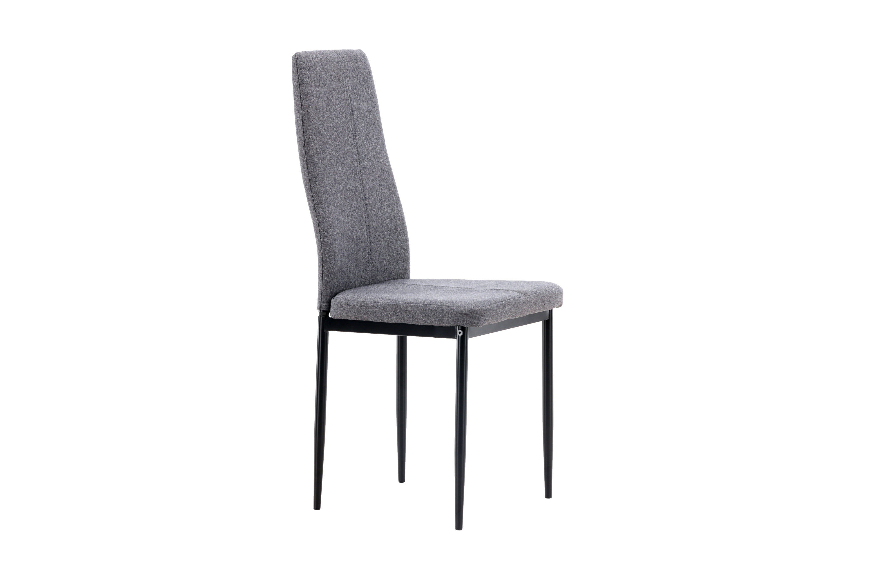 Zo comfortabel als in het oog springend! Deze eetkamerstoelen uit de Petra serie hebben een hoge rugleuning en volledig geklede zitting in grijze polyester stof die gestopt is voor extra comfort. De stoelpoten zijn recht in zwart metaal. Vul aan met een pompeuze eettafel, het is leuk en geniet van aangename maaltijden vooruit!