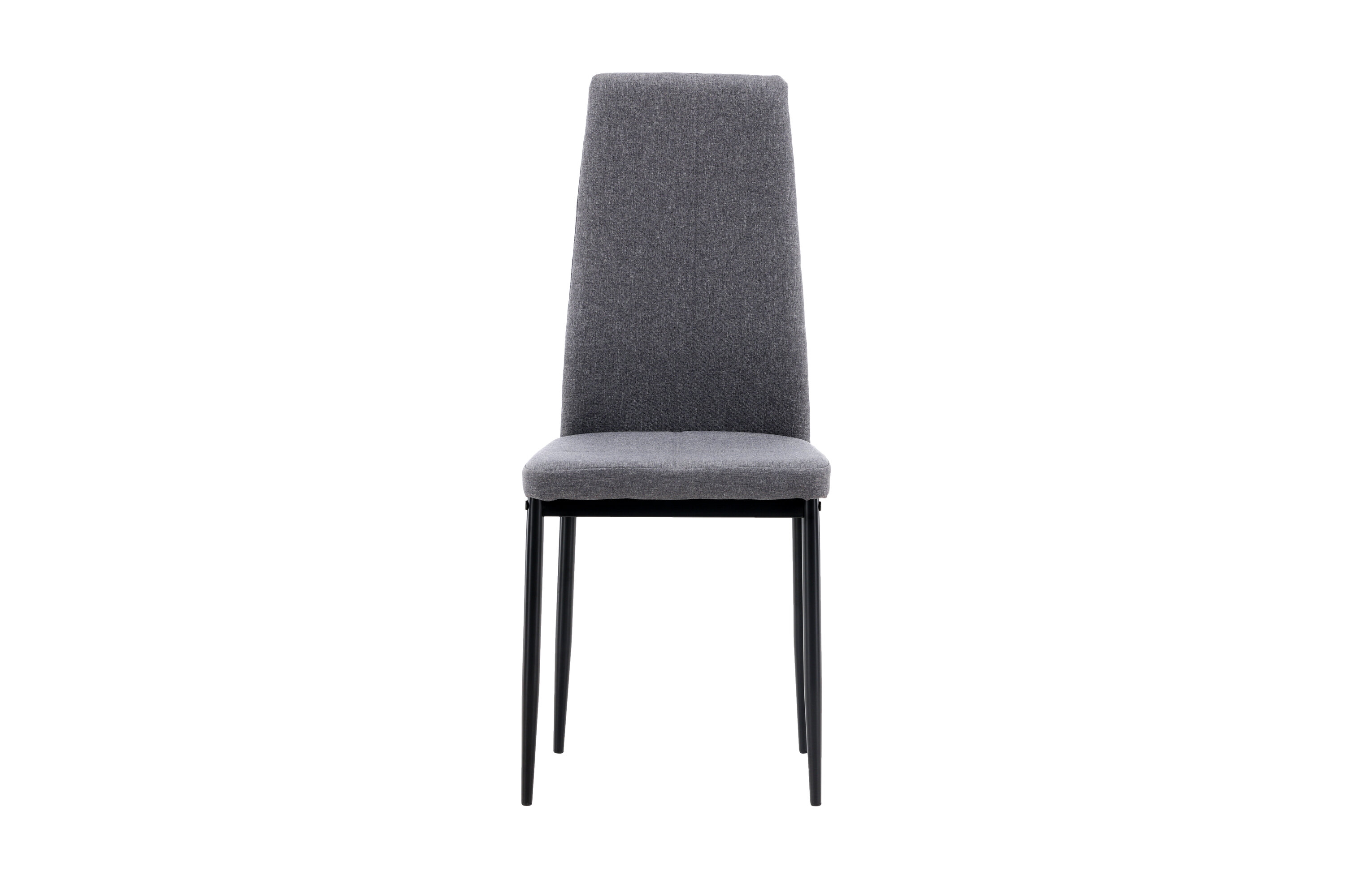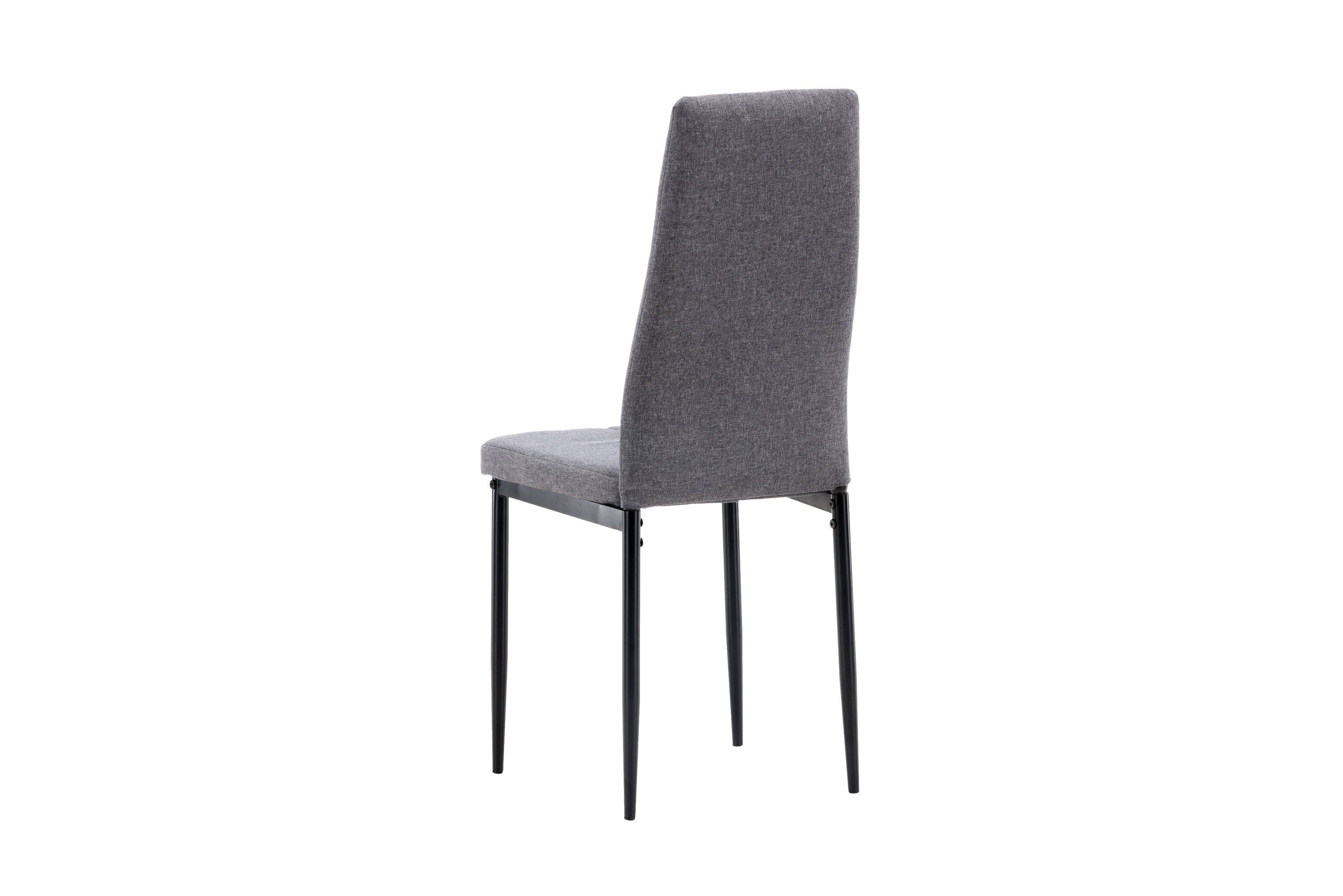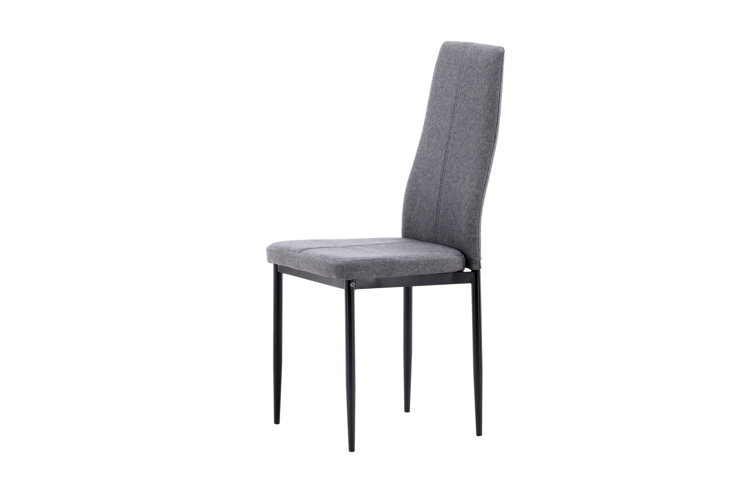 Zo comfortabel als in het oog springend! Deze eetkamerstoelen uit de Petra serie hebben een hoge rugleuning en volledig geklede zitting in grijze polyester stof die gestopt is voor extra comfort. De stoelpoten zijn recht in zwart metaal. Vul aan met een pompeuze eettafel, het is leuk en geniet van aangename maaltijden vooruit!