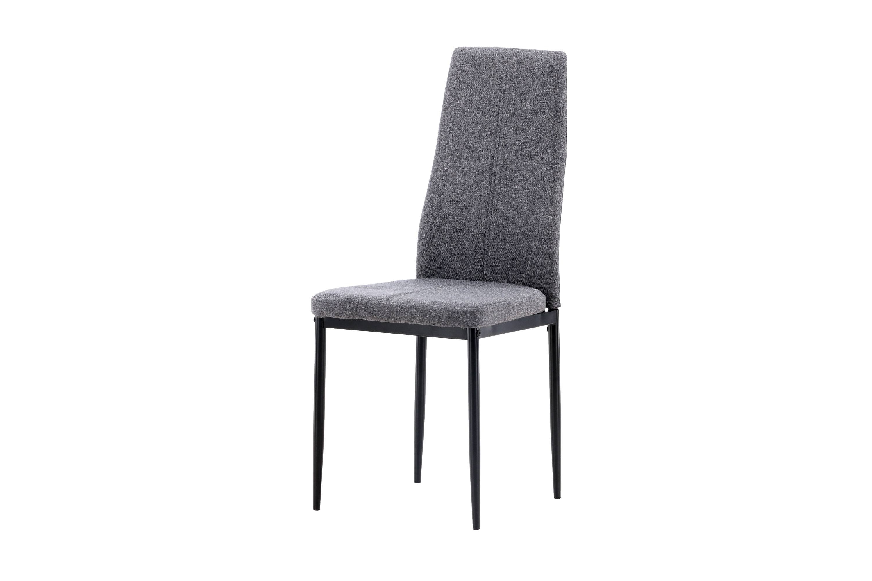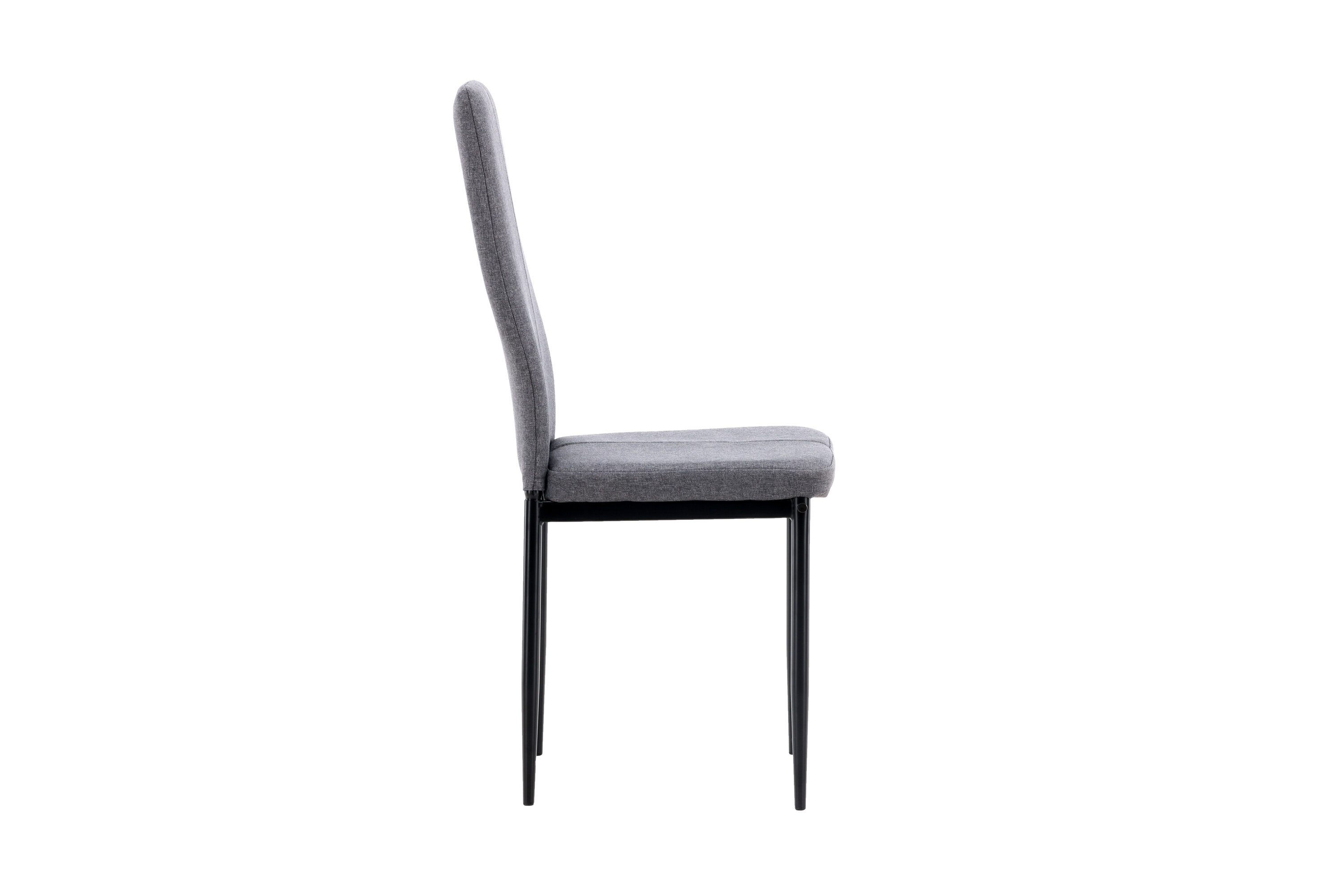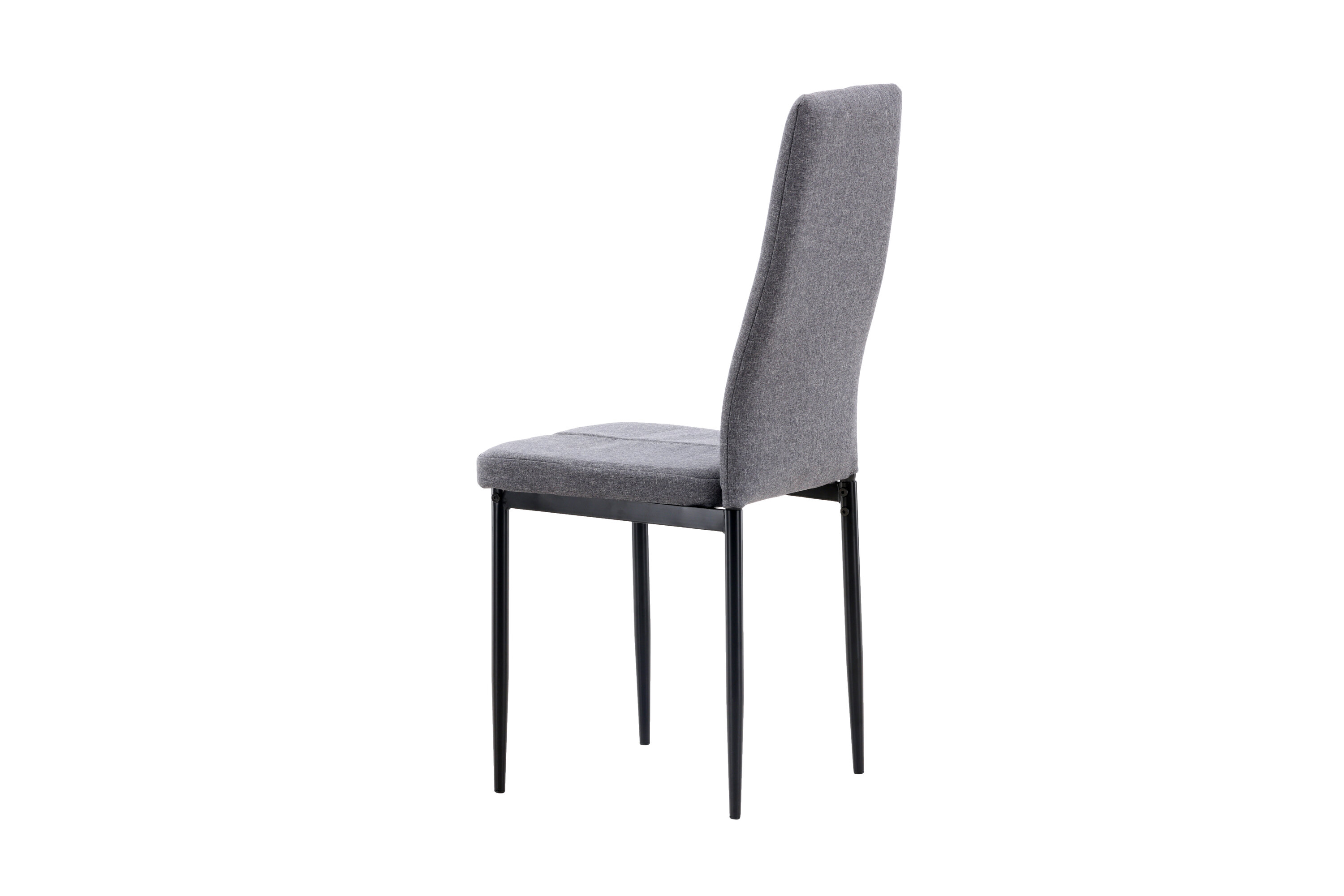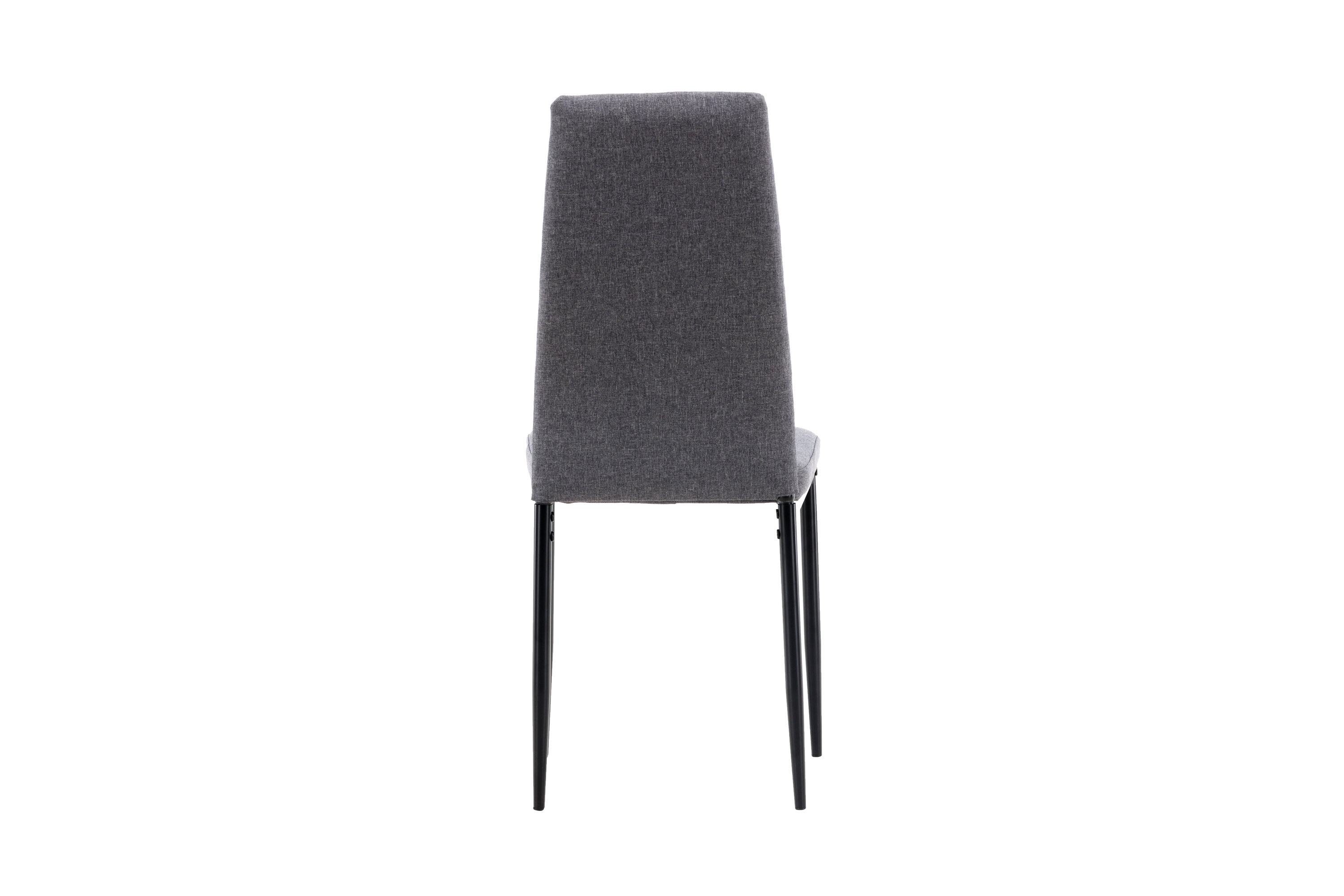 Zo comfortabel als in het oog springend! Deze eetkamerstoelen uit de Petra serie hebben een hoge rugleuning en volledig geklede zitting in grijze polyester stof die gestopt is voor extra comfort. De stoelpoten zijn recht in zwart metaal. Vul aan met een pompeuze eettafel, het is leuk en geniet van aangename maaltijden vooruit!